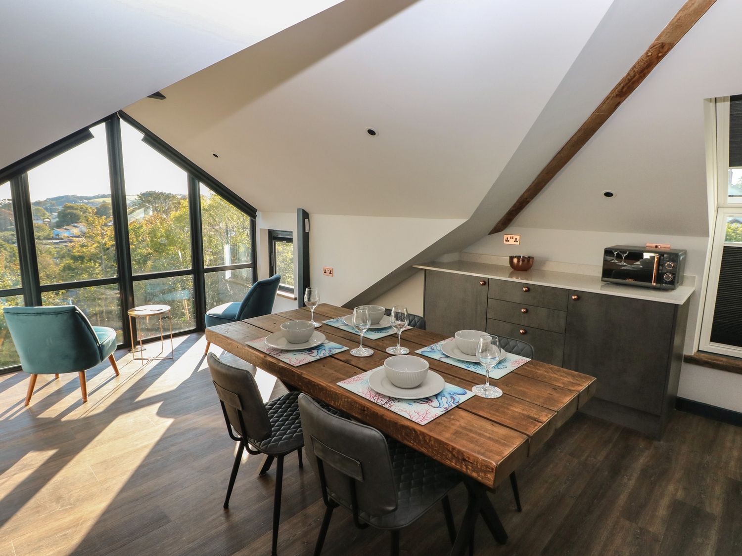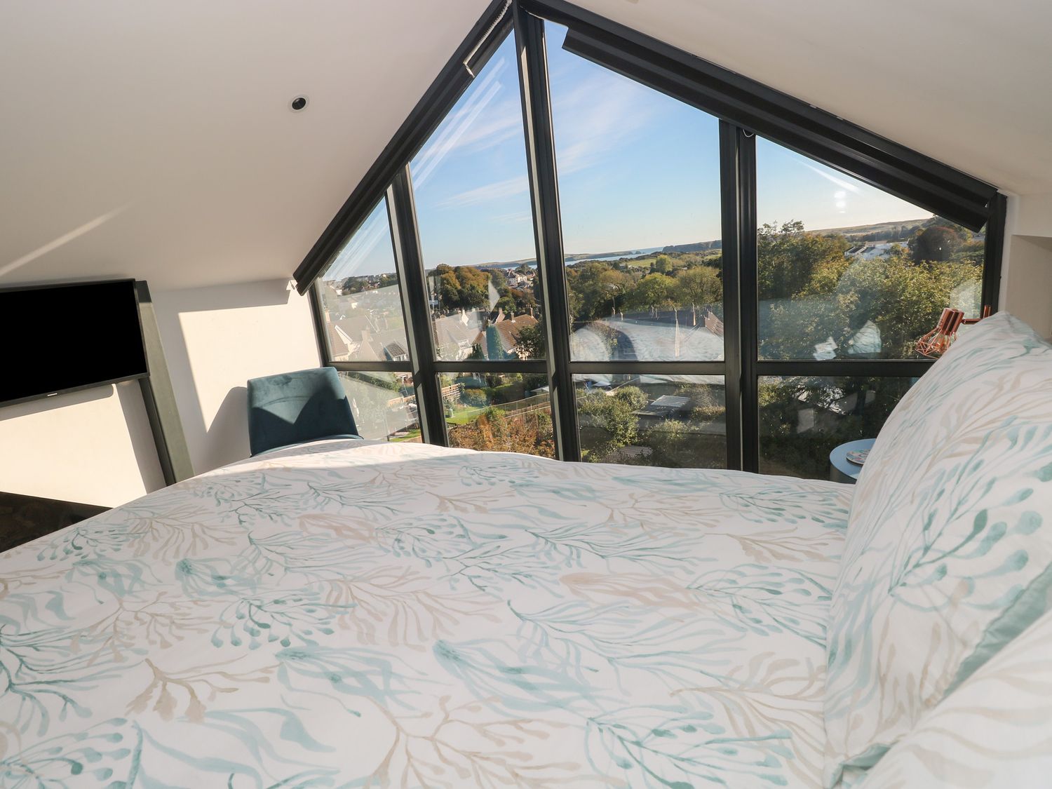"11 Brython Place, a first-floor apartment, consists of a kitchen/diner with electric oven, ceramic hob, fridge/freezer, washer/dryer, kettle, toaster, dining seating for four, and two armchairs with a little table out onto a magnificent view of a window wall and a sitting room with armchair, sofa, Smart TV, and countryside views. The bedrooms consist of a double with en-suite and twin. There is a bathroom with bath, shower over, and basin and WC. WiFi, fuel, power, bed linen, and towels are included in the rent. Outside, there is off-road parking for one car. Sorry, no pets and no smoking. Enjoy a memorable escape to Pembrokeshire at 11 Brython Place. Note: This property has a Good Housekeeping Bond of 250 GBP. Please note: there is ongoing refurbishment work at this four-storey house. The apartments on floors one and two, the car park and access via the front of the house are complete. Work is continuing on the rear garden and basement apartments. Please contact Sykes if you need any further information regarding this before booking."
