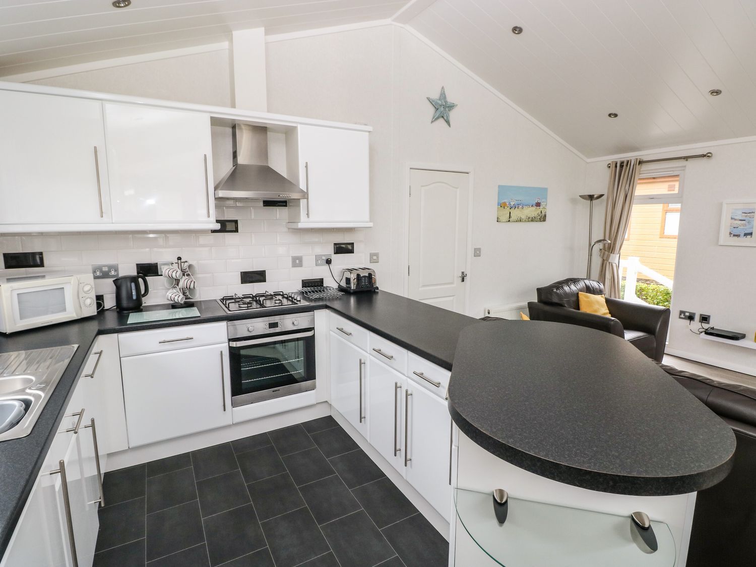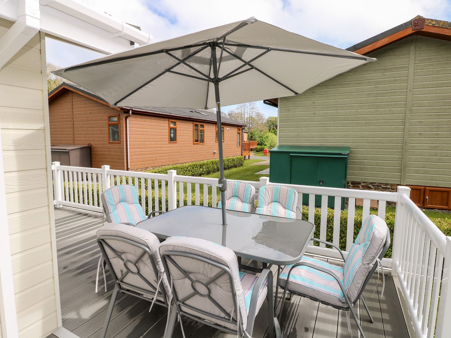 "Erisa, a single-storey lodge, consists of an open-plan living space with gas oven and hob, microwave, fridge/freezer, washing machine, wine chiller, kettle, toaster, dining seating, and sitting area with Smart TV and electric fire. The bedrooms consist of a double with TV and en-suite shower room, a double, and a twin, serviced by a bathroom. WiFi, fuel, power, bed linen, and towels are inc. in rent. You'll find a shop in 1.4 miles, pub in 1.3 miles, and beach in 1 mile. Outside, you will find wrap-around decking with furniture and designated parking for one car. Two well-behaved pets welcome. Sorry, no smoking. Erisa is a lovely base for a Pembrokeshire getaway. Note: Steps up to property - please take care. Note: there is a Good Housekeeping Bond of 250GBP"
