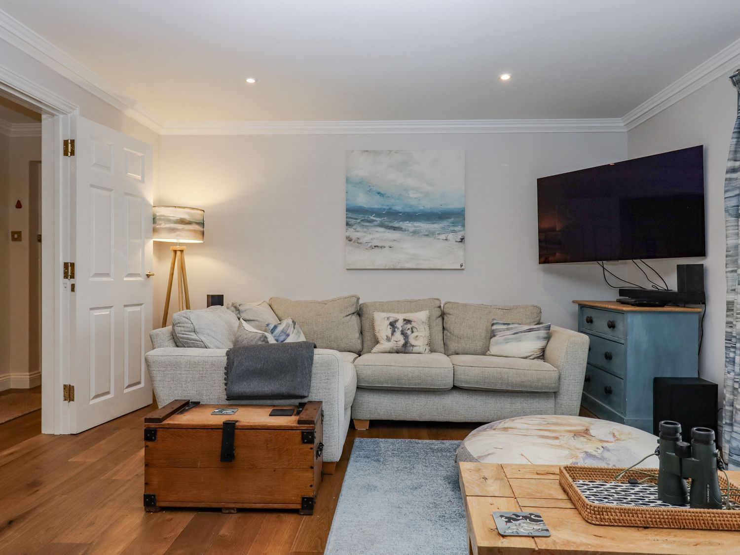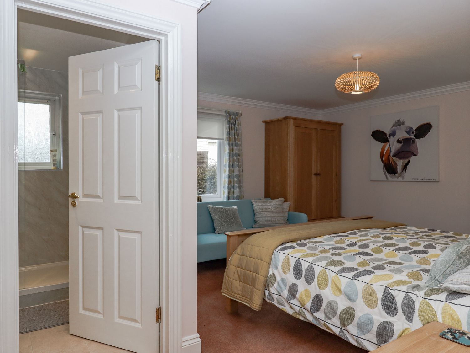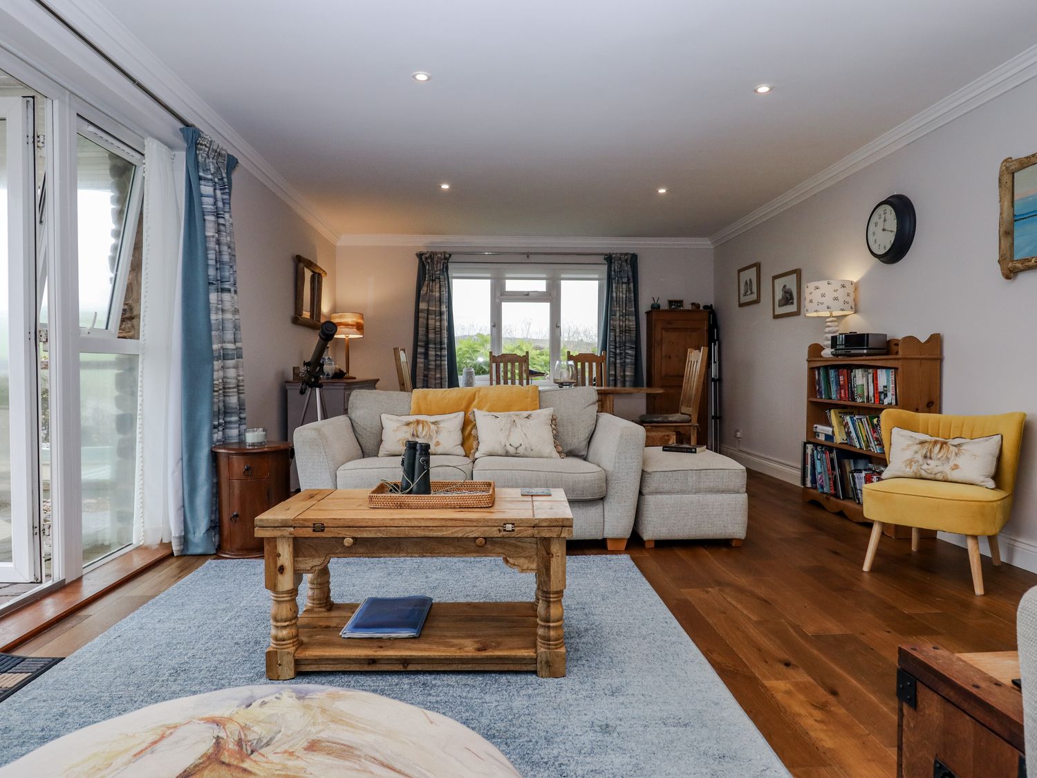 "Three bedrooms: 1 x super-king-size with en-suite shower, basin, and WC, 1 x king-size, 1 x bunk. Bathroom with bath, walk-in shower, basin, and WC. Kitchen. Utility room. Living/dining room "