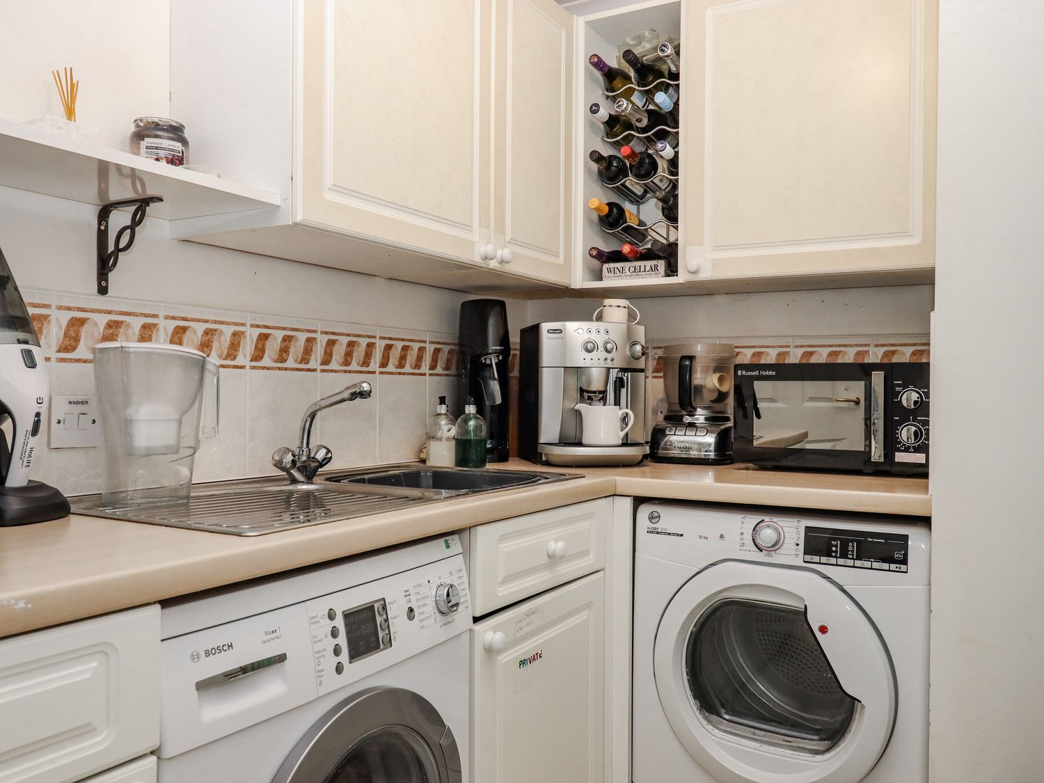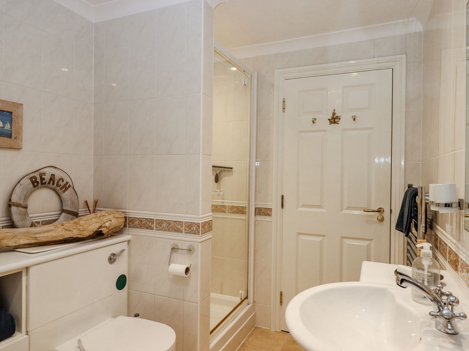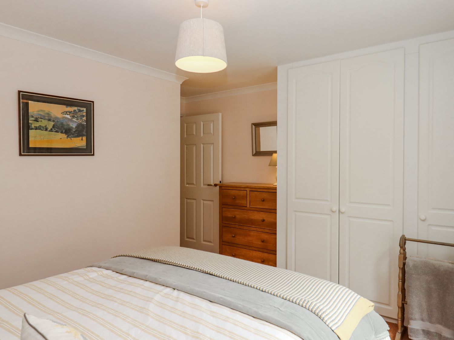 "Three bedrooms: 1 x super-king-size with en-suite shower, basin, and WC, 1 x king-size, 1 x bunk. Bathroom with bath, walk-in shower, basin, and WC. Kitchen. Utility room. Living/dining room "
