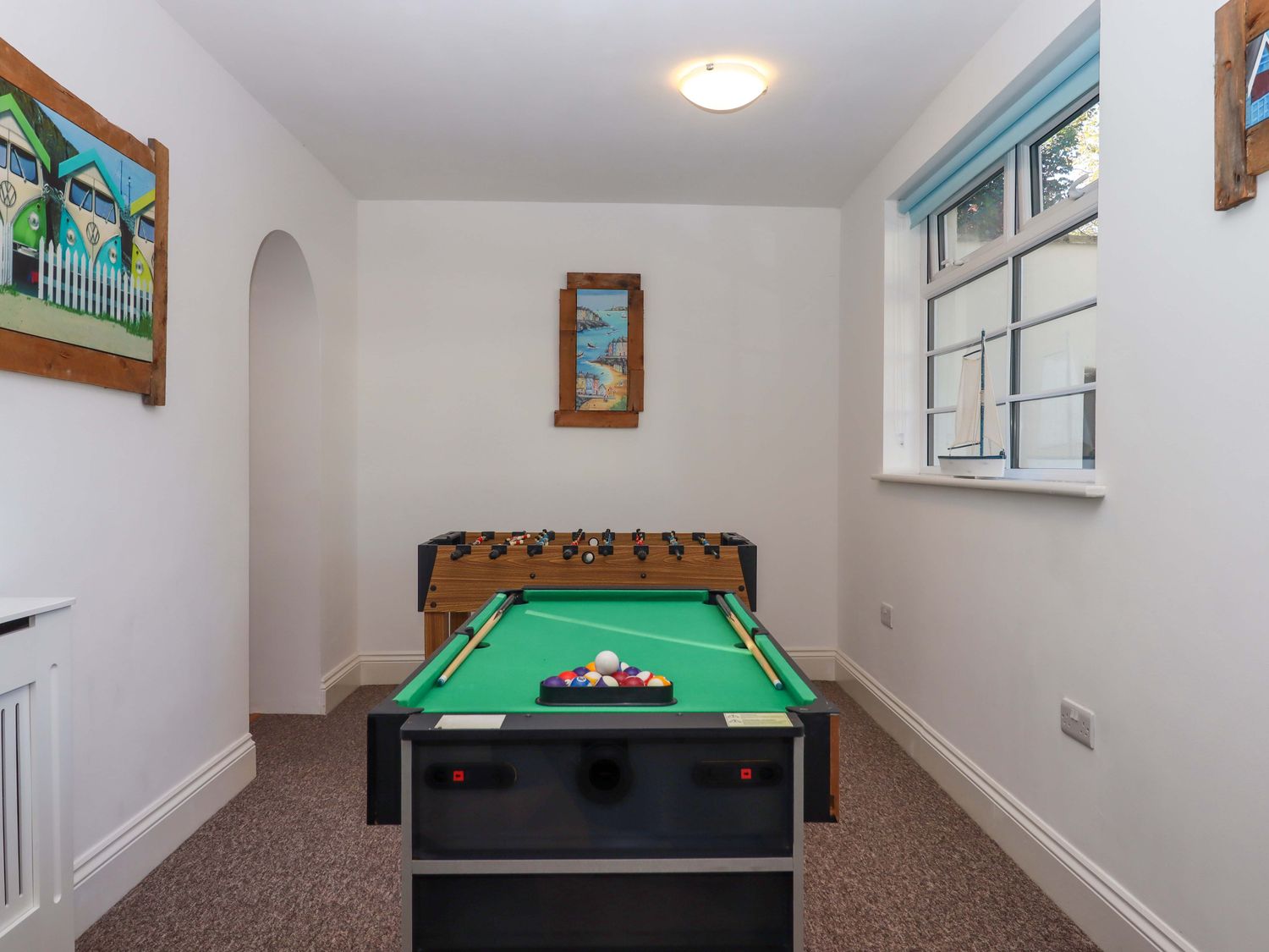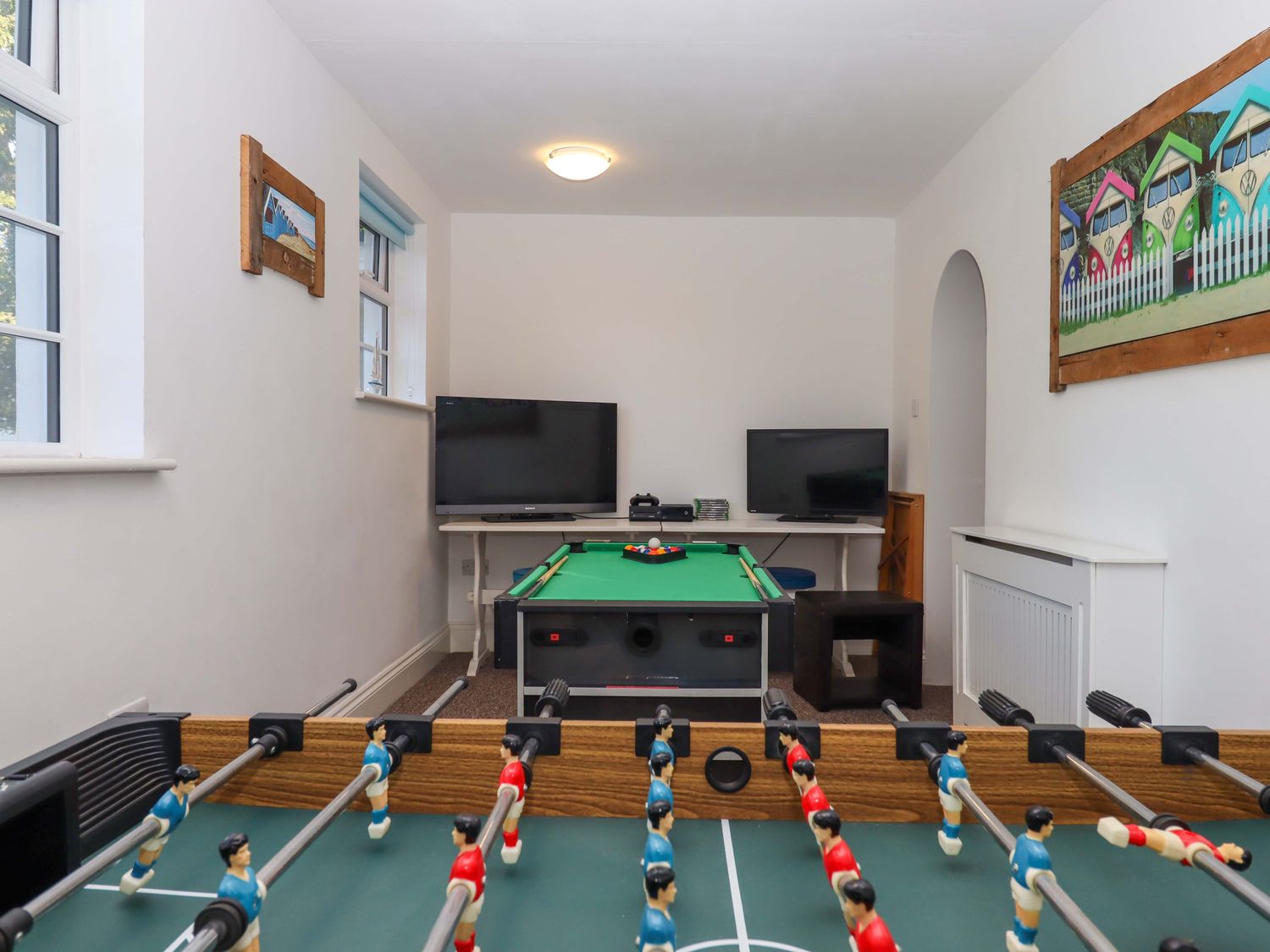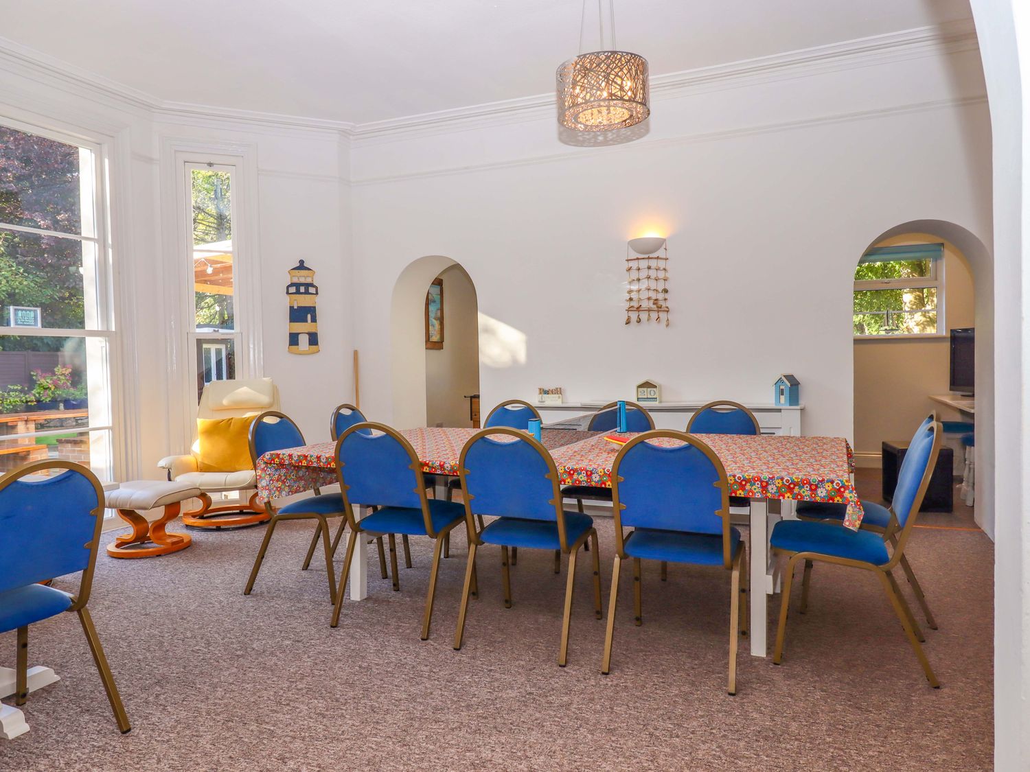 "Babbacombe Hall is a detached Victorian Villa resting in Babbacombe. The house can sleep 16 people in eight double or twin bedrooms each with its own ensuite. A comfortable sitting room, formal dining room and games room complete the accommodation. Outside you'll find a neat lawned garden and patio and ample parking. Perfect for fun family gatherings and get togethers, Babbacombe Hall is exceptional. Electric cars must not be charged at this property."