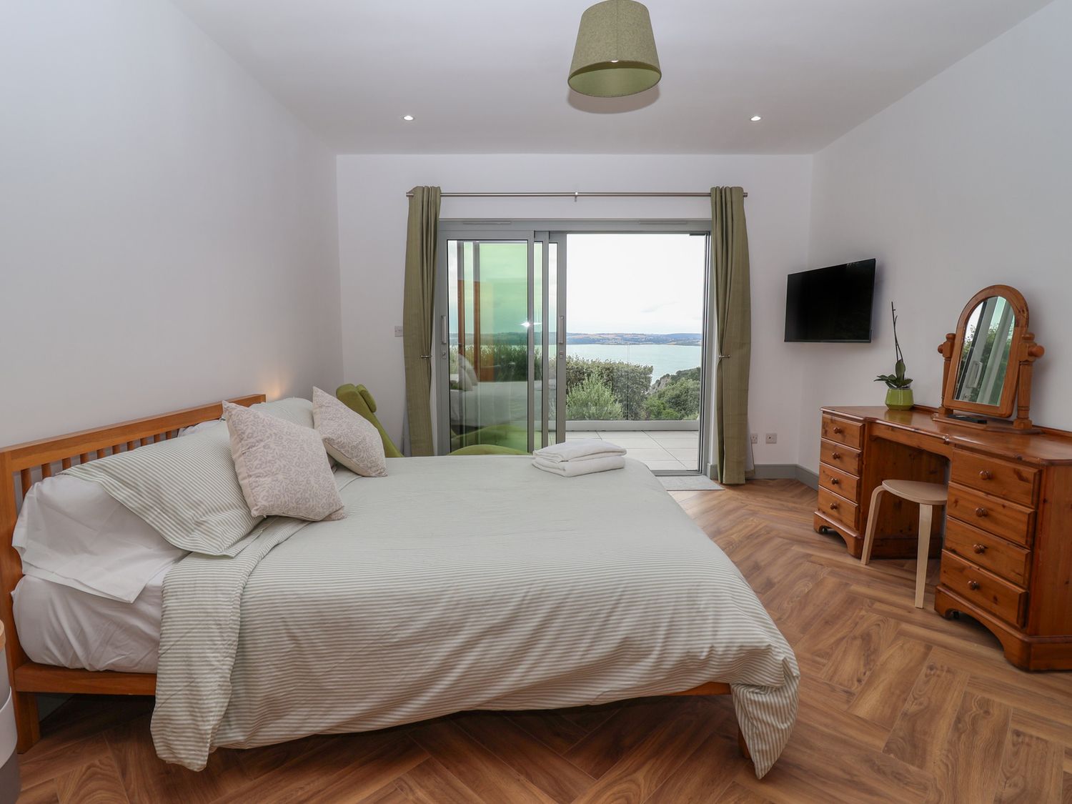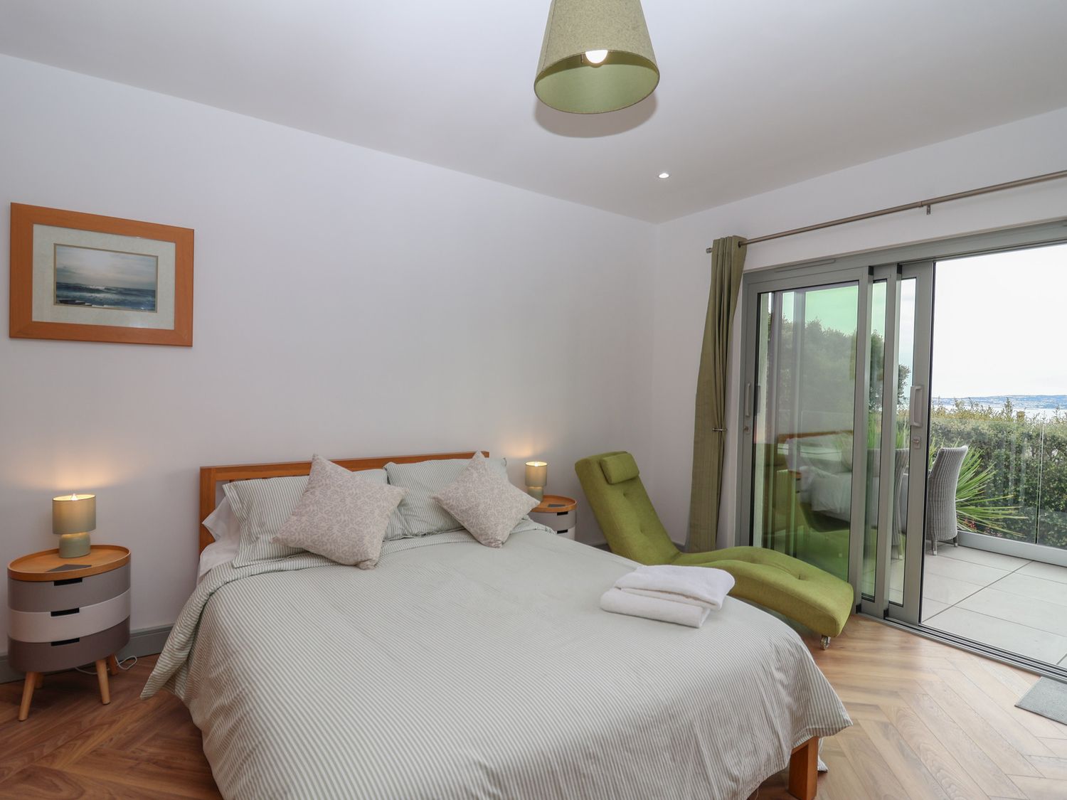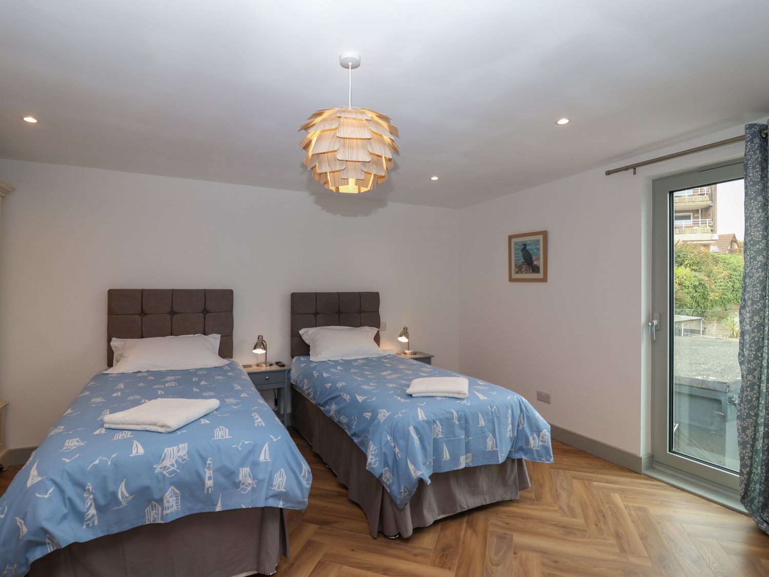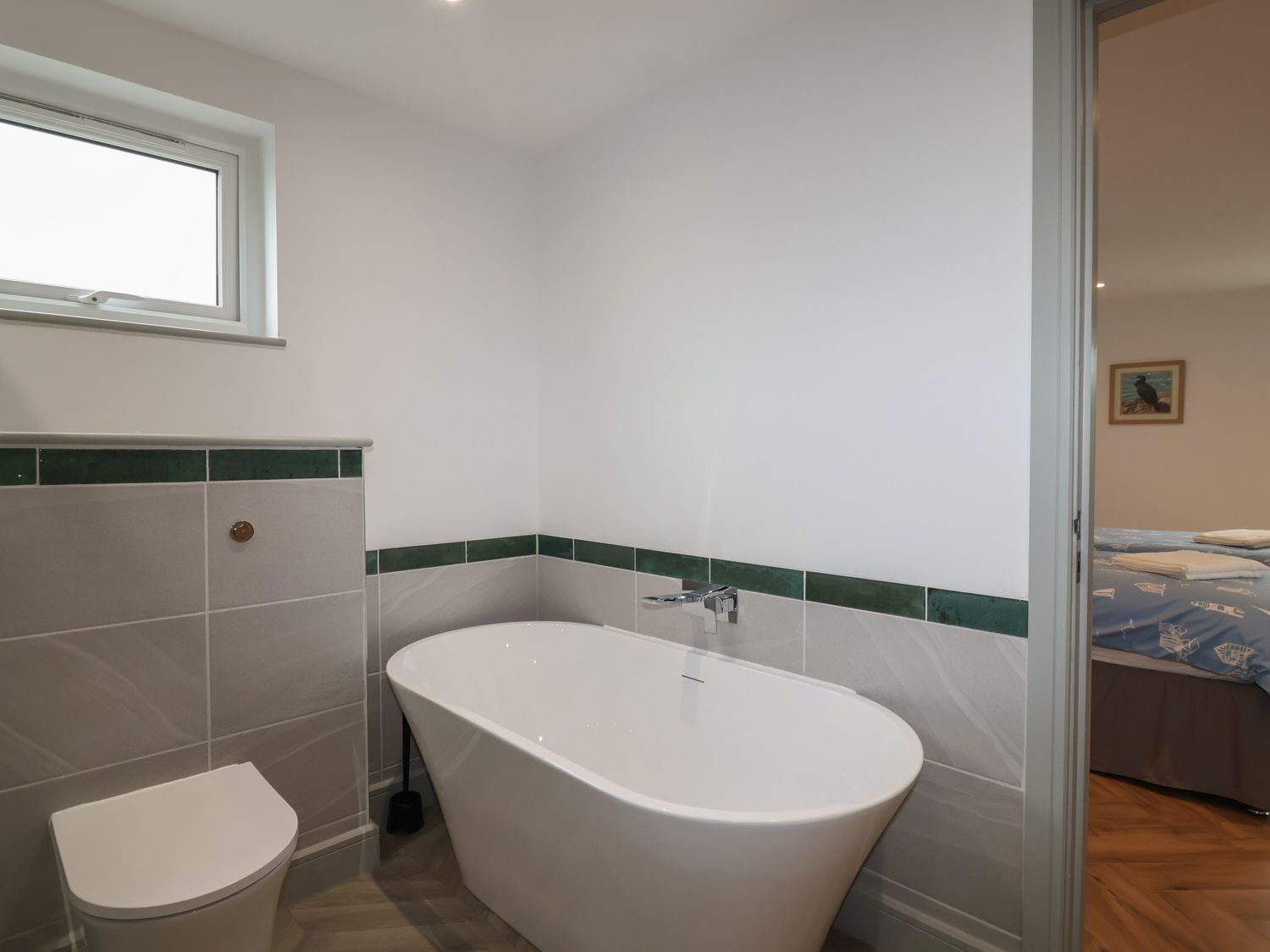 "Seacroft consists of a kitchen with an electric double oven, induction hob, microwave, fridge, freezer, dishwasher, coffee maker, wine chiller, and breakfast bar seating, a dining area seating six guests, and a sitting area with Smart TV. The bedrooms consist of a ground-floor king-size, king-size with en-suite walk-in shower and balcony, and twin with en-suite freestanding bath. There is a shower room with walk-in shower, basin, heated towel rail, WC, and washing machine. WiFi, fuel, power, bed linen, and towels are included in the rent. Outside, there is a non-enclosed terrace with furniture and sea views and off-road parking for one car, plus unrestricted roadside parking. One well-behaved dog is welcome, but sorry, no smoking. Enjoy a splendid retreat at Seacroft. Note: For the safety of the owner's chickens and ducks, dogs must be kept on a lead at all times outdoors. Note: Guests are to provide their own beach towels. Note: This property has a Good Housekeeping Bond of 350GBP"