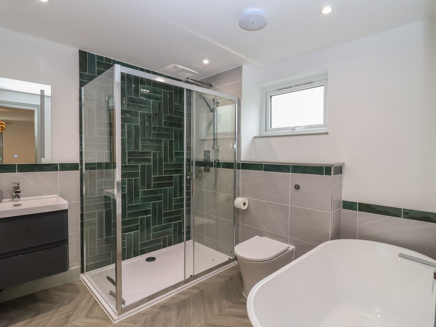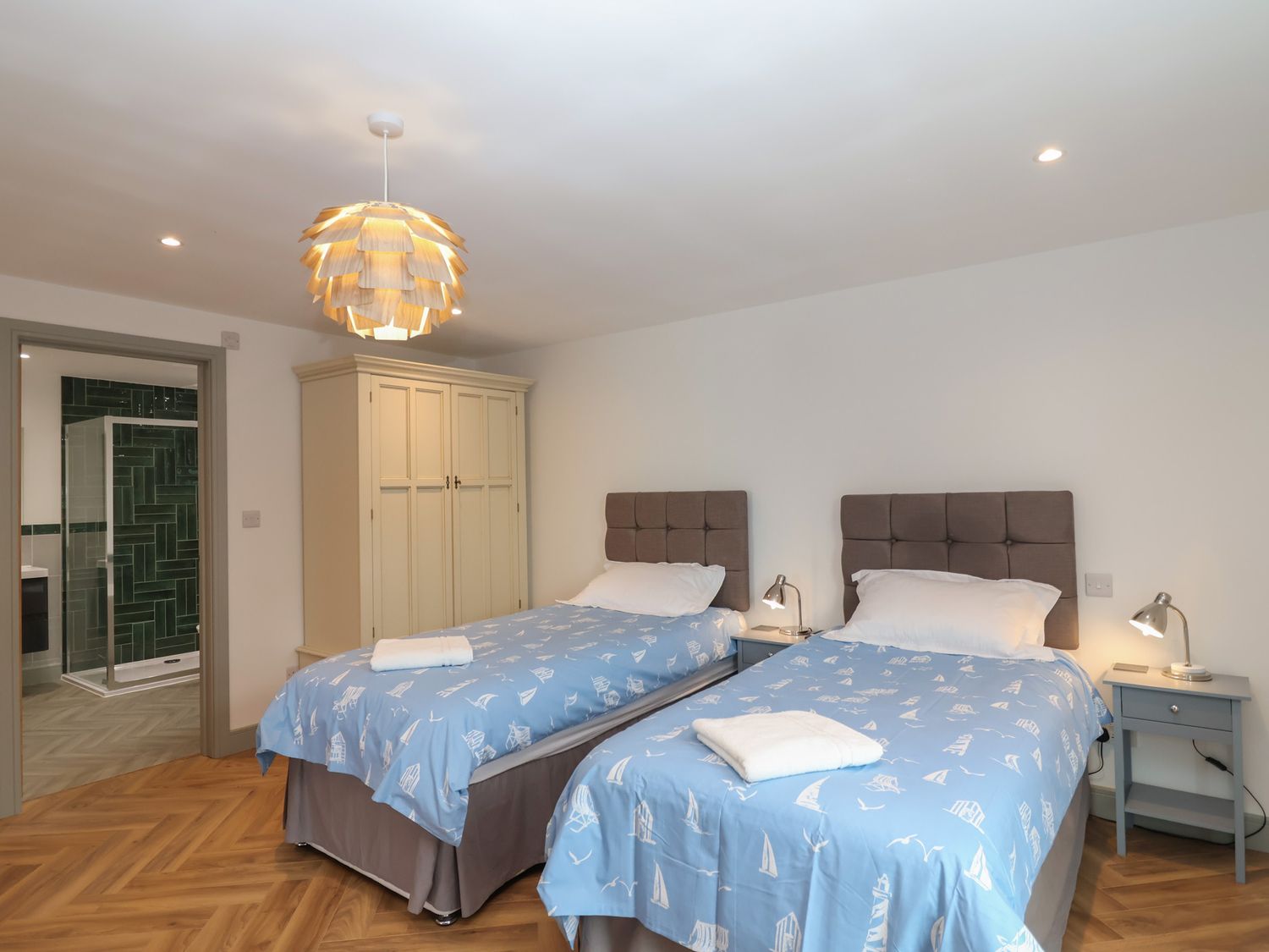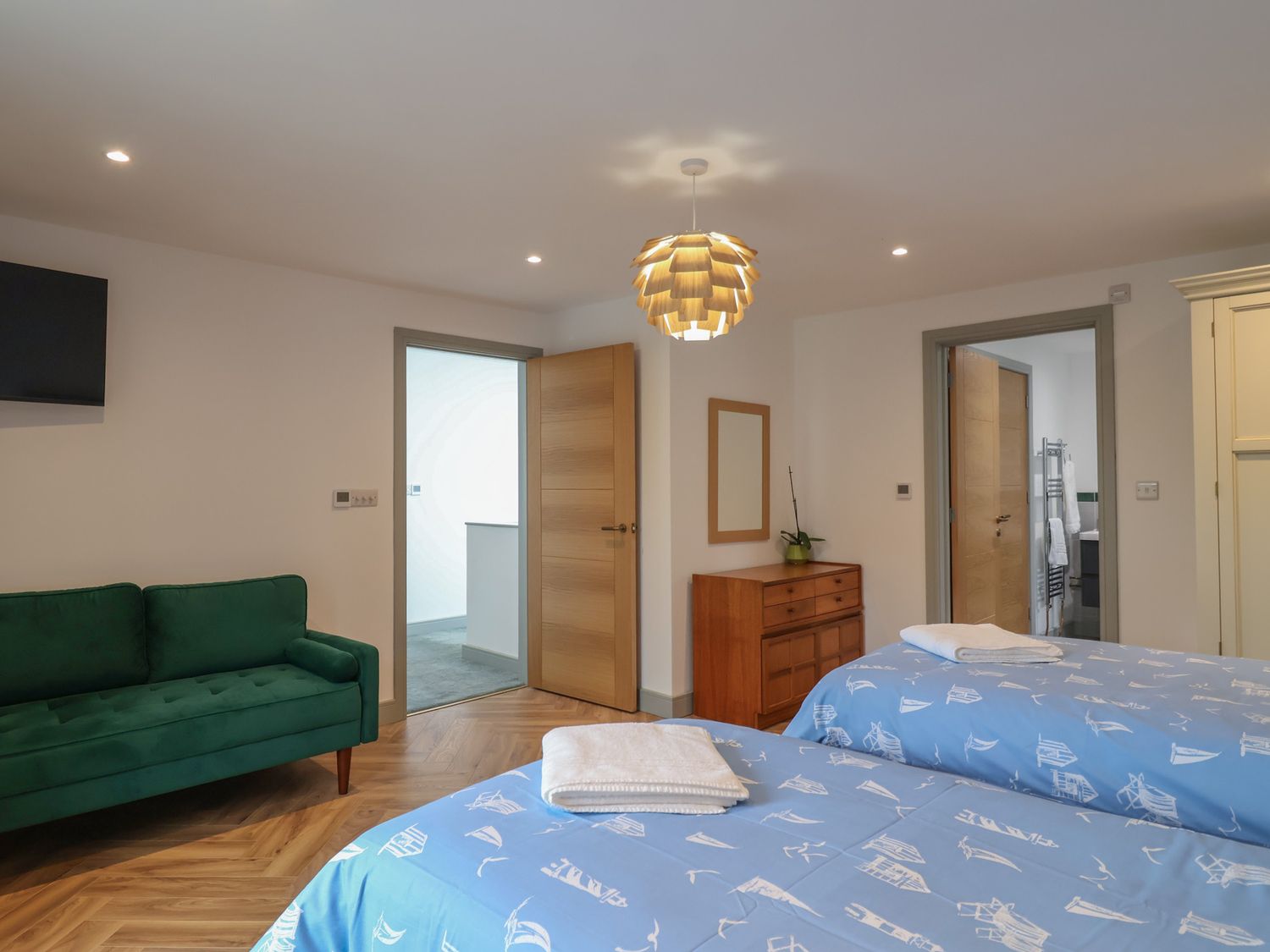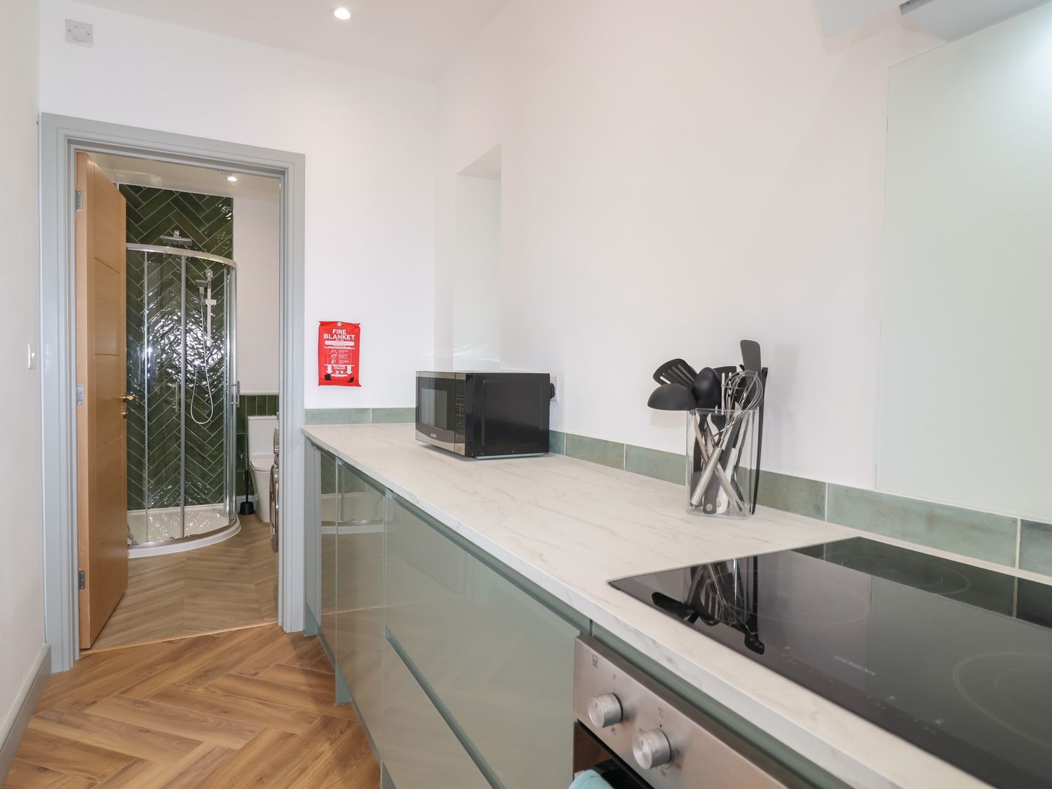 "Seacroft consists of a kitchen with an electric double oven, induction hob, microwave, fridge, freezer, dishwasher, coffee maker, wine chiller, and breakfast bar seating, a dining area seating six guests, and a sitting area with Smart TV. The bedrooms consist of a ground-floor king-size, king-size with en-suite walk-in shower and balcony, and twin with en-suite freestanding bath. There is a shower room with walk-in shower, basin, heated towel rail, WC, and washing machine. WiFi, fuel, power, bed linen, and towels are included in the rent. Outside, there is a non-enclosed terrace with furniture and sea views and off-road parking for one car, plus unrestricted roadside parking. One well-behaved dog is welcome, but sorry, no smoking. Enjoy a splendid retreat at Seacroft. Note: For the safety of the owner's chickens and ducks, dogs must be kept on a lead at all times outdoors. Note: Guests are to provide their own beach towels. Note: This property has a Good Housekeeping Bond of 350GBP"