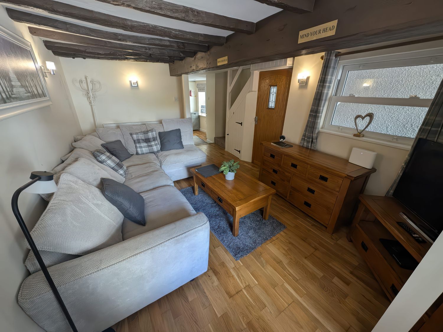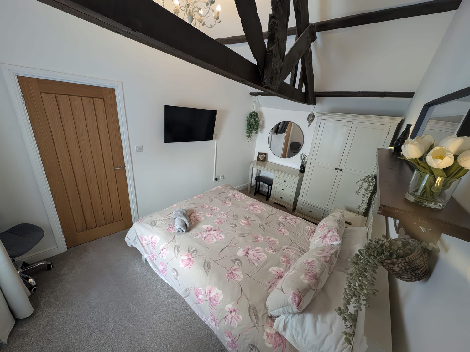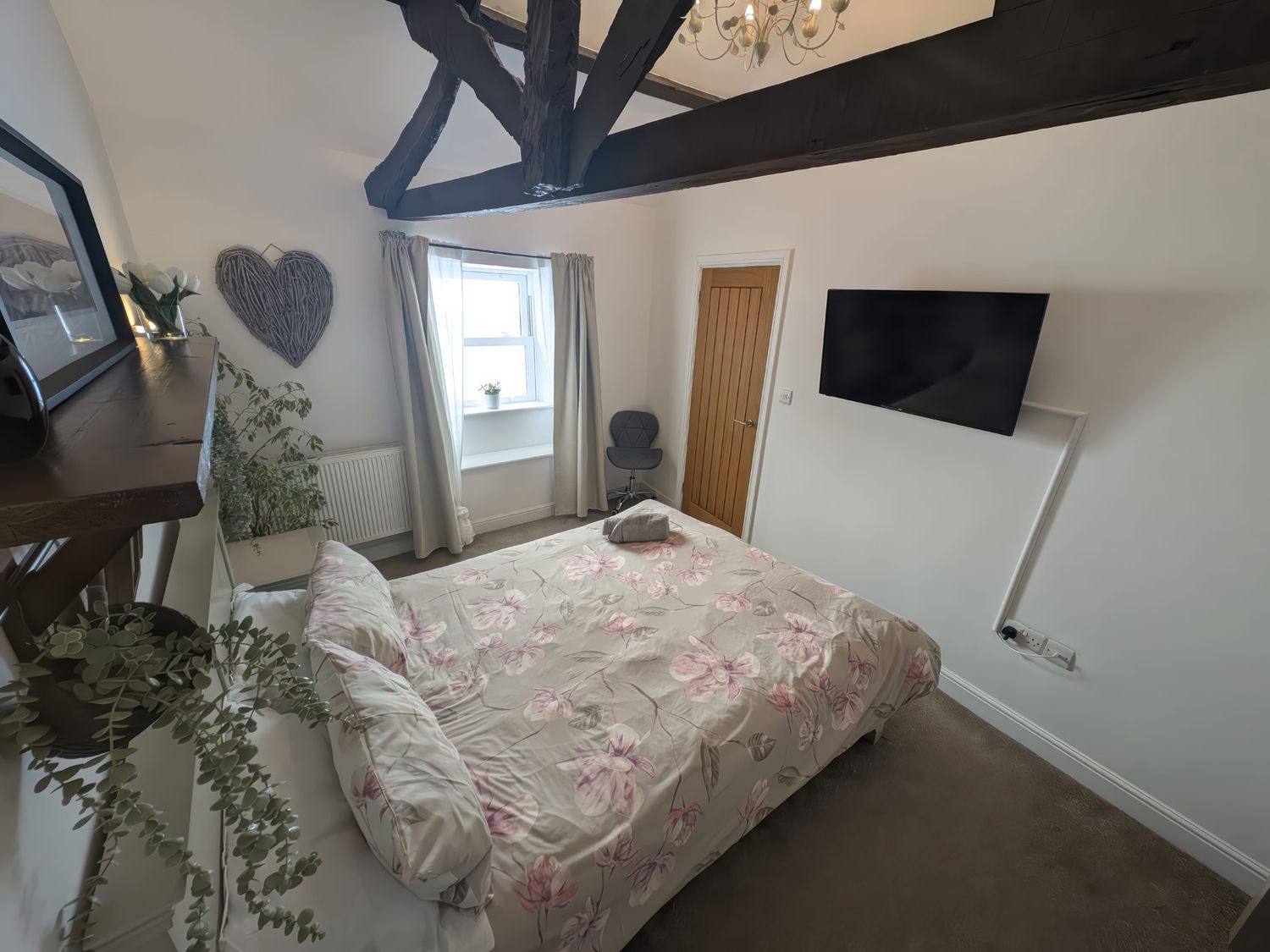 "Two bedrooms: 1 x king size with TV and 1 x twin with TV. Bathroom with bath, shower over, basin, and WC. Kitchen/diner. Sitting room "