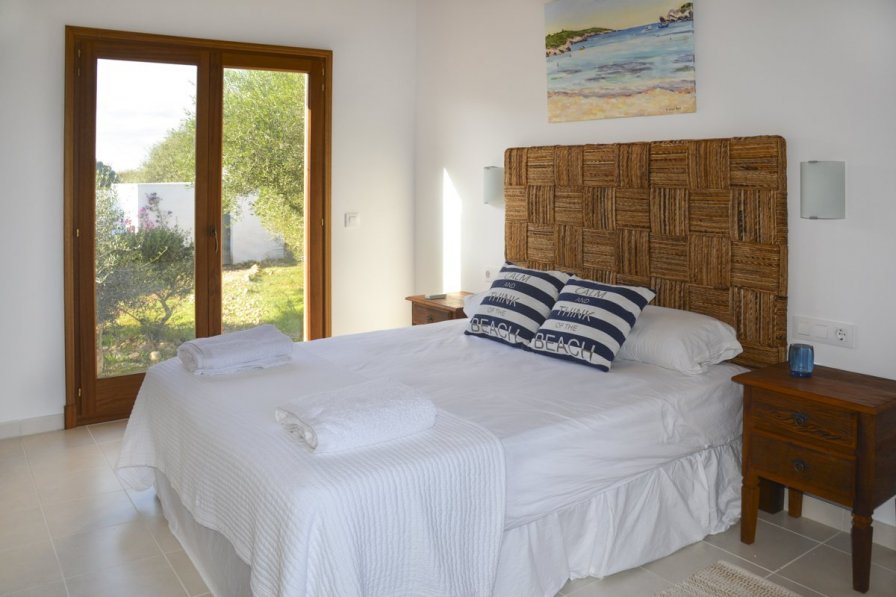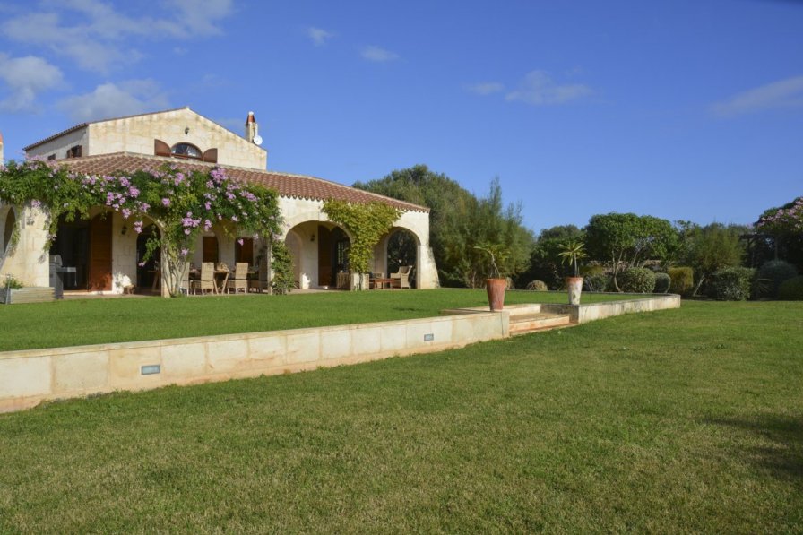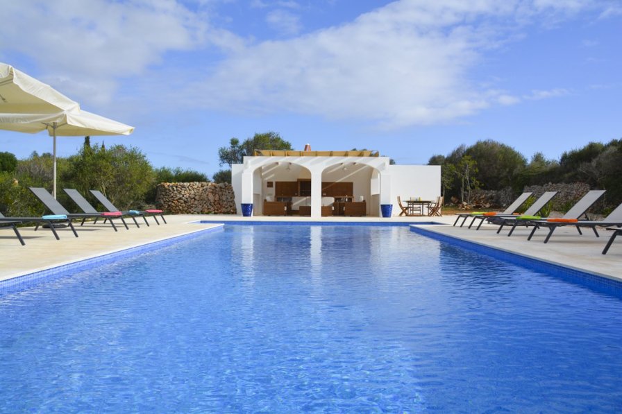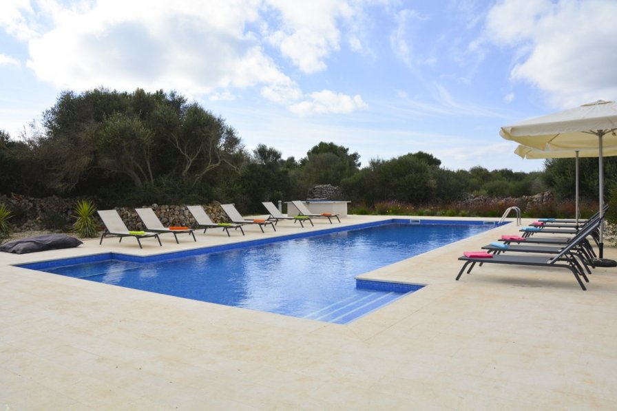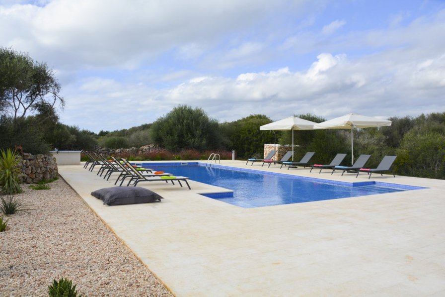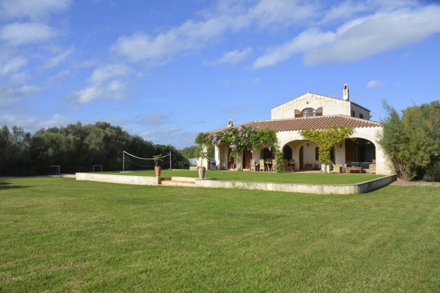 Located off a small road in the quaint village of Torret, this fabulous five-bedroom villa has so much to offer anyone looking for a relaxing stay on the quiet, unspoilt island of Menorca. With a private pool, table tennis and air conditioning throughout the entire property you can enjoy the fine Spanish sun all day long and never get too warm! As you arrive in the large circular parking area outside and enter the property, you're welcomed by a vast open plan living/dining area, with wonderful high wooden beams and countless sofas, armchairs and wooden chairs to choose from. The well-equipped kitchen includes a fabulous set of double doors opening out onto the garden, providing a stream of light and warmth into the villa itself. Each of the bedrooms also enjoys a set of French doors or large windows that welcome in the sunlight of a fine Menorcan day and ensure you make the most of the great weather while you're here! Each room is equipped with a unique array of furniture, all in-keeping with the traditional style of the property, and several have a very useful ensuite bathroom, also. The vast, terraced garden is perhaps the jewel in the crown of this wonderful property. First, the veranda attached to the house allows you to relax on the sofa or dine at the table with a view overlooking the lawn, with a range of options to choose from and a second, portable barbeque on here gives you more choice when it comes to food preparation! The pool is huge and spans the length of the garden, lined by sun loungers, with an incredible second kitchen area at its far end. With a fridge, sink and brick barbeque, alongside a very comfortable seating area and dining table, you could spend the entire day this side of the pool and want for nothing back in the main house! A further, shaded seating area in the garden provides yet another spot to relax. Furthermore – the music system connection from the main house reaches all the way out in to the garden allowing you to enjoy some music or the radio while indulging in all the garden has to offer. With all this, it's hard to believe there's also a beach volleyball court onsite too! Just for your private enjoyment! While the fabulous secluded location offers absolute peace and tranquillity, there are three great restaurants within walking distance, and a whole range of beaches, shops and activities just a short drive away! #### Features Ground Floor: - Kitchen: electric oven, gas cooker, dishwasher, Nespresso coffee machine, fridge, complete set of crockery, cutlery and utensils and a tap of filtered drinking water so that guests do not have to buy bottled water - Laundry: a washing machine, a sink and a large refrigerator with freezer - Living area: large and comfortable sofas, a plasma television, DVD player and access to Sky channels (English satellite), Netflix, Amazon Prime, BBC i-Player - Bedroom: A/C, double bed, sofa, ceiling fan with garden access and ensuite including Bath, Shower, Bidet and WC - Bedroom: A/C, 2 single beds, ceiling fan with garden access and ensuite including Bath, Shower, Bidet and WC - Bedroom: A/C, double bed with ensuite including Shower, Bidet and WC - Bedroom: A/C, double bed - Bathroom: Shower, Bidet and WC - Cloakroom: WC, washbasin First Floor: - Bedroom: A/C, beautiful canopy bed, TV, ceiling fan, dressing area and an ensuite with bath, shower and two dressers External Facilities: - Pool (16.6 × 5.8m) - Portable BBQ - Dining table for up to 12 - Terrace - Sun Loungers - Pool terrace: Hammocks, Table tennis, BBQ, Fridge, Sink, Hob, Dining table Touristic Registration Number: ET0531ME #### Location The Balearic island of Menorca is the quieter, unspoilt version of its big sisters Majorca and Ibiza. While it is partly known for its traditional summer fiestas, which take place in different towns around the island all summer long (with origins dating back to the 14th century!) it's really the place for those who enjoy a calmer, slower pace of life. Aside from its traditional fiestas, Menorca is better visited for its white-sand bays such as Pregonda and Cala Macarella, clear, turquoise water and more gentle activities like walking, cycling or horse-riding. With a coastline punctuated by beautiful coves and a landscape awarded the UNESCO Biosphere Reserve status, strewn with ancient stone monuments and an estimated 70,000km of dry-stone walls, this is an island for the nature lovers, and anyone looking for a little rest and relaxation. The thoroughly traditional Menorcan town of Sant Lluis is near to many different local attractions, including the Bodegas Binifadet, a fascinating vineyard with a dedicated restaurant on site. This central location makes it an excellent base from which to explore the island! The size of the town makes it perfect to discover on foot, and it's especially easy to explore given its grid system. Particularly worth visiting are the many beaches that punctuate the southern coastline, which the nearby S'Algar watersports club makes the most of!
