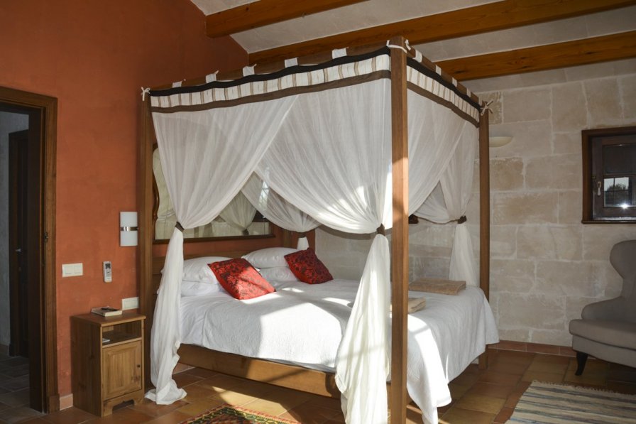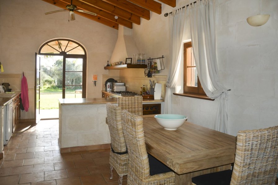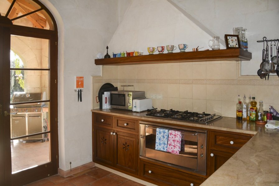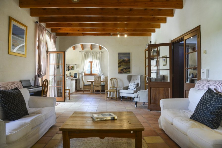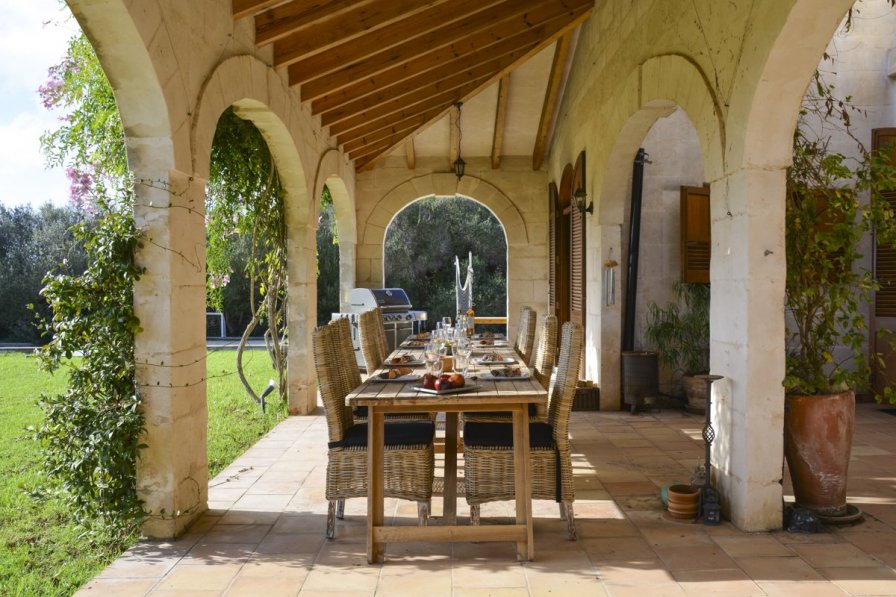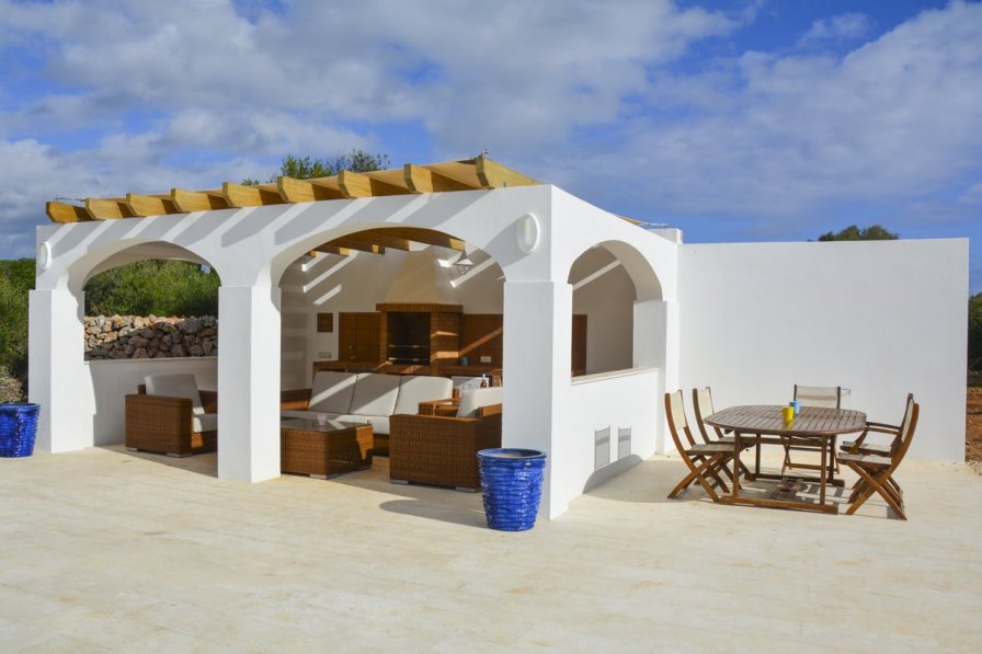 Located off a small road in the quaint village of Torret, this fabulous five-bedroom villa has so much to offer anyone looking for a relaxing stay on the quiet, unspoilt island of Menorca. With a private pool, table tennis and air conditioning throughout the entire property you can enjoy the fine Spanish sun all day long and never get too warm! As you arrive in the large circular parking area outside and enter the property, you're welcomed by a vast open plan living/dining area, with wonderful high wooden beams and countless sofas, armchairs and wooden chairs to choose from. The well-equipped kitchen includes a fabulous set of double doors opening out onto the garden, providing a stream of light and warmth into the villa itself. Each of the bedrooms also enjoys a set of French doors or large windows that welcome in the sunlight of a fine Menorcan day and ensure you make the most of the great weather while you're here! Each room is equipped with a unique array of furniture, all in-keeping with the traditional style of the property, and several have a very useful ensuite bathroom, also. The vast, terraced garden is perhaps the jewel in the crown of this wonderful property. First, the veranda attached to the house allows you to relax on the sofa or dine at the table with a view overlooking the lawn, with a range of options to choose from and a second, portable barbeque on here gives you more choice when it comes to food preparation! The pool is huge and spans the length of the garden, lined by sun loungers, with an incredible second kitchen area at its far end. With a fridge, sink and brick barbeque, alongside a very comfortable seating area and dining table, you could spend the entire day this side of the pool and want for nothing back in the main house! A further, shaded seating area in the garden provides yet another spot to relax. Furthermore – the music system connection from the main house reaches all the way out in to the garden allowing you to enjoy some music or the radio while indulging in all the garden has to offer. With all this, it's hard to believe there's also a beach volleyball court onsite too! Just for your private enjoyment! While the fabulous secluded location offers absolute peace and tranquillity, there are three great restaurants within walking distance, and a whole range of beaches, shops and activities just a short drive away! #### Features Ground Floor: - Kitchen: electric oven, gas cooker, dishwasher, Nespresso coffee machine, fridge, complete set of crockery, cutlery and utensils and a tap of filtered drinking water so that guests do not have to buy bottled water - Laundry: a washing machine, a sink and a large refrigerator with freezer - Living area: large and comfortable sofas, a plasma television, DVD player and access to Sky channels (English satellite), Netflix, Amazon Prime, BBC i-Player - Bedroom: A/C, double bed, sofa, ceiling fan with garden access and ensuite including Bath, Shower, Bidet and WC - Bedroom: A/C, 2 single beds, ceiling fan with garden access and ensuite including Bath, Shower, Bidet and WC - Bedroom: A/C, double bed with ensuite including Shower, Bidet and WC - Bedroom: A/C, double bed - Bathroom: Shower, Bidet and WC - Cloakroom: WC, washbasin First Floor: - Bedroom: A/C, beautiful canopy bed, TV, ceiling fan, dressing area and an ensuite with bath, shower and two dressers External Facilities: - Pool (16.6 × 5.8m) - Portable BBQ - Dining table for up to 12 - Terrace - Sun Loungers - Pool terrace: Hammocks, Table tennis, BBQ, Fridge, Sink, Hob, Dining table Touristic Registration Number: ET0531ME #### Location The Balearic island of Menorca is the quieter, unspoilt version of its big sisters Majorca and Ibiza. While it is partly known for its traditional summer fiestas, which take place in different towns around the island all summer long (with origins dating back to the 14th century!) it's really the place for those who enjoy a calmer, slower pace of life. Aside from its traditional fiestas, Menorca is better visited for its white-sand bays such as Pregonda and Cala Macarella, clear, turquoise water and more gentle activities like walking, cycling or horse-riding. With a coastline punctuated by beautiful coves and a landscape awarded the UNESCO Biosphere Reserve status, strewn with ancient stone monuments and an estimated 70,000km of dry-stone walls, this is an island for the nature lovers, and anyone looking for a little rest and relaxation. The thoroughly traditional Menorcan town of Sant Lluis is near to many different local attractions, including the Bodegas Binifadet, a fascinating vineyard with a dedicated restaurant on site. This central location makes it an excellent base from which to explore the island! The size of the town makes it perfect to discover on foot, and it's especially easy to explore given its grid system. Particularly worth visiting are the many beaches that punctuate the southern coastline, which the nearby S'Algar watersports club makes the most of!