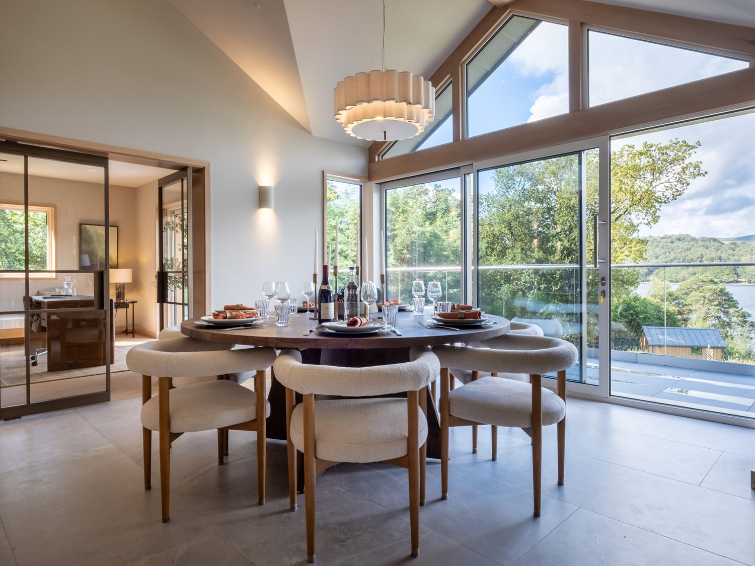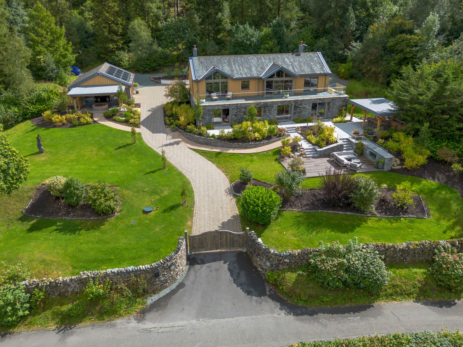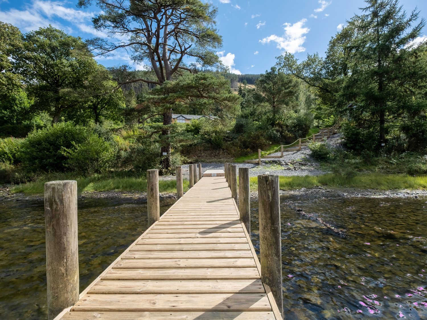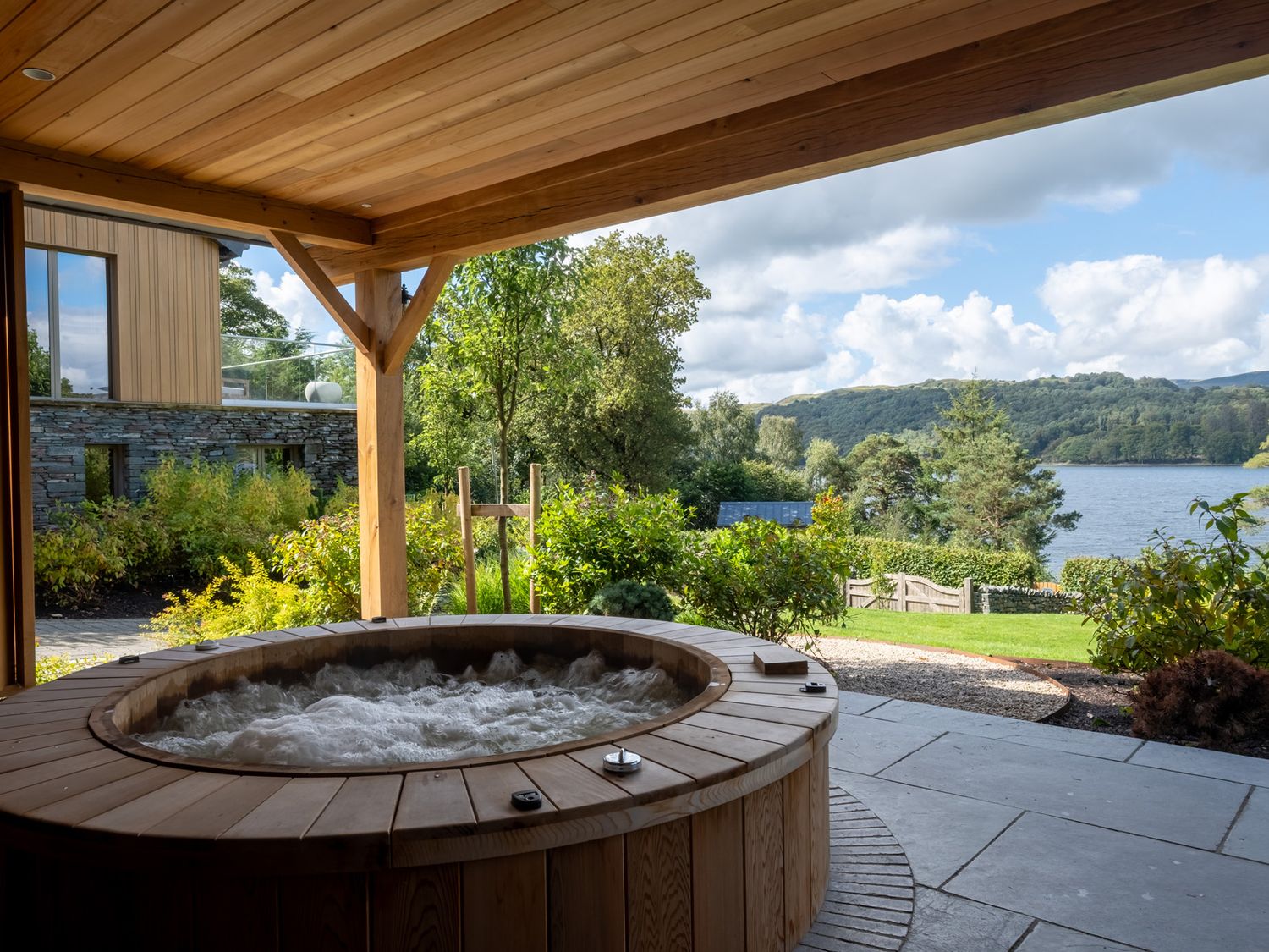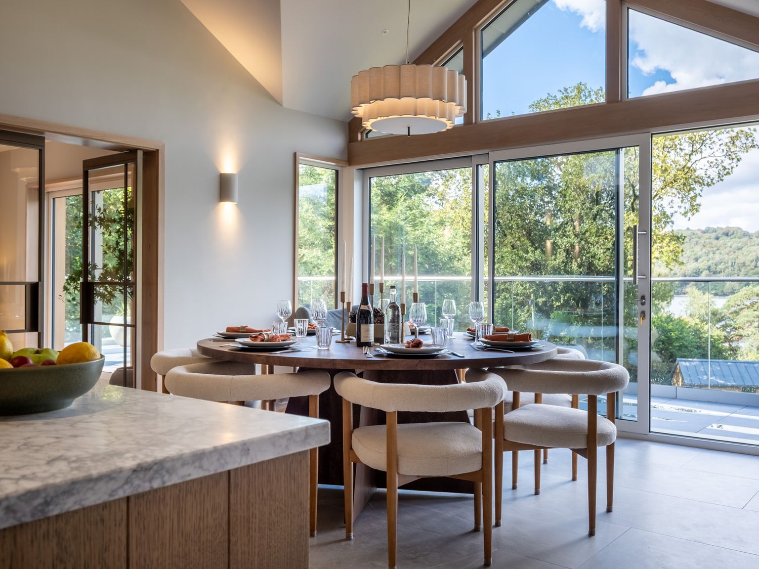 "Deer Close, a reverse-level house, consists of a kitchen/diner with ovens, hob, fridge/freezer, dishwasher, and hot water tap, an additional fridge/freeaser nearby, a utility with washing machine and tumble dryer, a sitting area with Smart TV, a gym with TV, sauna, massage room, and shower room. The bedrooms consist of a super-king-size with en-suite walk-in shower, basin and WC, two super-king-sizes, and a family room with bunk bedrooms sleeping four guests. There is a bathroom with bath, walk-in shower, basin, and heated towel rail, and WC, and a shower room with with rainforest shower, double basin, heated towel rail and WC and a cloakroom with basin and WC. WiFi, fuel, power, bed linen, and towels are included in the rent. Outside, there is a garden with patio, lawn, decking, barbecue, hot tub, fire pit, furniture, and jetty, a boathouse with woodburning stove and sitting area, Six acres of woodland behind the house and off-road parking for at least six cars. Sorry, no pets and no smoking. Within 3.4 miles you will find a shop, 2.9 miles a pub and 0.1 miles a lake. Find your perfect escape at Deer Close. Note: Please bring your own watersports gear, such as kayaks, etc. Note: Access to your private jetty is across a public country lane, please take care. Good Housekeeping Bond 500 GBP"