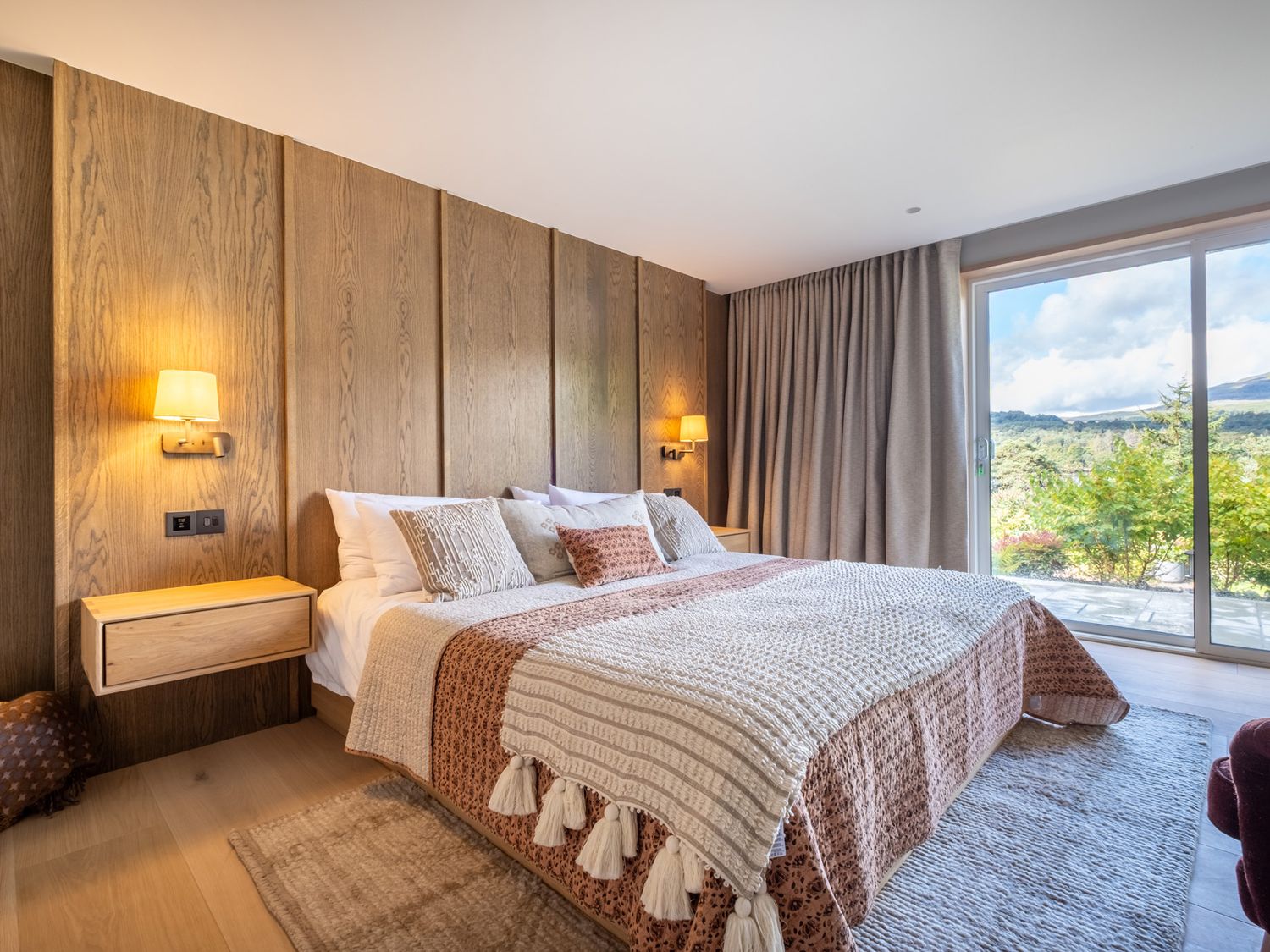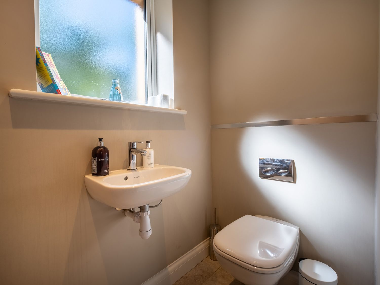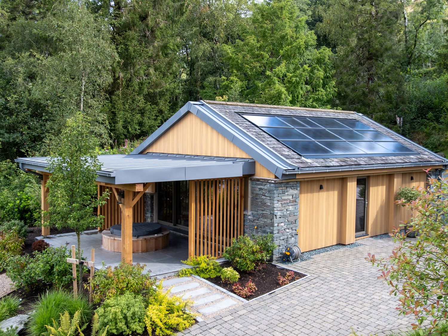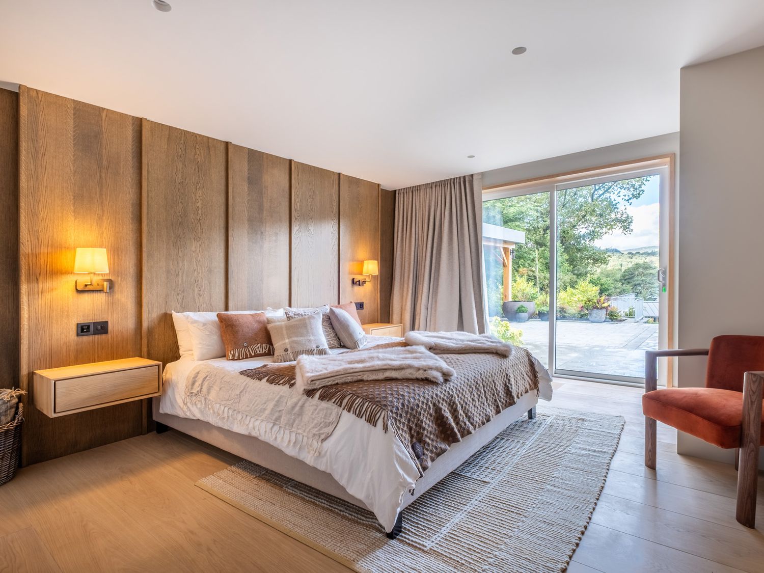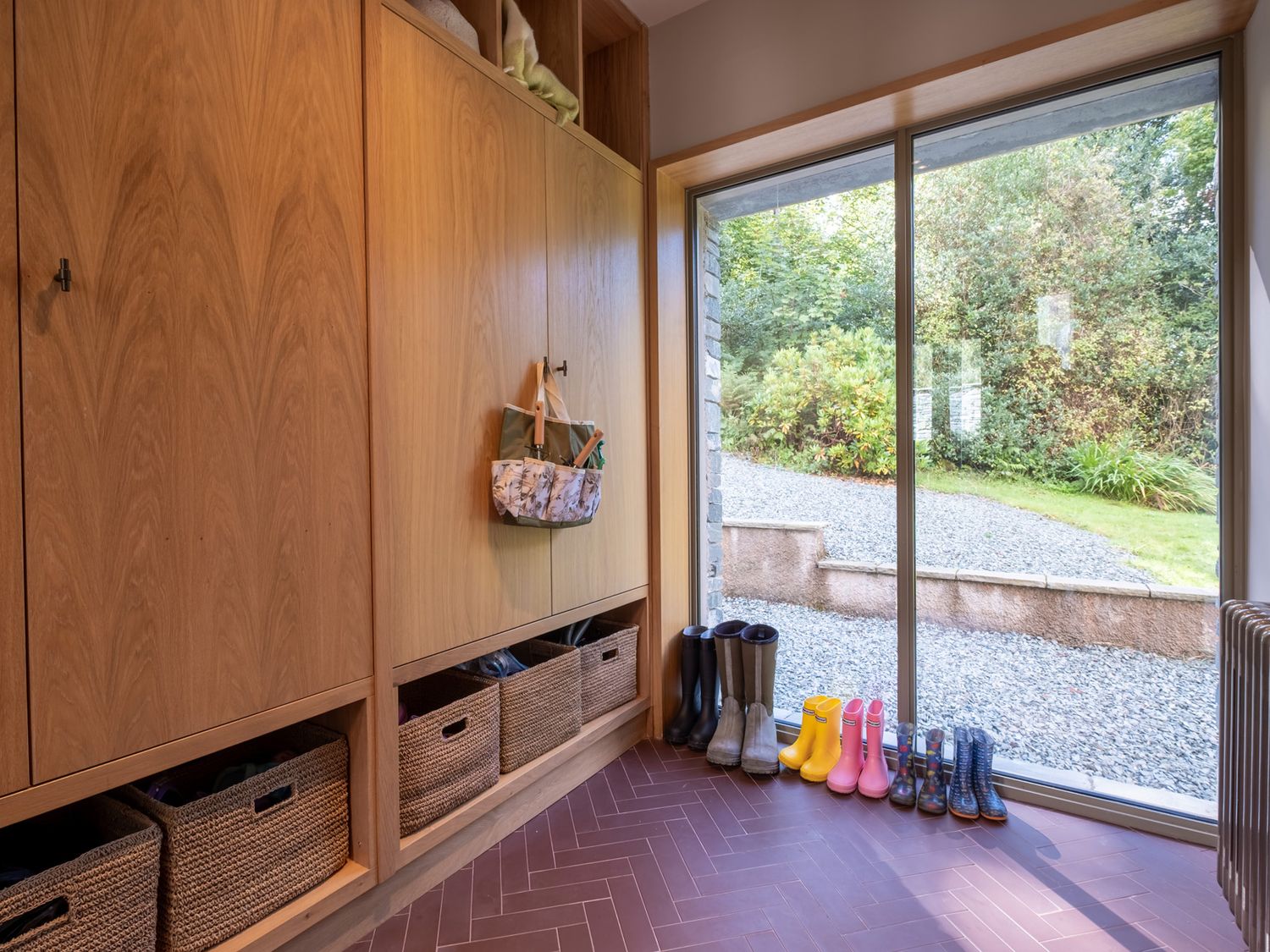 "Deer Close, a reverse-level house, consists of a kitchen/diner with ovens, hob, fridge/freezer, dishwasher, and hot water tap, an additional fridge/freeaser nearby, a utility with washing machine and tumble dryer, a sitting area with Smart TV, a gym with TV, sauna, massage room, and shower room. The bedrooms consist of a super-king-size with en-suite walk-in shower, basin and WC, two super-king-sizes, and a family room with bunk bedrooms sleeping four guests. There is a bathroom with bath, walk-in shower, basin, and heated towel rail, and WC, and a shower room with with rainforest shower, double basin, heated towel rail and WC and a cloakroom with basin and WC. WiFi, fuel, power, bed linen, and towels are included in the rent. Outside, there is a garden with patio, lawn, decking, barbecue, hot tub, fire pit, furniture, and jetty, a boathouse with woodburning stove and sitting area, Six acres of woodland behind the house and off-road parking for at least six cars. Sorry, no pets and no smoking. Within 3.4 miles you will find a shop, 2.9 miles a pub and 0.1 miles a lake. Find your perfect escape at Deer Close. Note: Please bring your own watersports gear, such as kayaks, etc. Note: Access to your private jetty is across a public country lane, please take care. Good Housekeeping Bond 500 GBP"