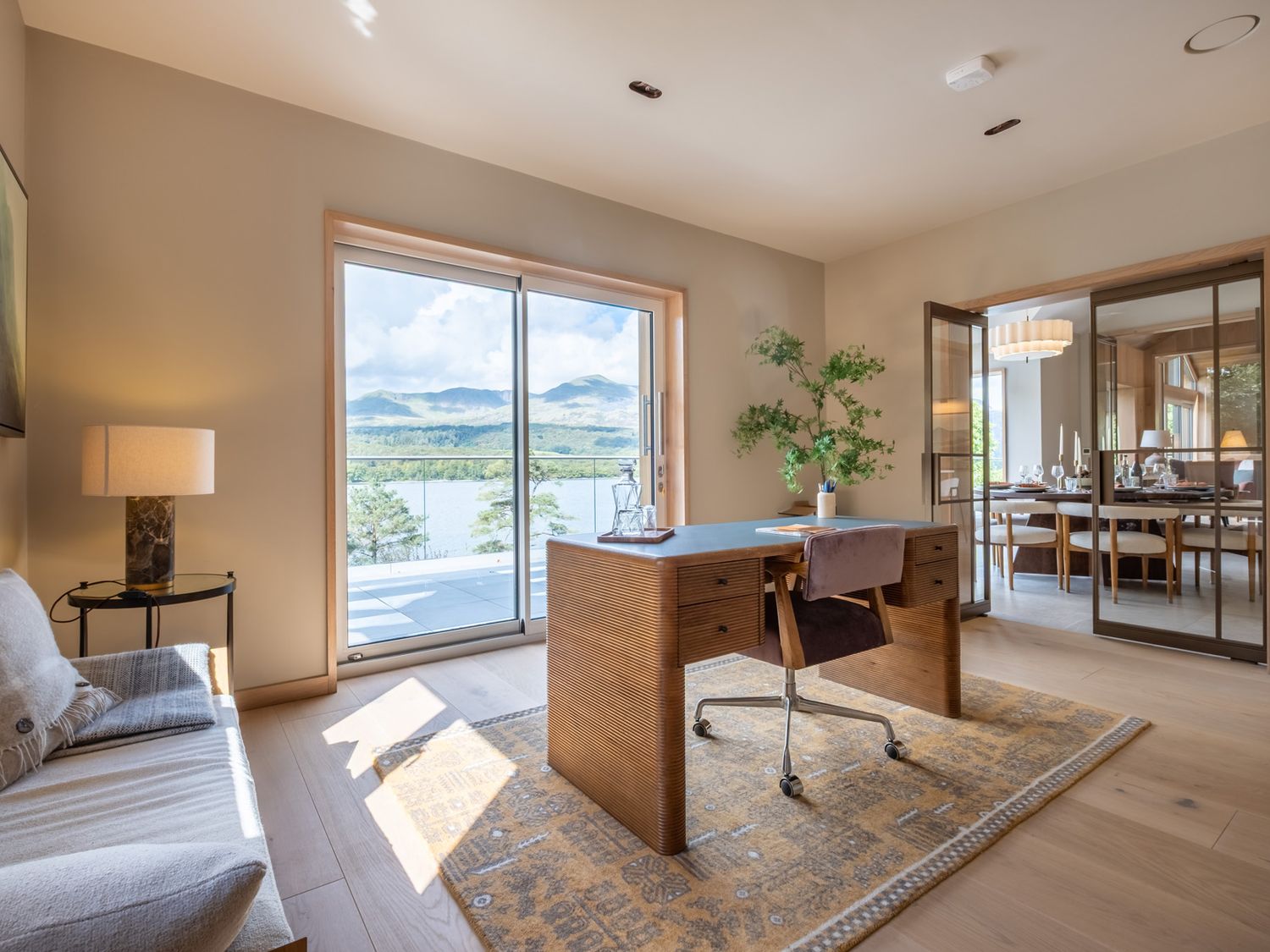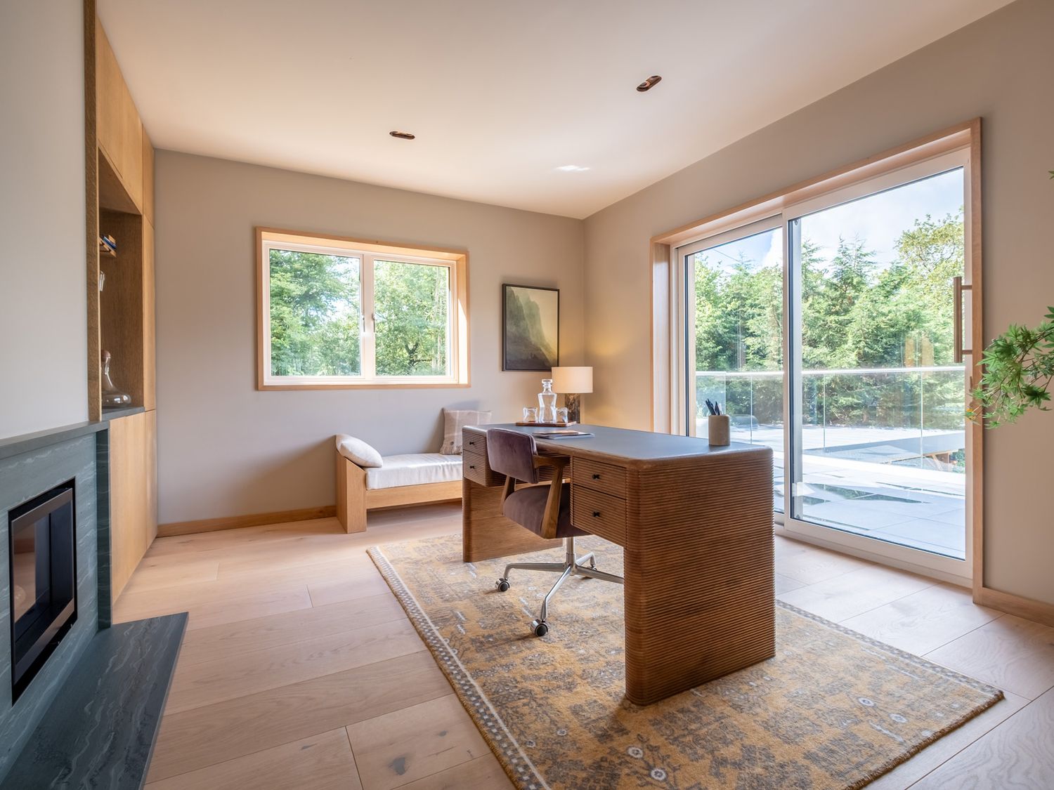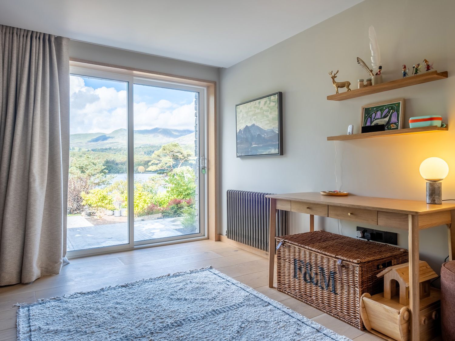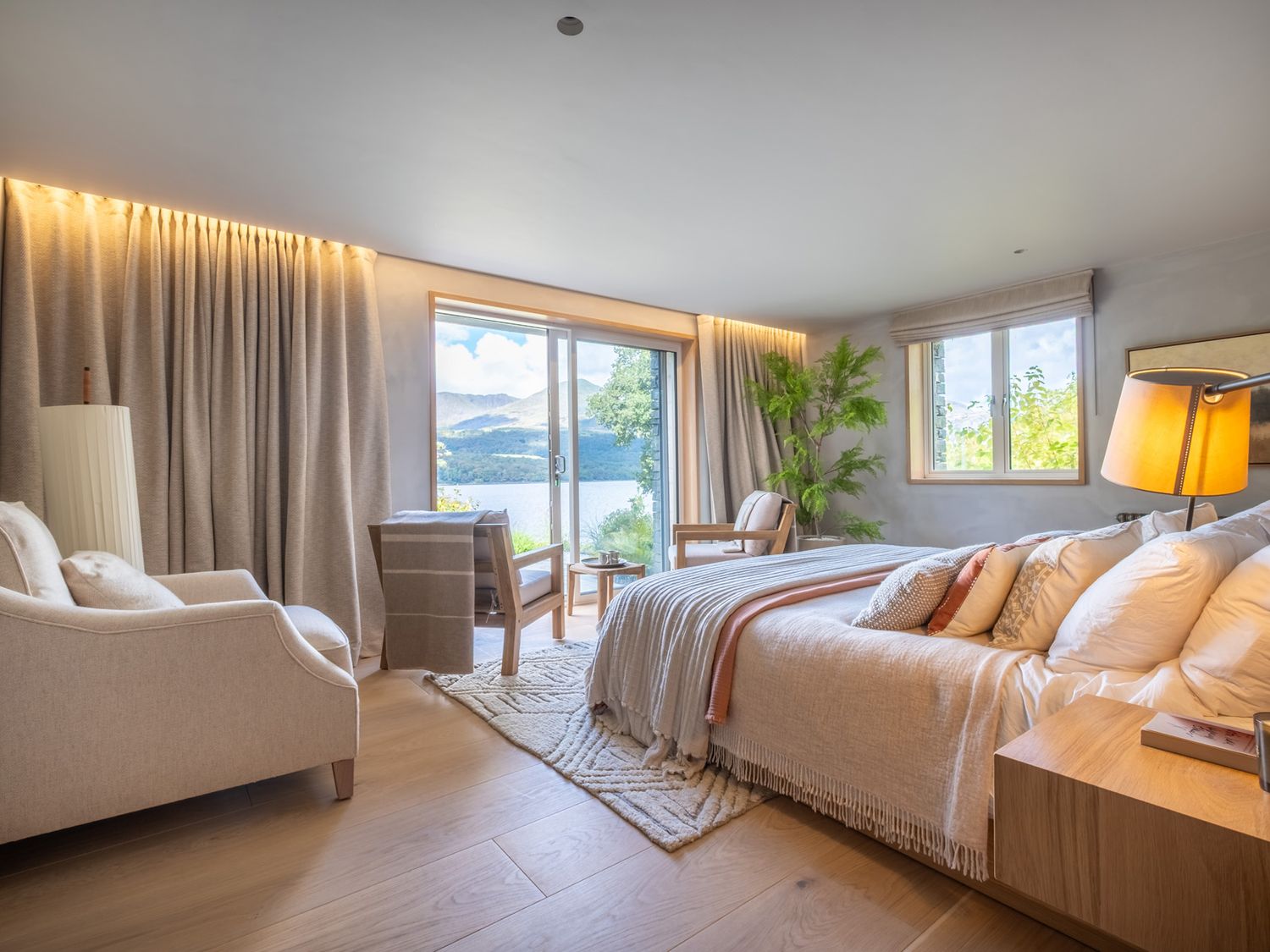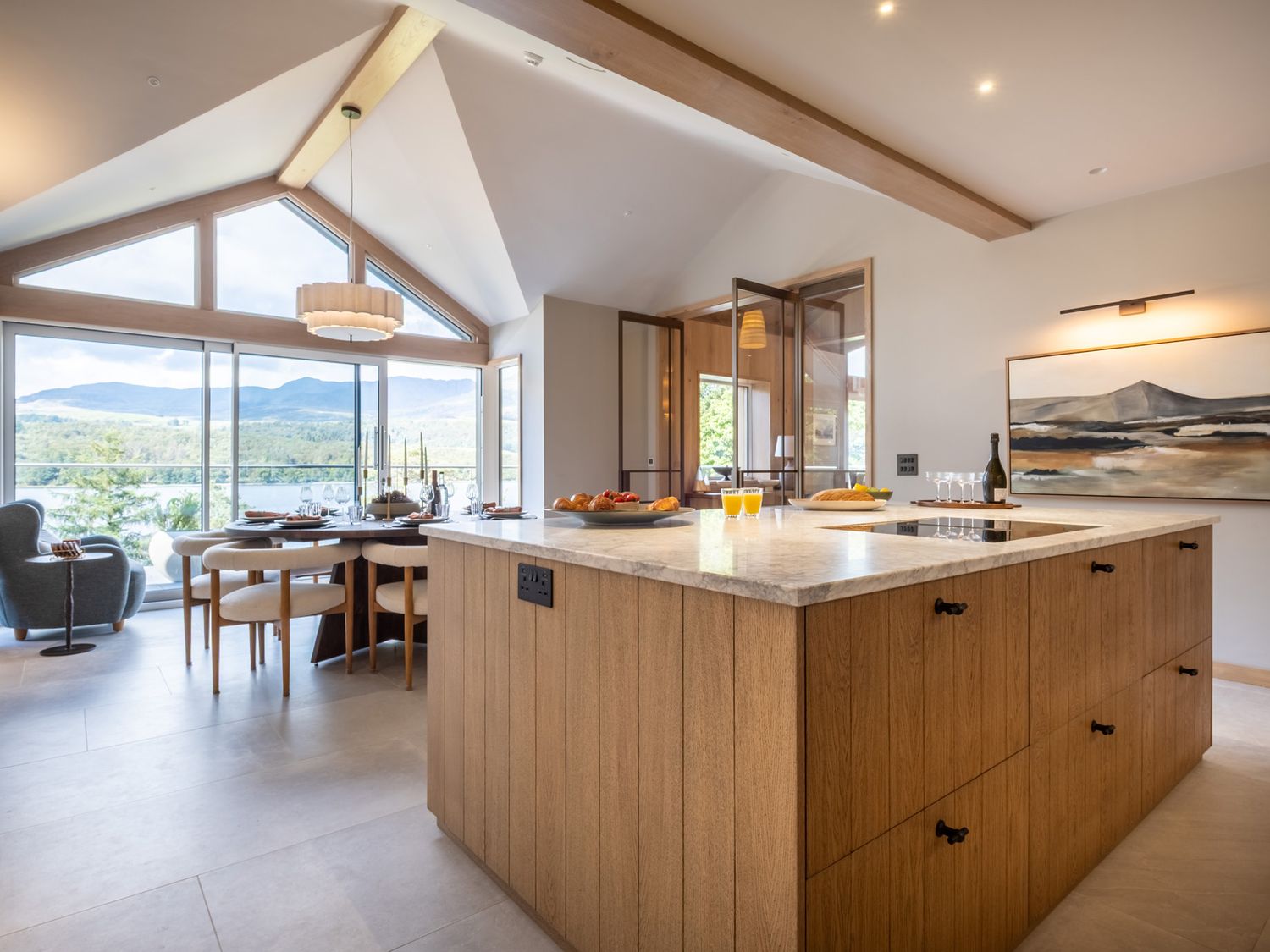 "Deer Close, a reverse-level house, consists of a kitchen/diner with ovens, hob, fridge/freezer, dishwasher, and hot water tap, an additional fridge/freeaser nearby, a utility with washing machine and tumble dryer, a sitting area with Smart TV, a gym with TV, sauna, massage room, and shower room. The bedrooms consist of a super-king-size with en-suite walk-in shower, basin and WC, two super-king-sizes, and a family room with bunk bedrooms sleeping four guests. There is a bathroom with bath, walk-in shower, basin, and heated towel rail, and WC, and a shower room with with rainforest shower, double basin, heated towel rail and WC and a cloakroom with basin and WC. WiFi, fuel, power, bed linen, and towels are included in the rent. Outside, there is a garden with patio, lawn, decking, barbecue, hot tub, fire pit, furniture, and jetty, a boathouse with woodburning stove and sitting area, Six acres of woodland behind the house and off-road parking for at least six cars. Sorry, no pets and no smoking. Within 3.4 miles you will find a shop, 2.9 miles a pub and 0.1 miles a lake. Find your perfect escape at Deer Close. Note: Please bring your own watersports gear, such as kayaks, etc. Note: Access to your private jetty is across a public country lane, please take care. Good Housekeeping Bond 500 GBP"