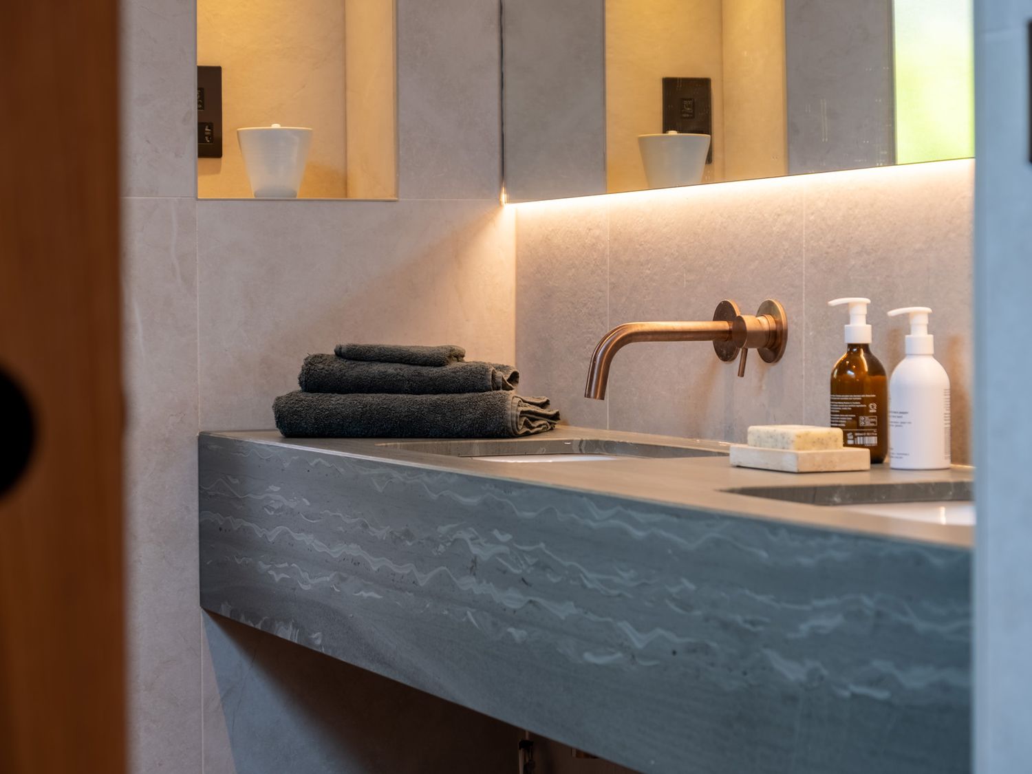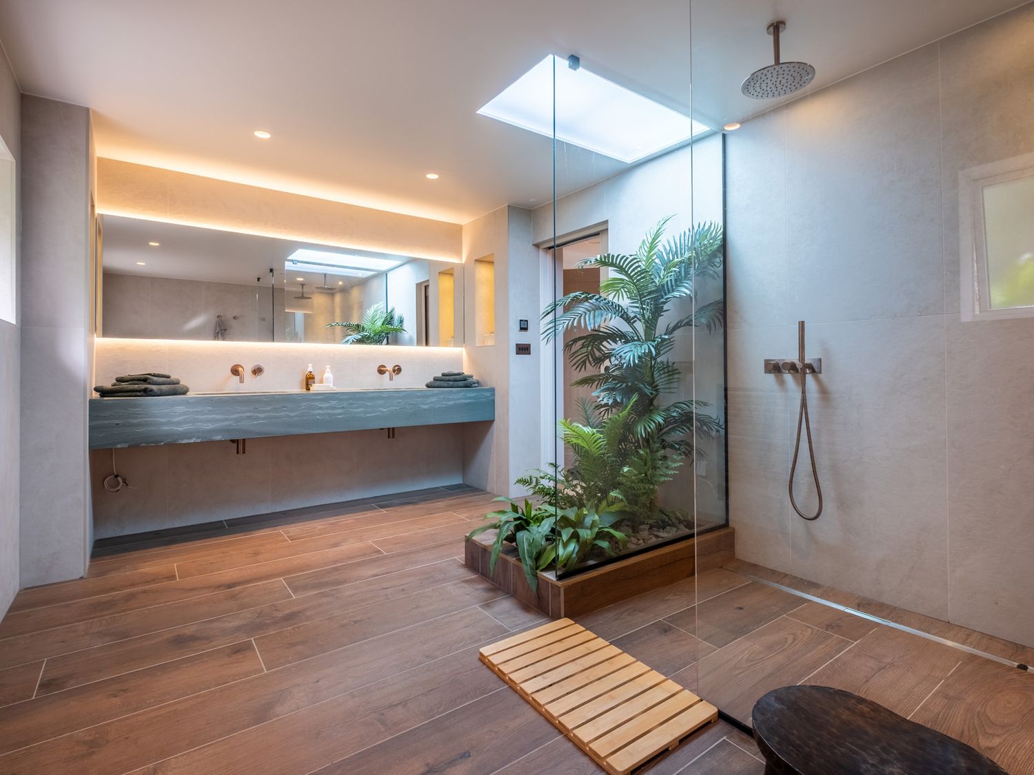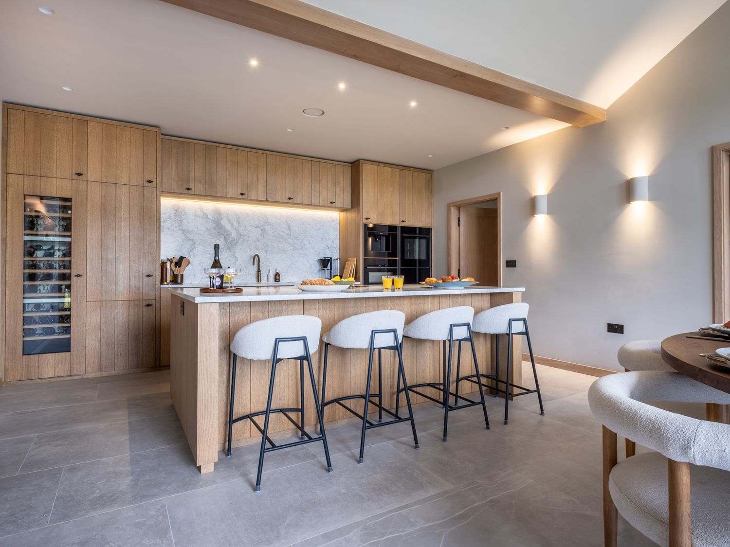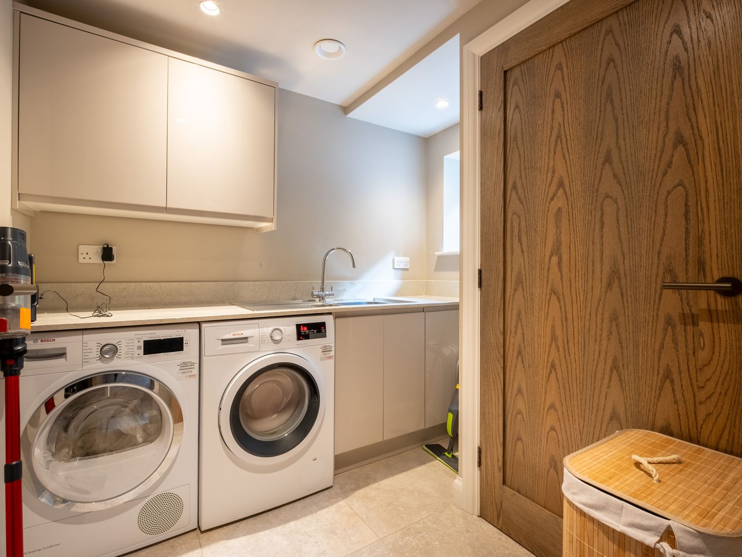 Wellness suite with gym including rowing machine, exercise bike, yoga mats, balls and weights, TV, sauna, Himalayan salt treatment room and shower room with rainforest shower, basin. Branded robes to use when at the property. Undercover hot tub.