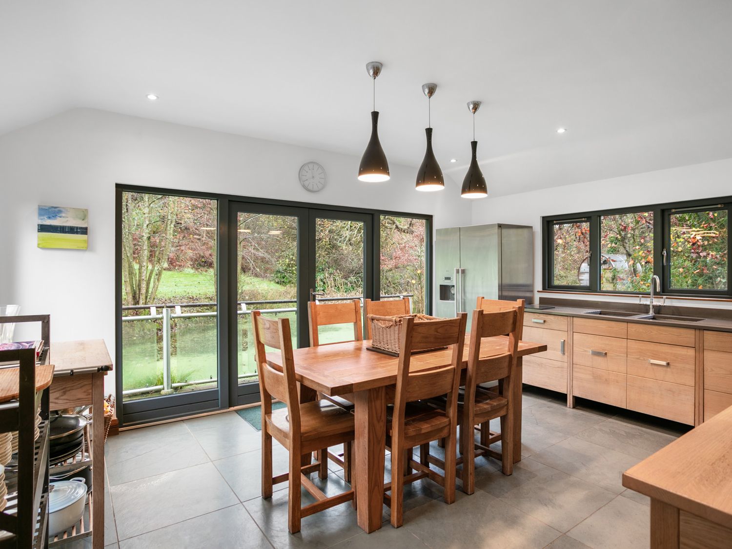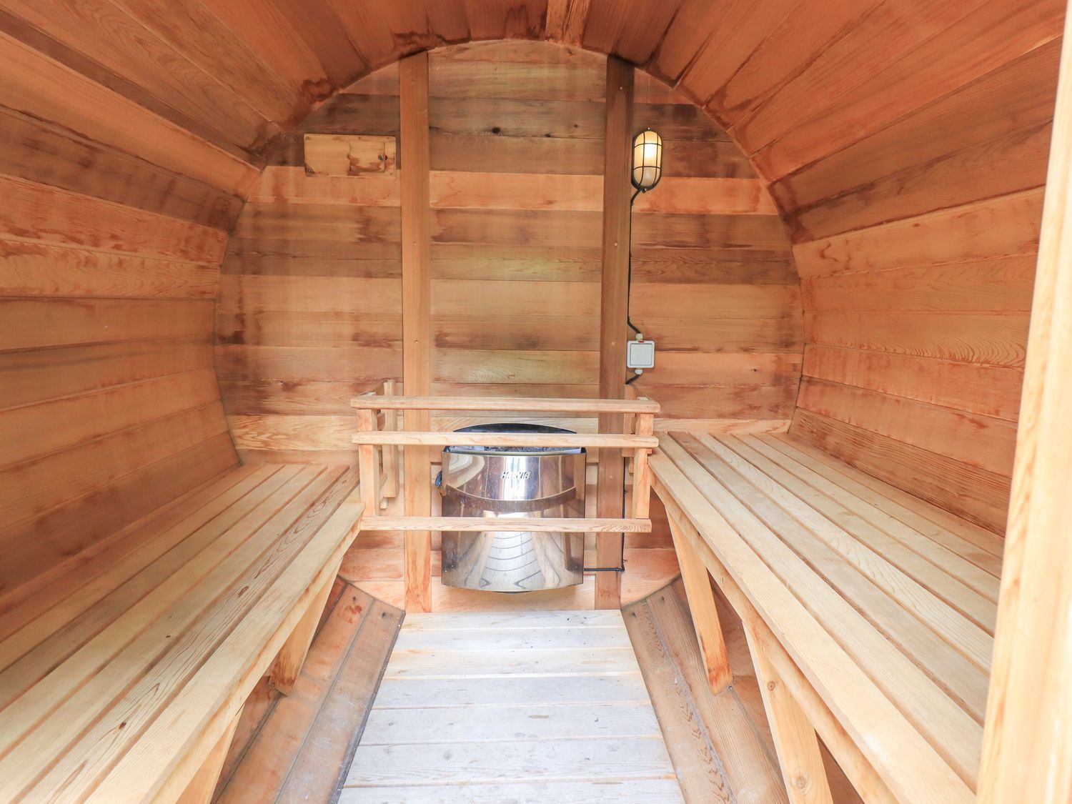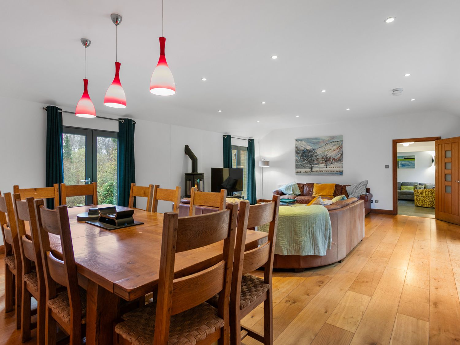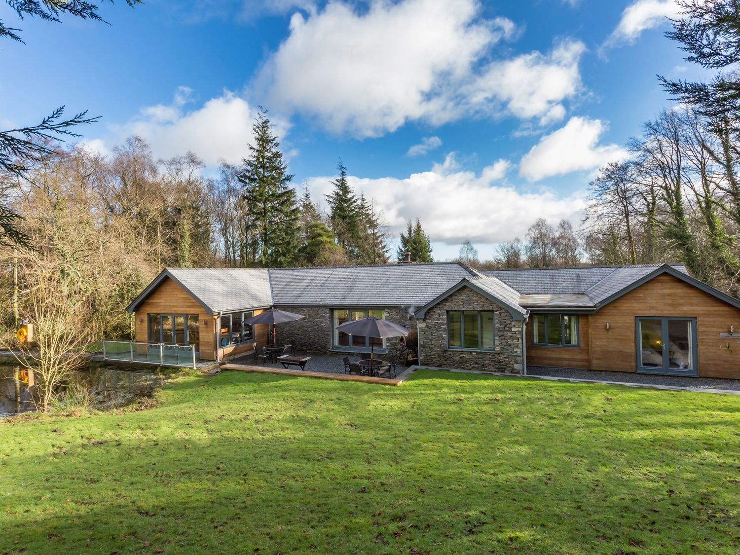 "Bracken Ground is a Five Star Highly Commended property consisting of a kitchen with electric oven, gas hob, microwave, fridge/freezer, dishwasher, Jamie Oliver pizza oven, and dining area, a utility with washer/dryer, and a sitting room with dining area, woodburning stove, Sky HD and Sky Sports, plus a separate sitting/reading room. The bedrooms consist of a master king-size with en-suite shower room, three further king-size rooms (one with en-suite), and a twin with French doors to the garden, along with a bathroom, shower room, and two en-suites. Outside, there is an extensive lawned garden with woodland and pond, a private hot tub, sauna, BBQ, and pizza oven, plus off-road parking for 10 cars. Within 7.5 miles, you will find a shop, and within 1.5 miles, a pub. WiFi, fuel, power, bed linen, towels, and a starter pack for the woodburning stove are all included in the price. Two well-behaved pets are welcome. Have a wonderful holiday at Bracken Ground. Note: Pond is unfenced, supervise children. WiFi speed not guaranteed. 500 GBP Good Housekeeping Bond."