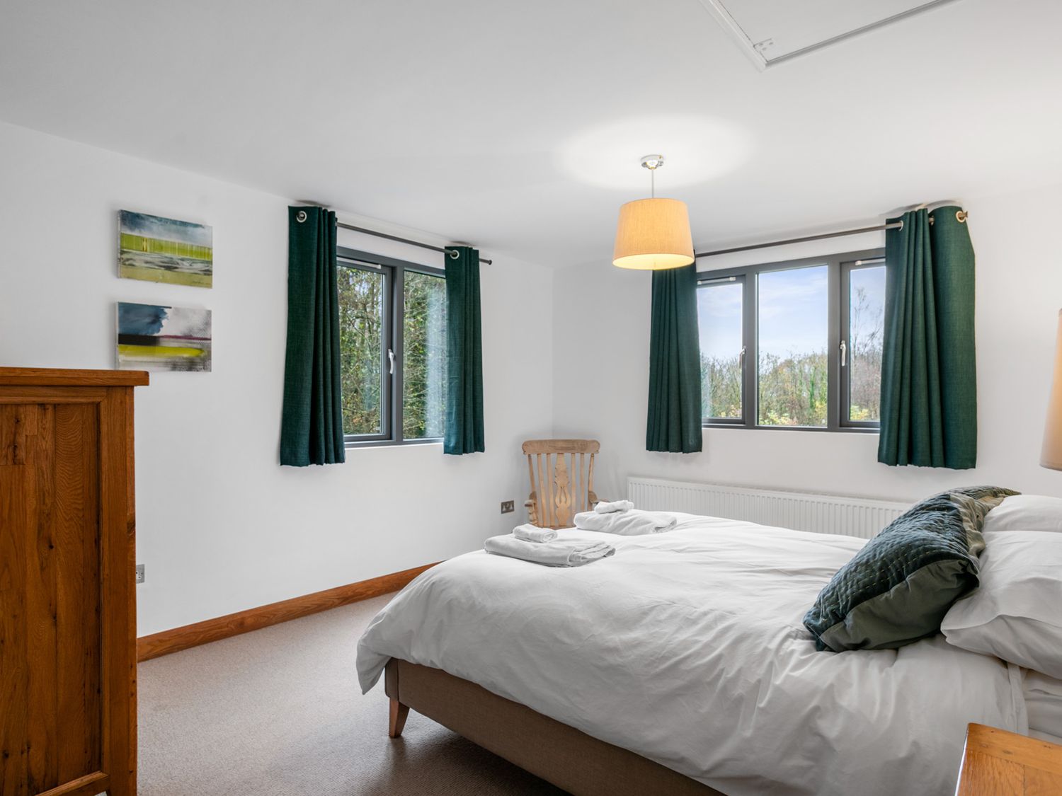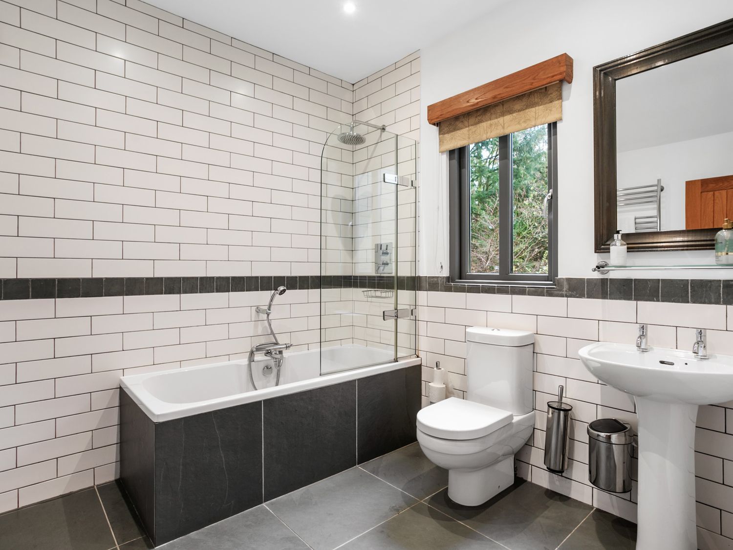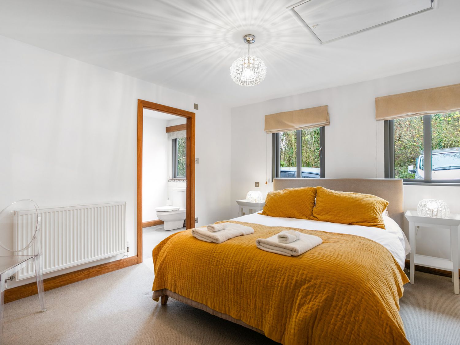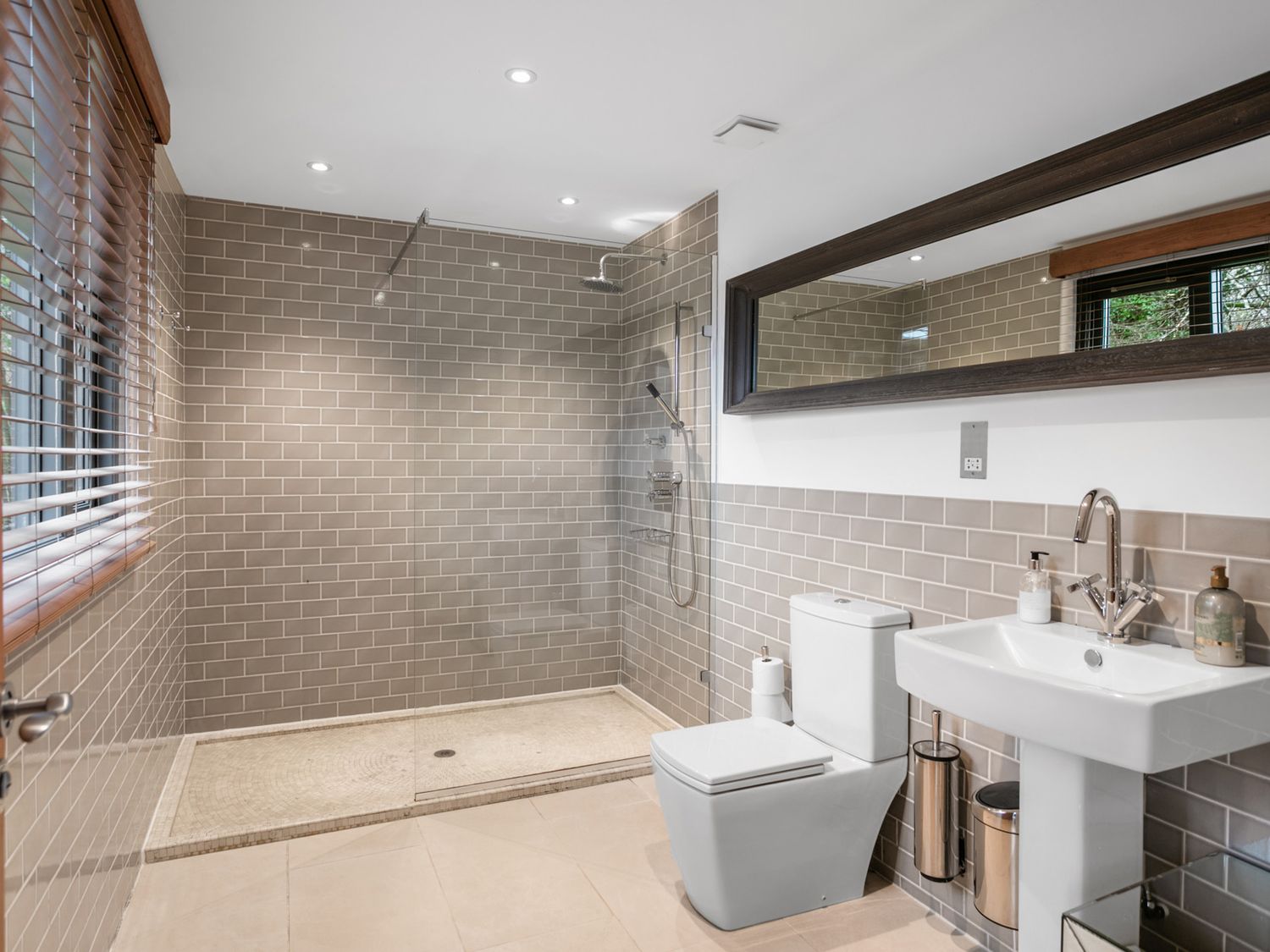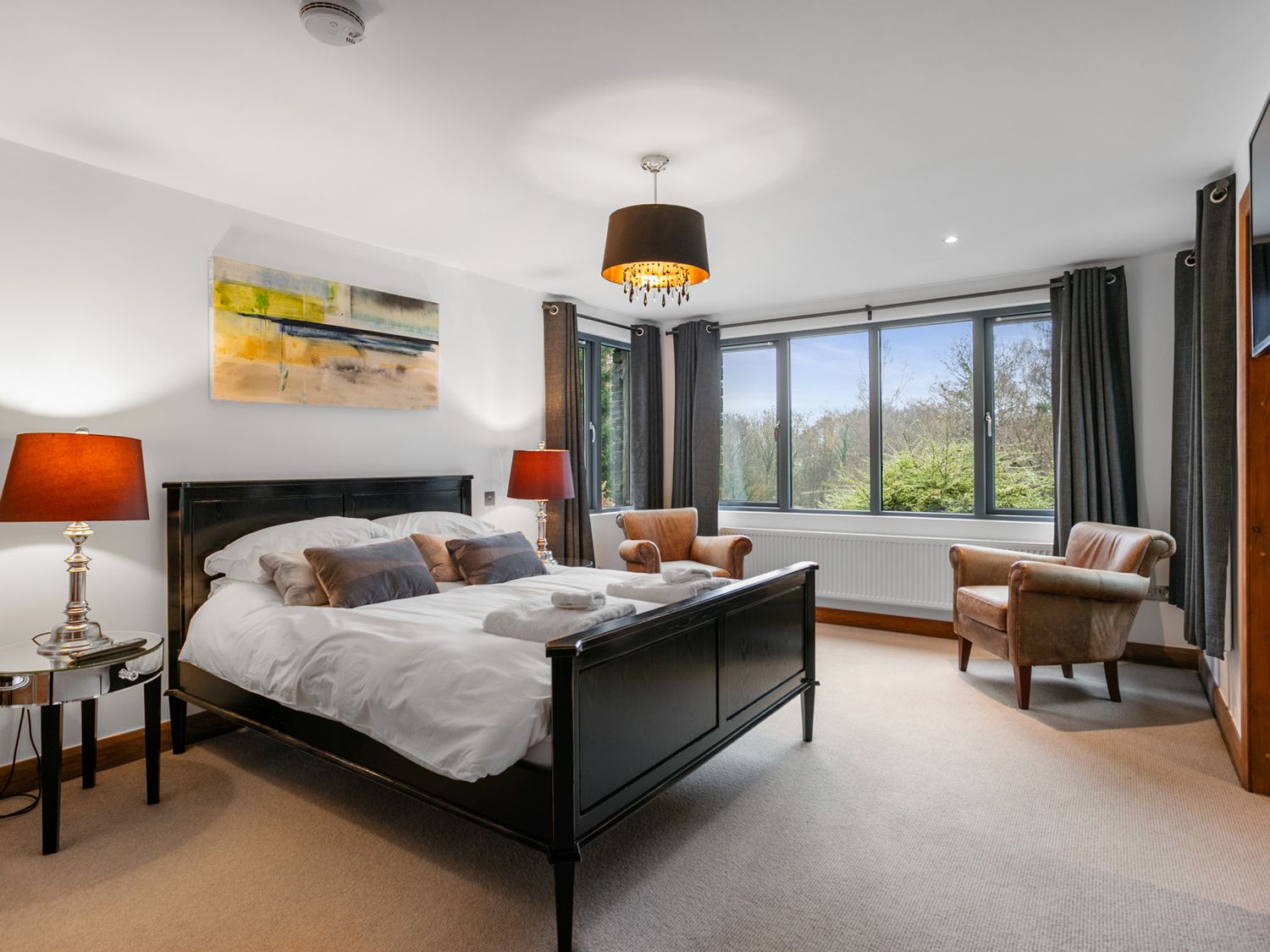 "Five Star Highly Commended property. Five bedrooms: 1 x master king-size bedroom with en-suite shower room, basin and WC, 3 x king-size bedrooms (one with en-suite), 1 x twin bedroom with French doors to the rear. 1 x bathroom with shower over bath, basin and WC. 1 x shower room with basin and WC. Utility. Kitchen with dining area. Sitting room with dining area and woodburning stove. Separate sitting/reading room. Outdoor hot tub, sauna, BBQ and pizza oven"