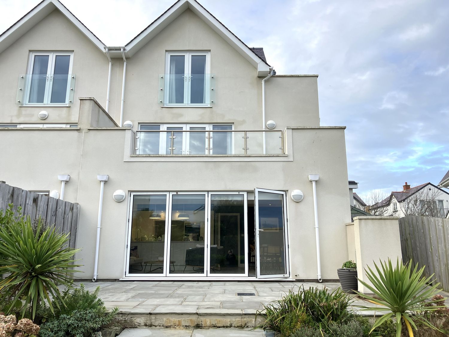 "Over three floors. Three bedrooms: 1 x double with balcony, 1 x second-floor double with juliet balcony and regular balcony, 1 x twin. Second-floor bathroom with bath, basin, WC. Shower room with walk-in shower, basin, WC. Cloakroom with basin, WC. Open-plan living space with kitchen, dining area and sitting area. Utility"