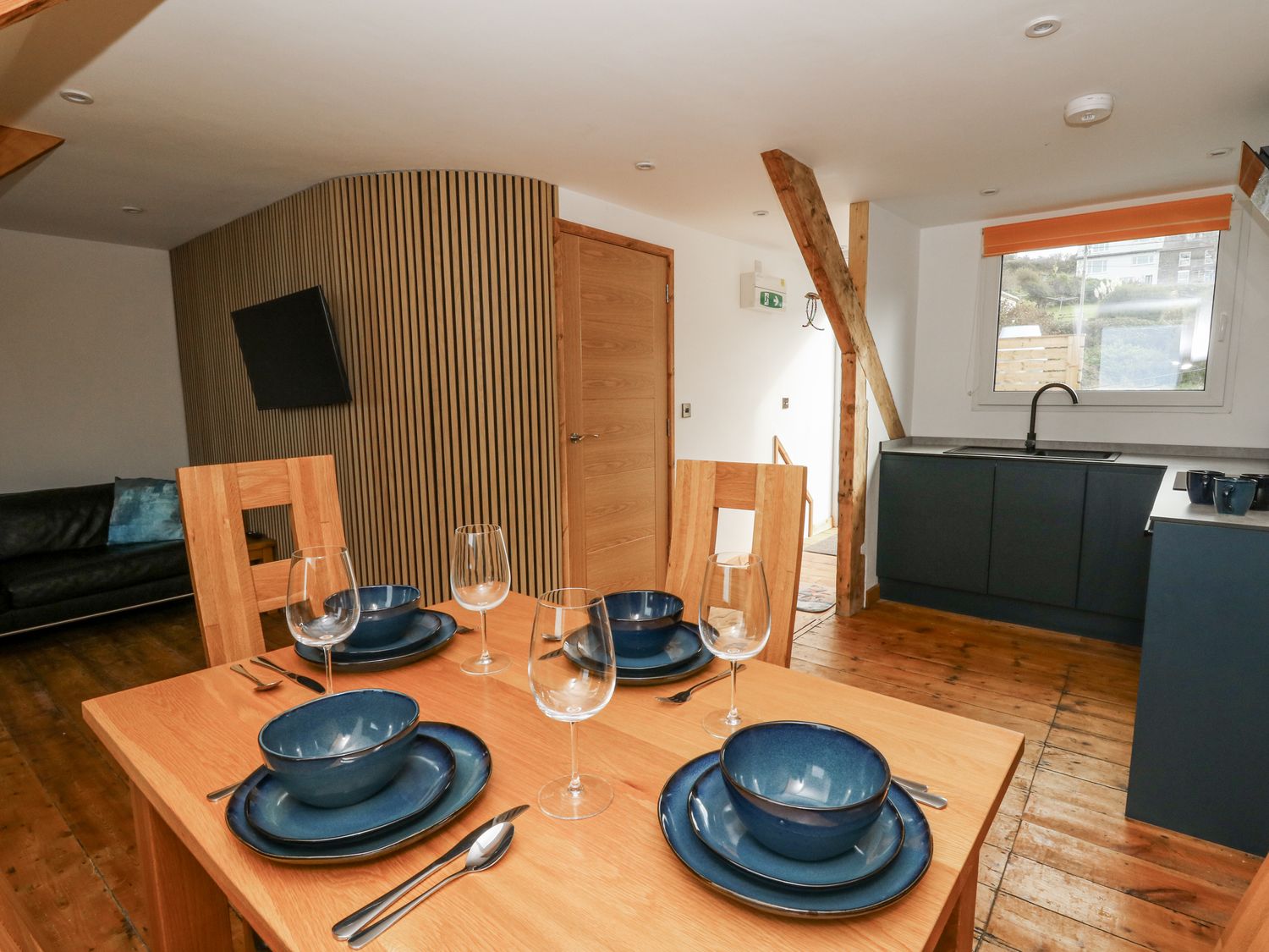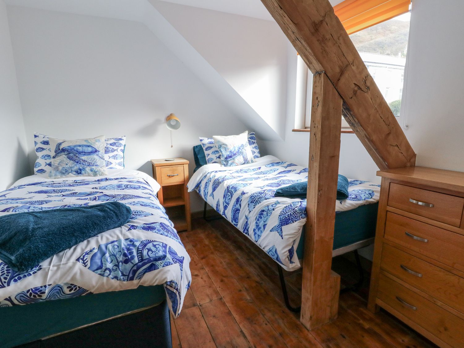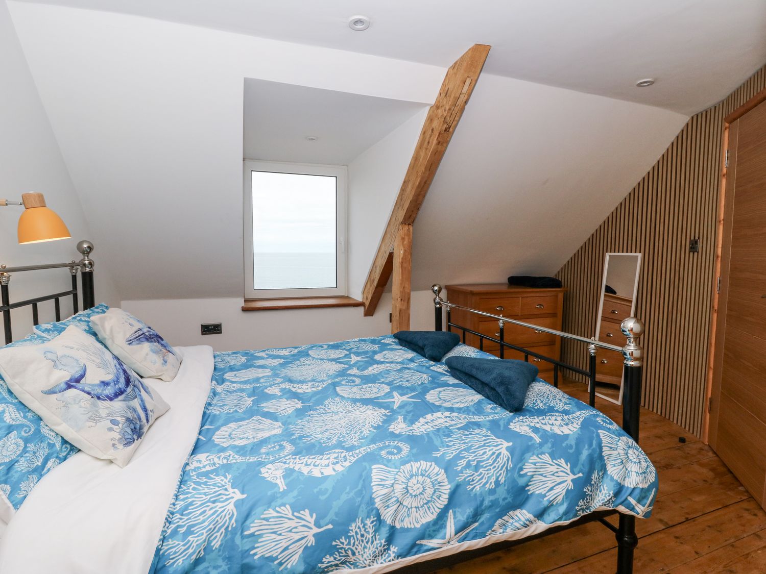 "Awel Deg, a second-floor apartment, consists of a kitchen with electric oven and hob, fridge with icebox, microwave, and dishwasher, a dining area with seating for four guests, and a sitting area with sea views.The bedrooms consist of a king-size with en-suite bathroom and twin serviced by a shower room with walk-in shower, basin and WC. WiFi, fuel, power, bed linen, and towels are included in the rent. Outside, there is an enclosed roof garden with patio and furniture and parking for one car. Two well-behaved dogs welcome. Sorry, no smoking. Within 0.1 miles you will find a shop, pub and beach. However, you decide to spend your days here in Ceredigion, guarantee a memorable getaway with a stay at Awel Deg. Note: There are twenty metal steps to the garden. Note: This property has a Good Housekeeping bond of 250 GBP"