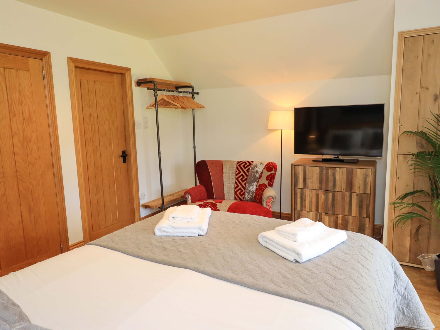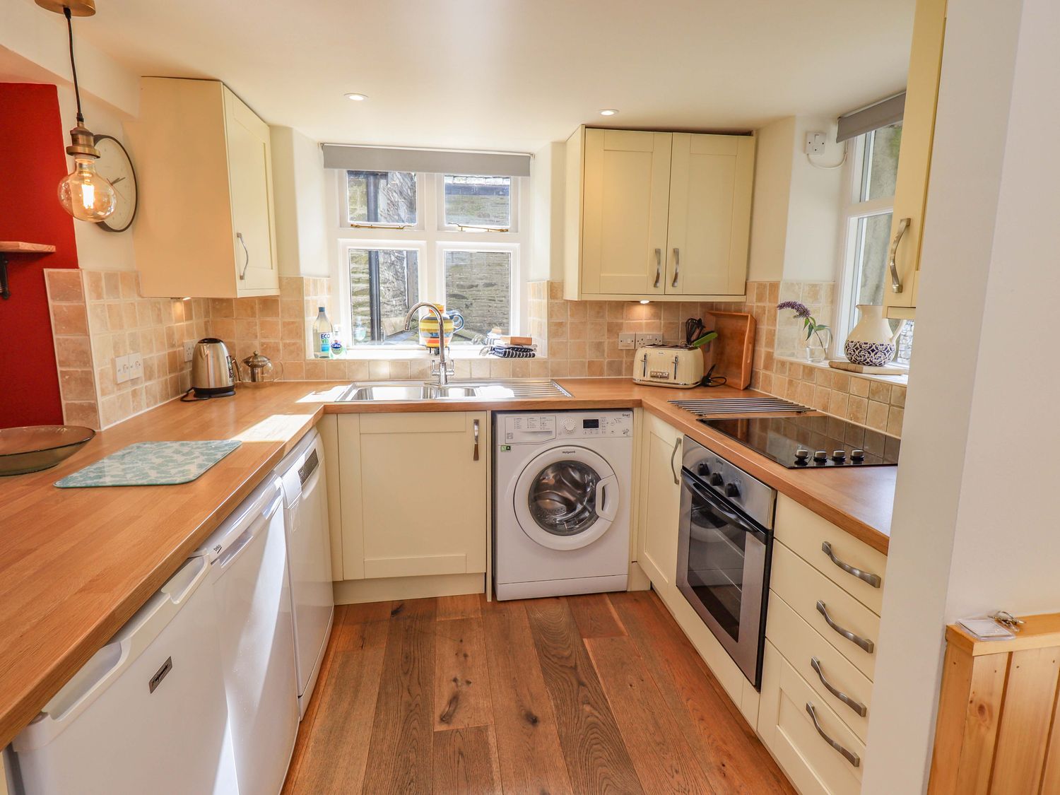 "Quality Assessment completed November 2024 - Grading Retained. 2 bedrooms: 1 x king size with shower room, 1 x double room, family bathroom with bath, shower over, basin and WC. Sitting room. Dining area. Kitchen. Electric heating. Wood burning stove (logs aren't provided). Electric oven with electric hob, fridge, freezer, dishwasher, washing machine. Smart TV in living room. TV in Master Bedroom (not Smart TV). WiFi. Bed linen and towels inc. in rent. One dog welcome. Private parking for one vehicle with 1 additional space for visitors to Birkhead Cottages (on a first come first served basis). Garden area with patio furniture, the garden is detached from the property and located adjacent to Boxwood parking space just a few steps along village road. Please note: If you have any mobility issues the property does have stairs, 2 showers one is a walk-in shower, and the other is a shower over bath. Sorry, no smoking."