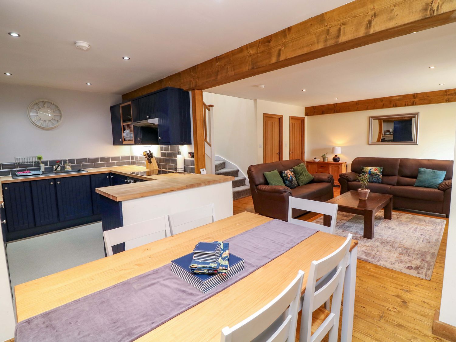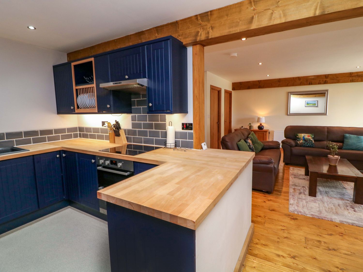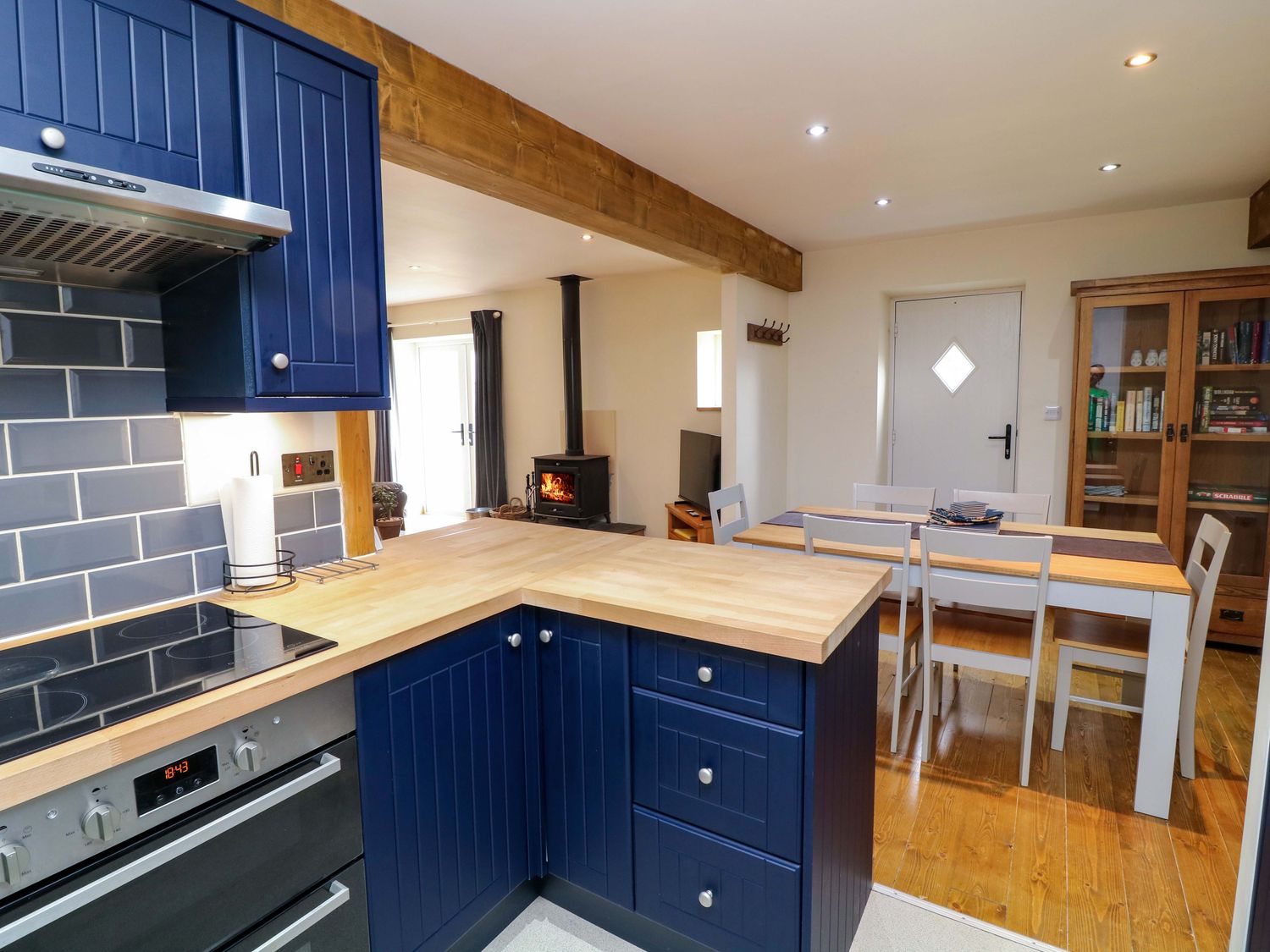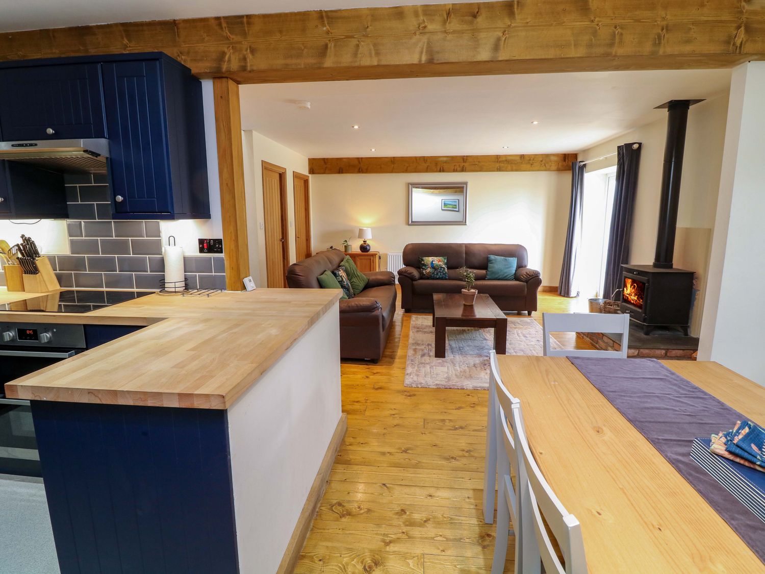 "Mylo's Cottage consists of an open-plan living space with a kitchen housing an electric oven and hob, microwave, fridge/freezer and dishwasher, a dining area, and a sitting area with a Smart TV and woodburning stove, along with a utility with a washer/dryer. The bedrooms consist of a super-king-size (zip/link, can be twin on request), a king-size with en-suite walk-in shower, basin and WC, and a bunk, along with a bathroom with corner bath, walk-in shower, basin and WC, and a cloakroom with basin and WC. Outside, there is a non-enclosed front garden with lawn, and off-road private parking for 2 cars. Within 1.9 miles, you will find a shop, and within 3.8 miles, a pub. WiFi, fuel, power, bed linen and towels are all included in the price, as well as a starter pack for the woodburning stove. Sorry, no pets and no smoking. Have a fantastic holiday at Mylo's Cottage."