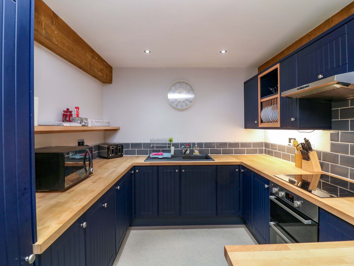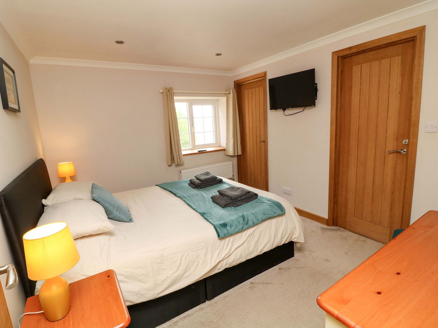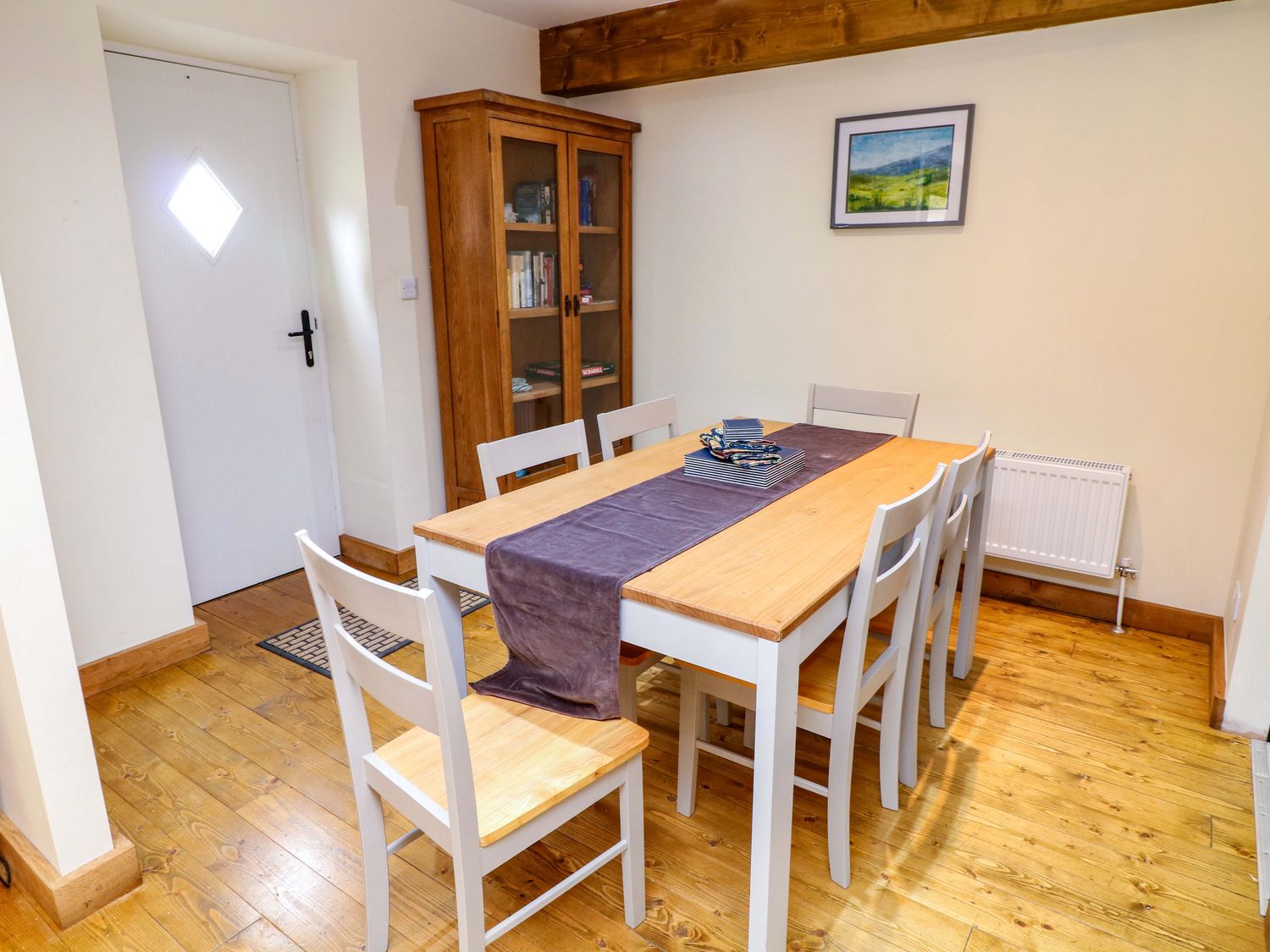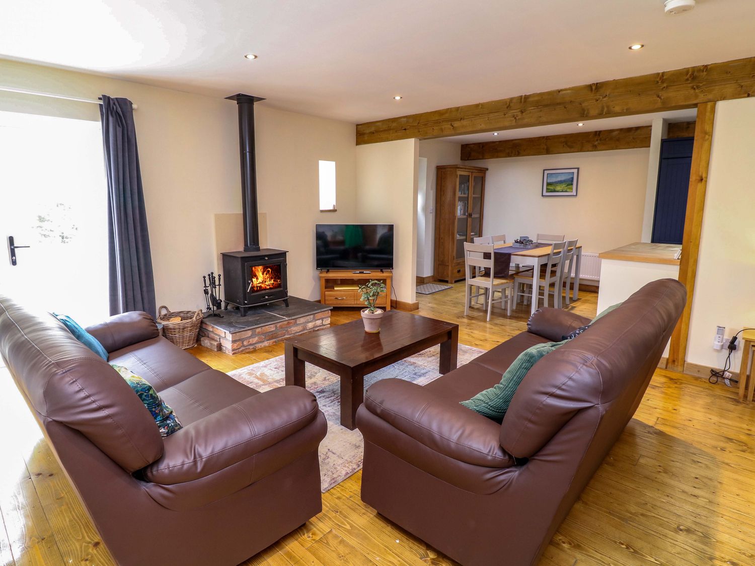 "Mylo's Cottage consists of an open-plan living space with a kitchen housing an electric oven and hob, microwave, fridge/freezer and dishwasher, a dining area, and a sitting area with a Smart TV and woodburning stove, along with a utility with a washer/dryer. The bedrooms consist of a super-king-size (zip/link, can be twin on request), a king-size with en-suite walk-in shower, basin and WC, and a bunk, along with a bathroom with corner bath, walk-in shower, basin and WC, and a cloakroom with basin and WC. Outside, there is a non-enclosed front garden with lawn, and off-road private parking for 2 cars. Within 1.9 miles, you will find a shop, and within 3.8 miles, a pub. WiFi, fuel, power, bed linen and towels are all included in the price, as well as a starter pack for the woodburning stove. Sorry, no pets and no smoking. Have a fantastic holiday at Mylo's Cottage."