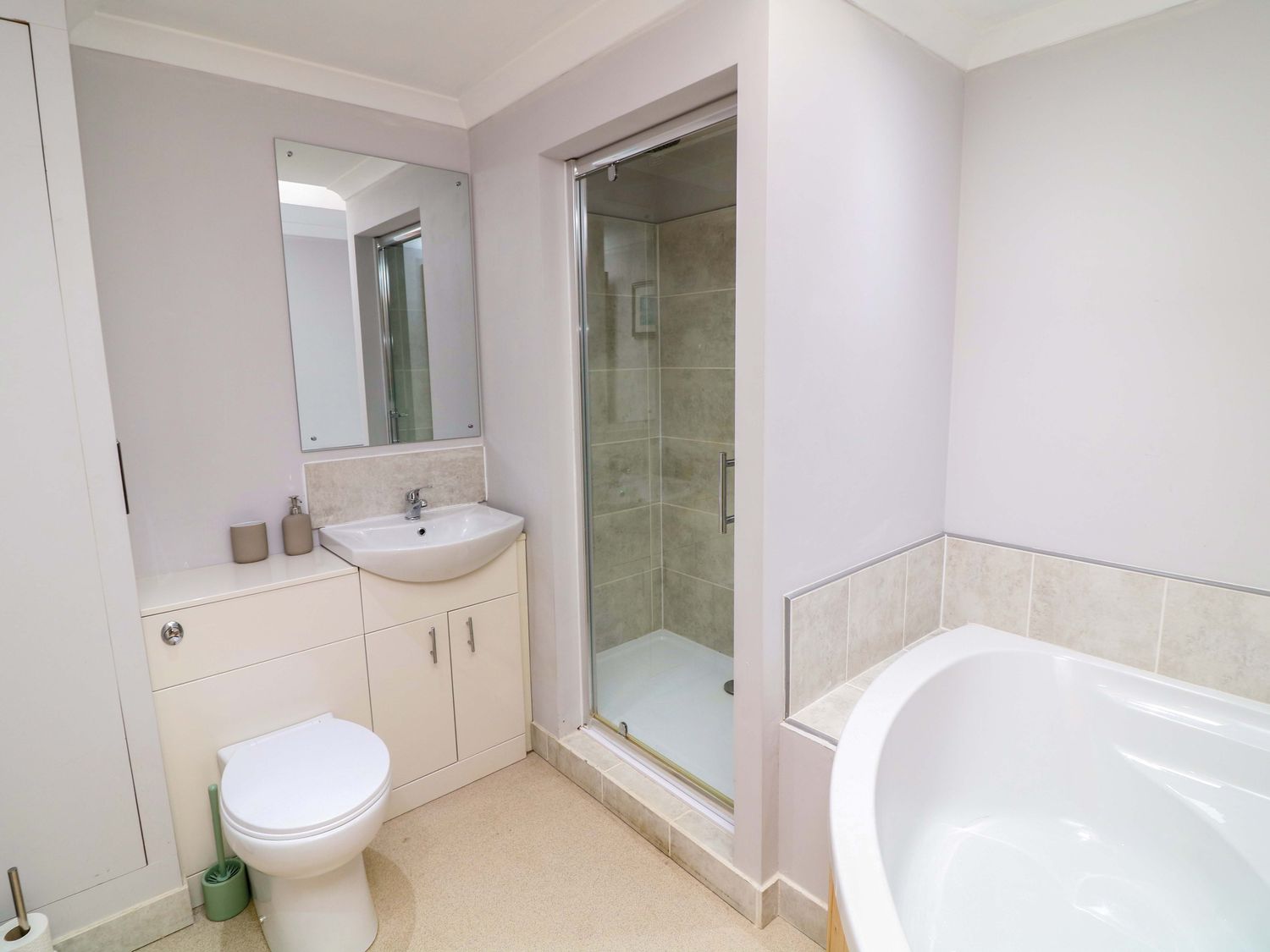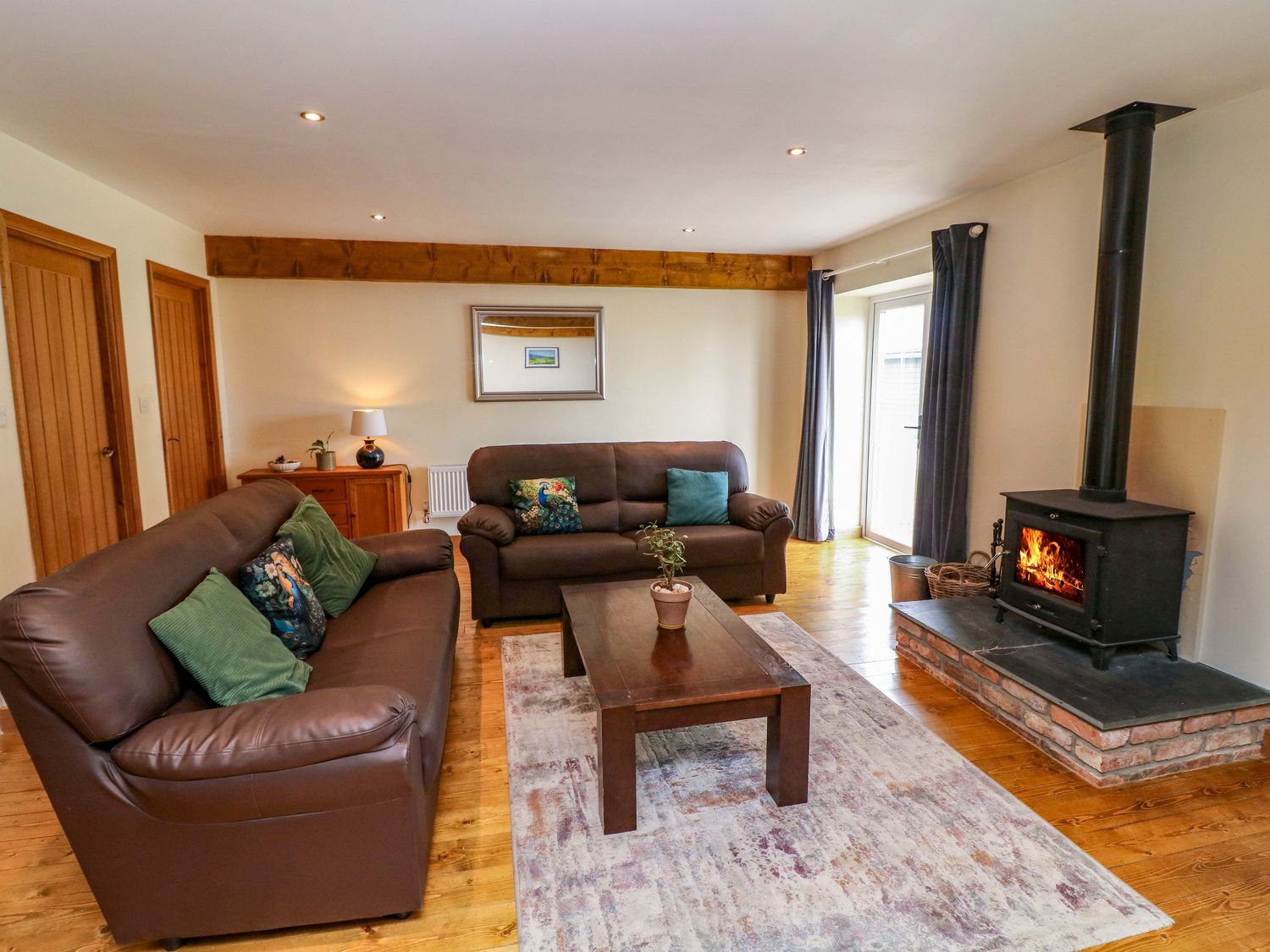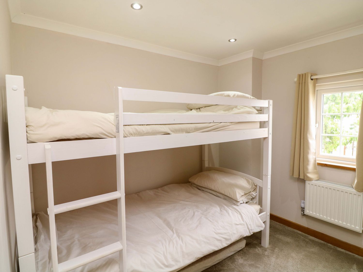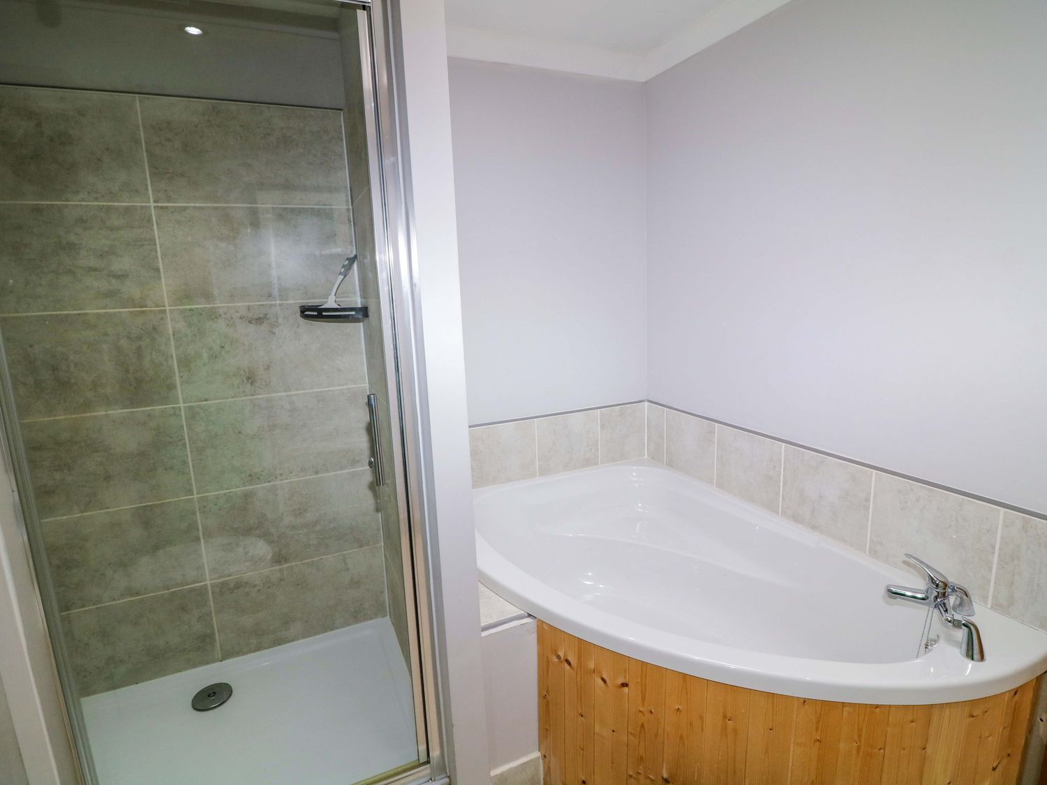 "Mylo's Cottage consists of an open-plan living space with a kitchen housing an electric oven and hob, microwave, fridge/freezer and dishwasher, a dining area, and a sitting area with a Smart TV and woodburning stove, along with a utility with a washer/dryer. The bedrooms consist of a super-king-size (zip/link, can be twin on request), a king-size with en-suite walk-in shower, basin and WC, and a bunk, along with a bathroom with corner bath, walk-in shower, basin and WC, and a cloakroom with basin and WC. Outside, there is a non-enclosed front garden with lawn, and off-road private parking for 2 cars. Within 1.9 miles, you will find a shop, and within 3.8 miles, a pub. WiFi, fuel, power, bed linen and towels are all included in the price, as well as a starter pack for the woodburning stove. Sorry, no pets and no smoking. Have a fantastic holiday at Mylo's Cottage."