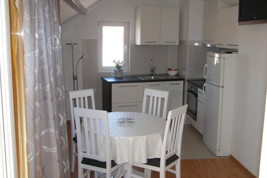 **BASIC FEATURES :** Apartment type: A1. 4 bed/s for adults. Apartment capacity (adults): (4). Category of apartment is 3 stars. Apartment size is 50 m2. The apartment is on the second floor. Access for the disabled is not enabled. Number of bedrooms in the apartment: 2. Number of bathrooms in the apartment: 1. Number of balconies in the apartment: 1. **BEDROOM (1):** Flooring: laminate. In the bedroom is double bed. Bedding is available to guests. **BEDROOM (2):** Flooring: laminate. In the bedroom is two single beds. Bedding is available to guests. **LIVING ROOMS :** kitchen and dining room in the same room. Flooring in the apartment: tiles. **EQUIPMENT:** air conditioning in the living rooms (included in price), TV set, SAT TV, smoking not allowed inside the apartment . **KITCHEN EQUIPMENT:** table and chairs, kitchen sink, hob with four cookers, electric hob, oven, refrigerator, freezer. **INTERNET:** WIFI gratis. **VIEW FROM THE APARTMENT:** sea view. **BATHROOM (1):** Bathroom size is: 4 m2. Equipment in the bathroom: shower, toilet, washing machine, tiles, bath towels. **BALCONY/TERRACE (1):** Size of balcony/teracce of the apartment is 3 m2. Features and equipment of the balcony/terrace seating set, orientation sea side, partly sea view. **PETS :** Pets not allowed. Korcula is an island in the central Dalmatian archipelago; the most populated one in Croatia although it is the sixth largest Adriatic island. Korcula, Lumbarda, Vela Luka, Raciste are major places on the coast, and Blato, Zrnovo, Smokvica, Cara and Pupnat in the interior of the island. They are all connected with the regional road and the ferry lines connect the island of Korcula with the mainland.