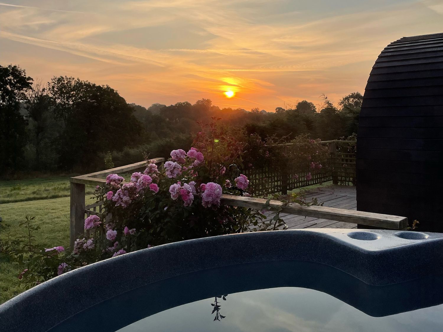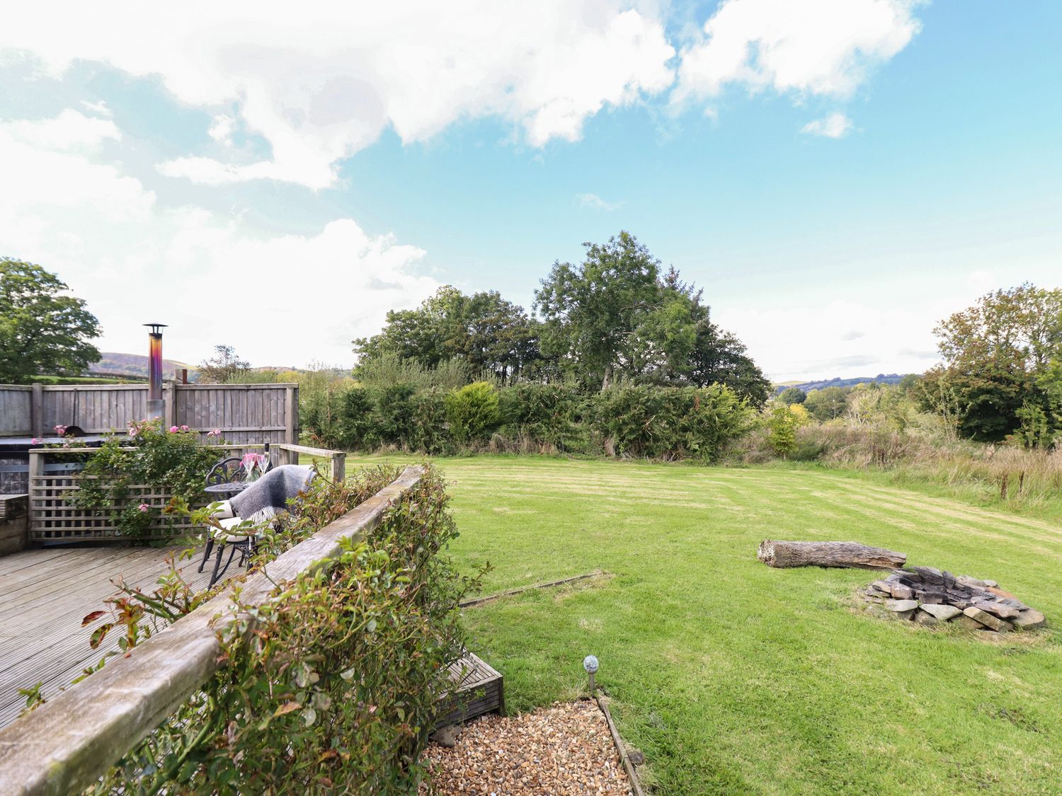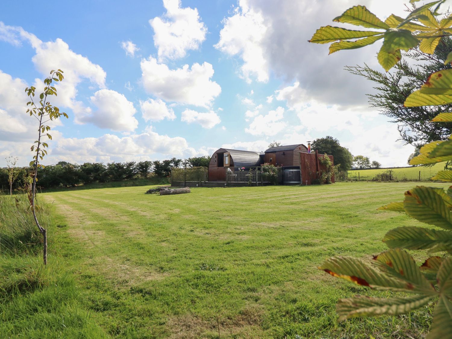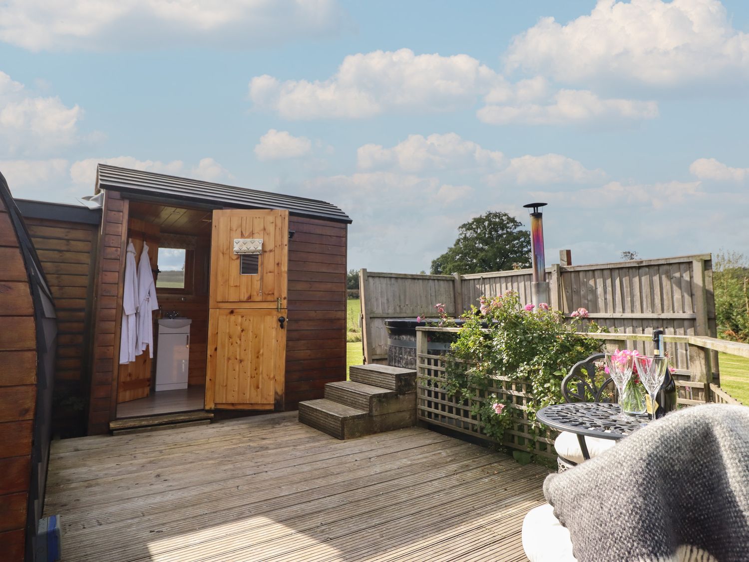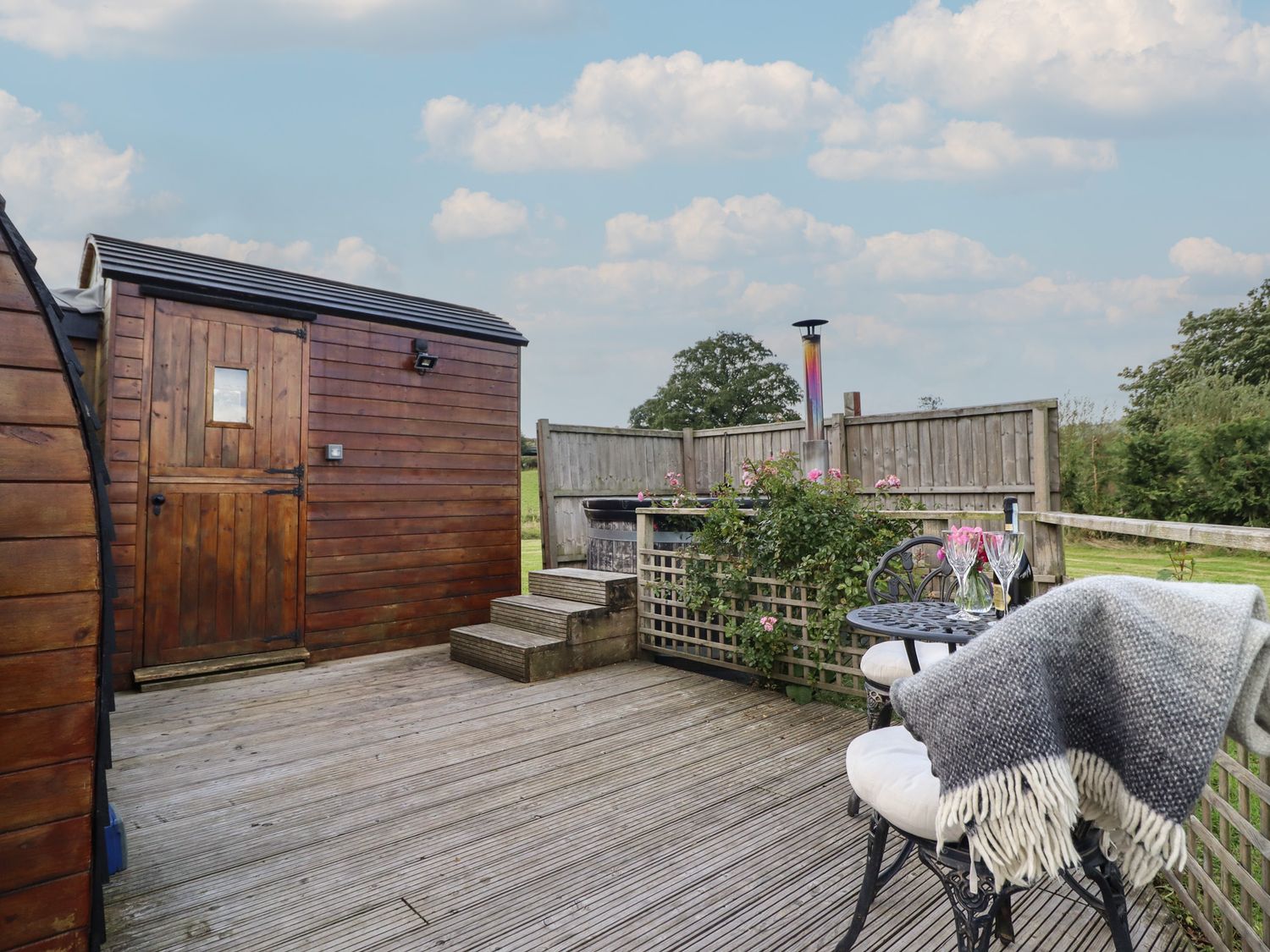 "Emden Pod at Banwy Glamping is a single-storey pod consisting of an open-plan living space with combi oven with a two-ring hob, fridge/freezer, TV, and dining seating for two people. There is a king-size bed with en-suite shower room. Outside there is a decking with an outdoor seating area and a wood-fired hot tub, as well as use of a private acre of land. Off-road parking is available. Only one well-behaved dog is welcome. You'll find a shop in 3.3 miles, pub in 3.4 miles, and lake in 1.5 miles. Fuel, power, bed linen, and power inc. in rent. Emden Pod at Banwy Glamping offers a wonderful romantic retreat to Welshpool. Note: Prior to arrival customers must become a member of Woodlands Champion Club, there is no charge for this. Please note, dogs are the only type of pet accepted at this property."