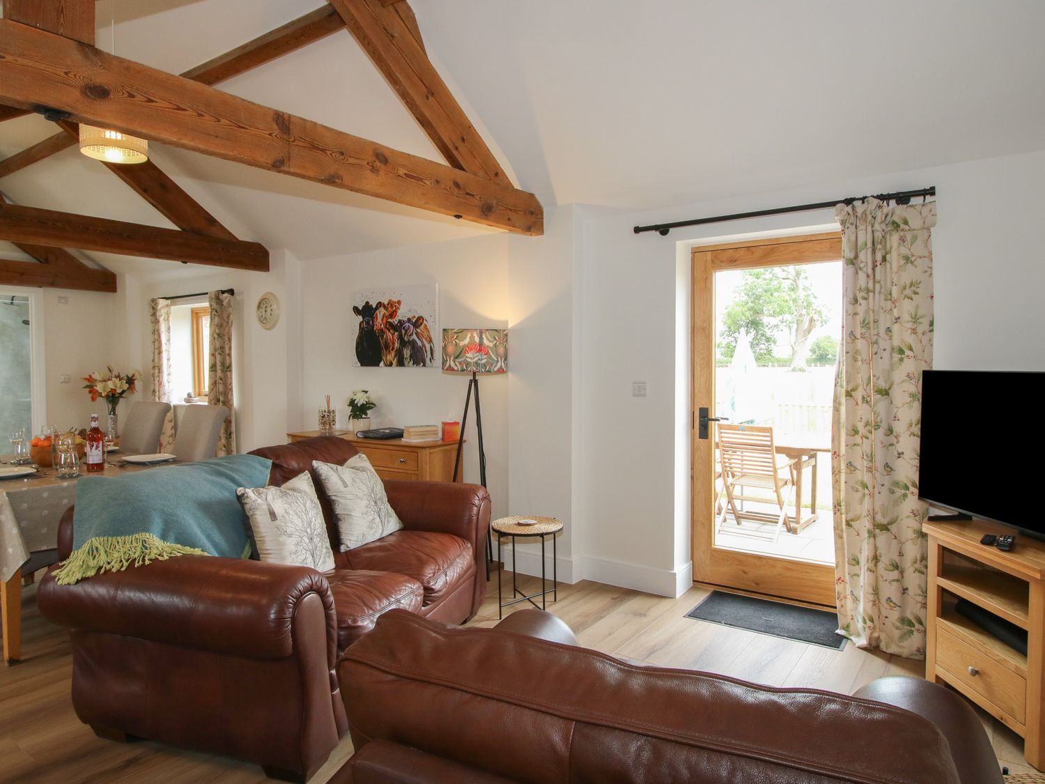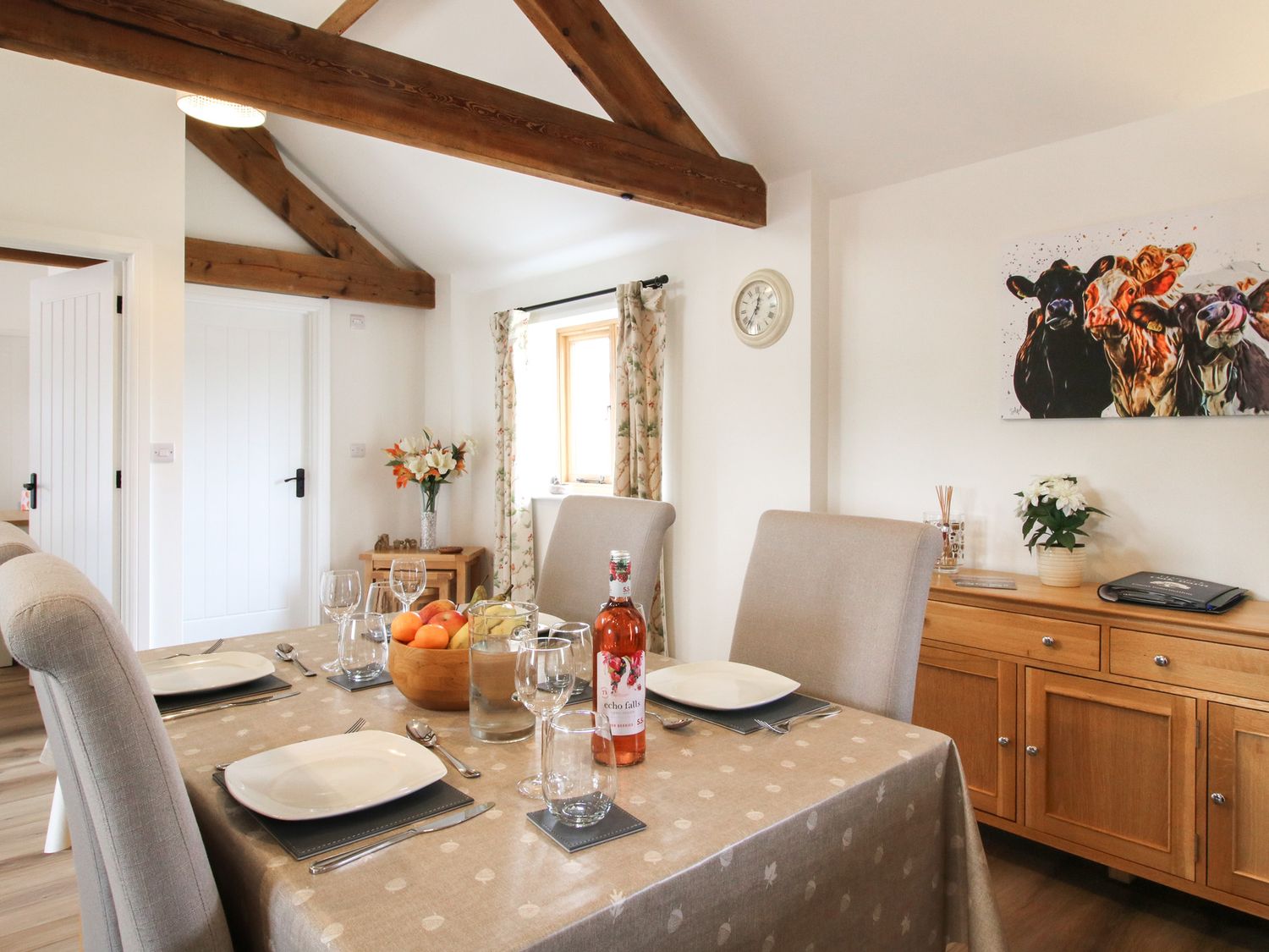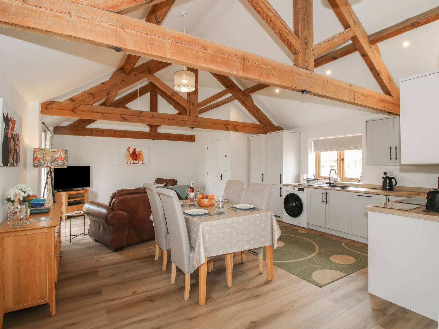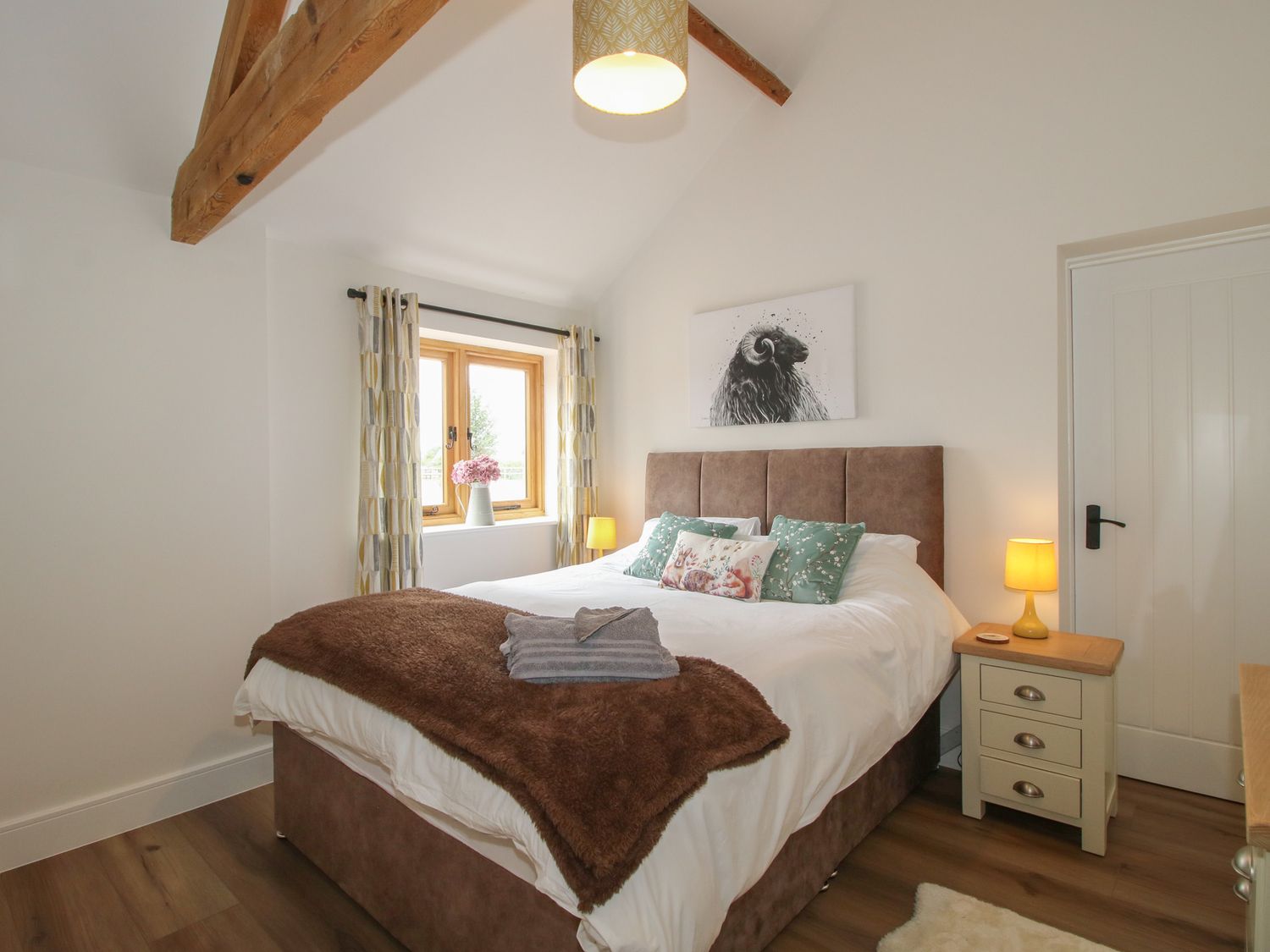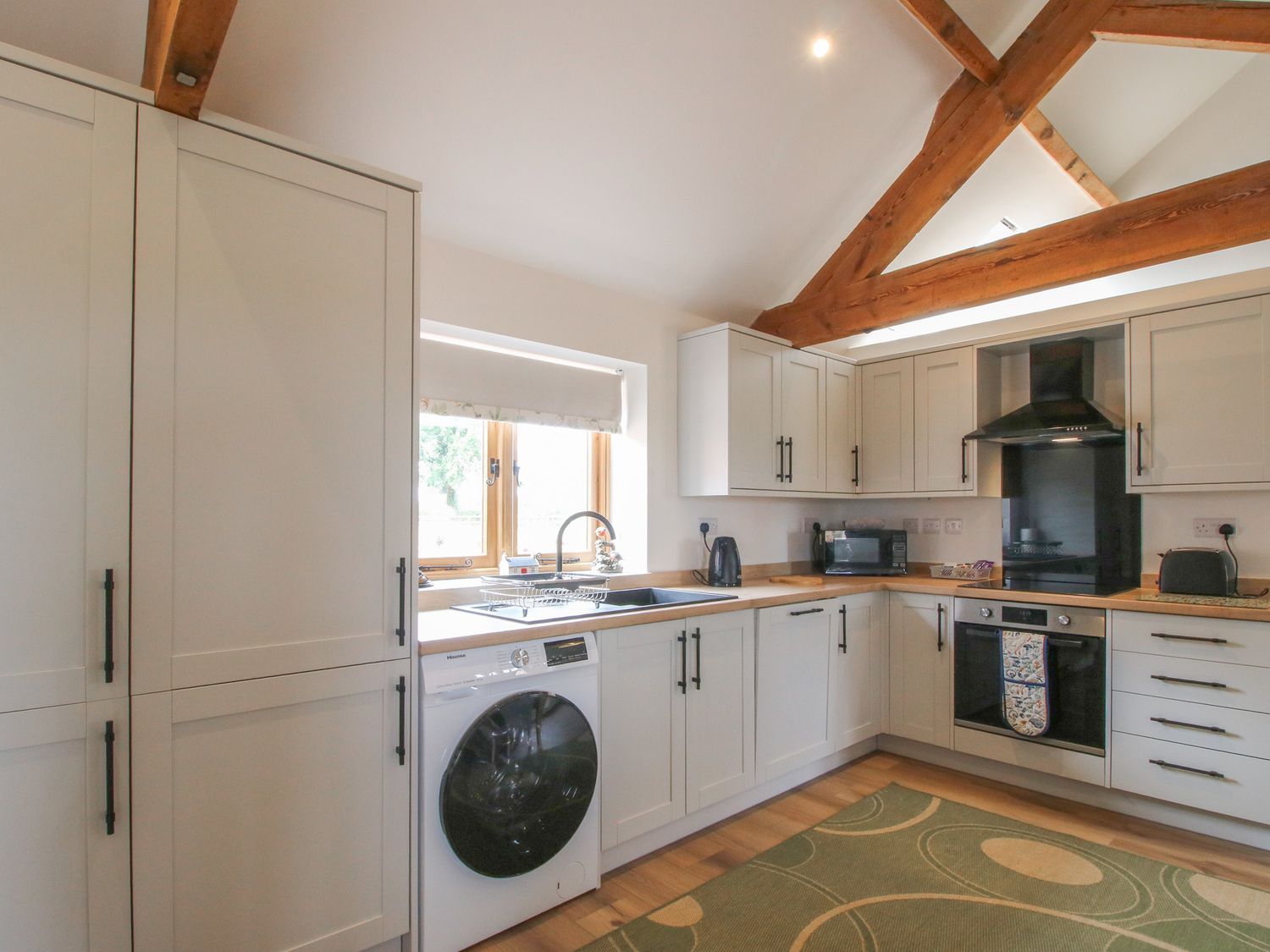 "Oak Barn, a single-storey charming holiday cottage, consists of a kitchen/diner with fridge/freezer, dishwasher, washing machine, tumble dryer, oven, hob, kettle, toaster, and dining seating, and a sitting room with TV. The bedroom is a king-size. There is a shower room with walk-in shower, basin, and WC. WiFi, fuel, power, bed linen, and towels are included in the rent. Outside, there is an enclosed rear garden with lawn, patio, barbecue, and furniture, plus access to a stone path that leads to fields and a public footpath, and ample off-road parking. Pet-friendly-2 well behaved dogs welcome. Sorry, no smoking. Bring your special someone to Oak Barn for a private retreat. There is a Good Housekeeping Bond of 150GBP"