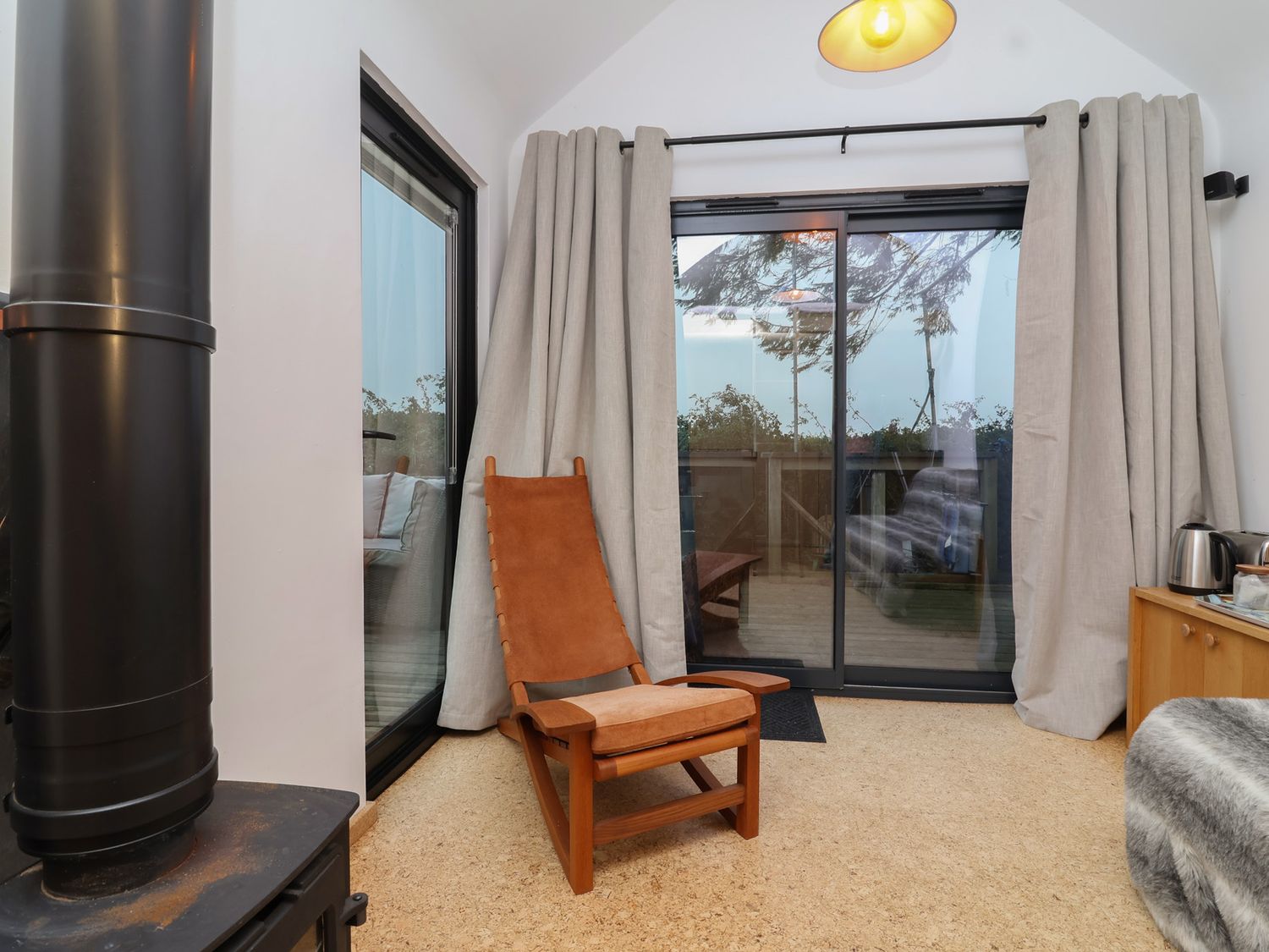 "One double bedroom. Living room with woodburning stove. Shower room with walk-in shower, basin and WC."