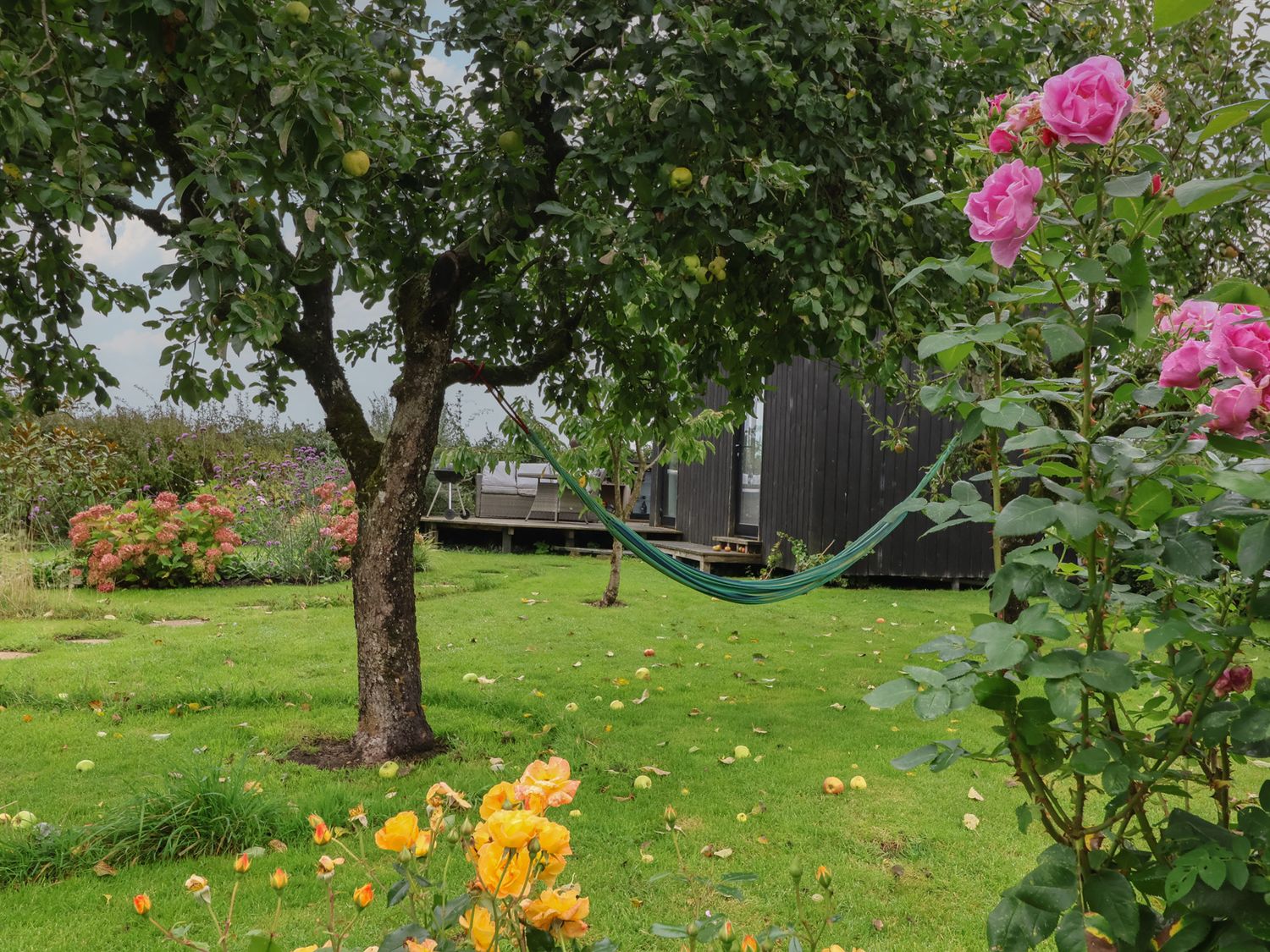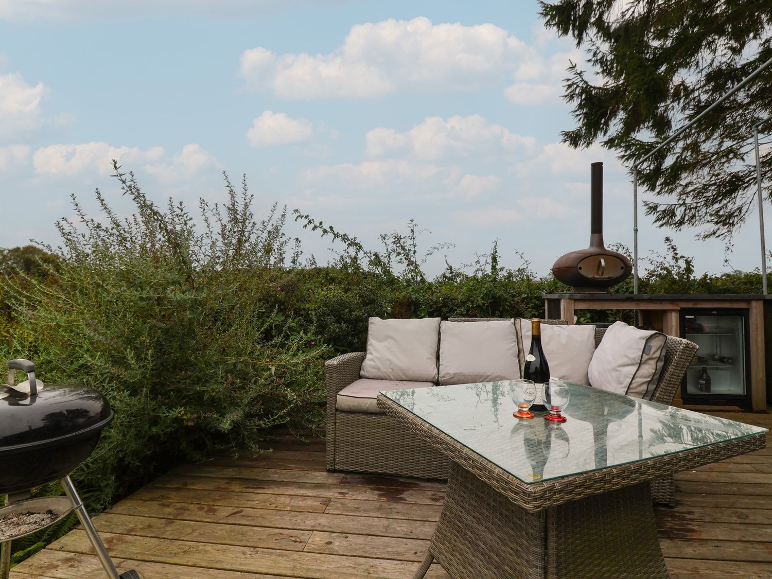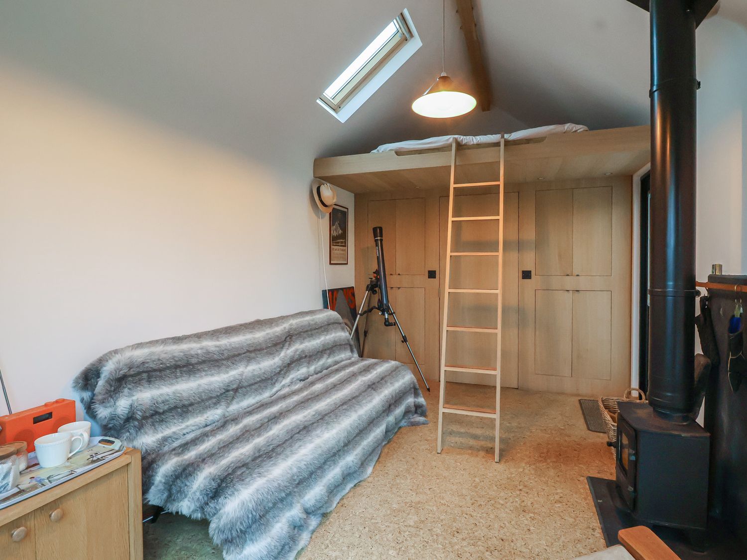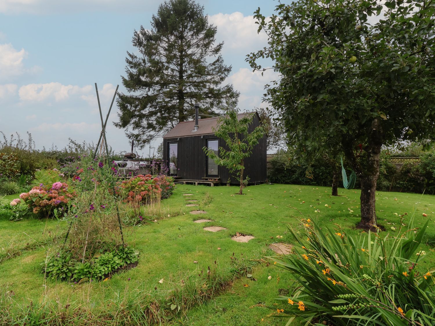"The Bothy consists of a living room with woodburning stove, a shower room with walk-in shower, basin and WC, and one double bedroom accessed via a ladder. Kitchen appliances include a, kettle, toaster and pizza oven. WiFi. Fuel, power, bed linen and towels are all included in the price. Off-road parking. Enclosed rear lawn and decking with furniture, barbecue, pizza oven and fridge. Two well-behaved pets welcome. Sorry, no smoking. Shop 1.9 miles, pub 2.1 miles. Note: This property does not have indoor cooking facilities or food/clothes storage"