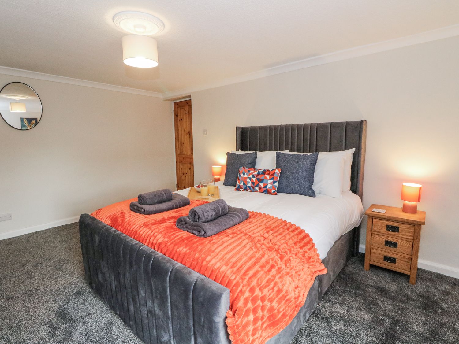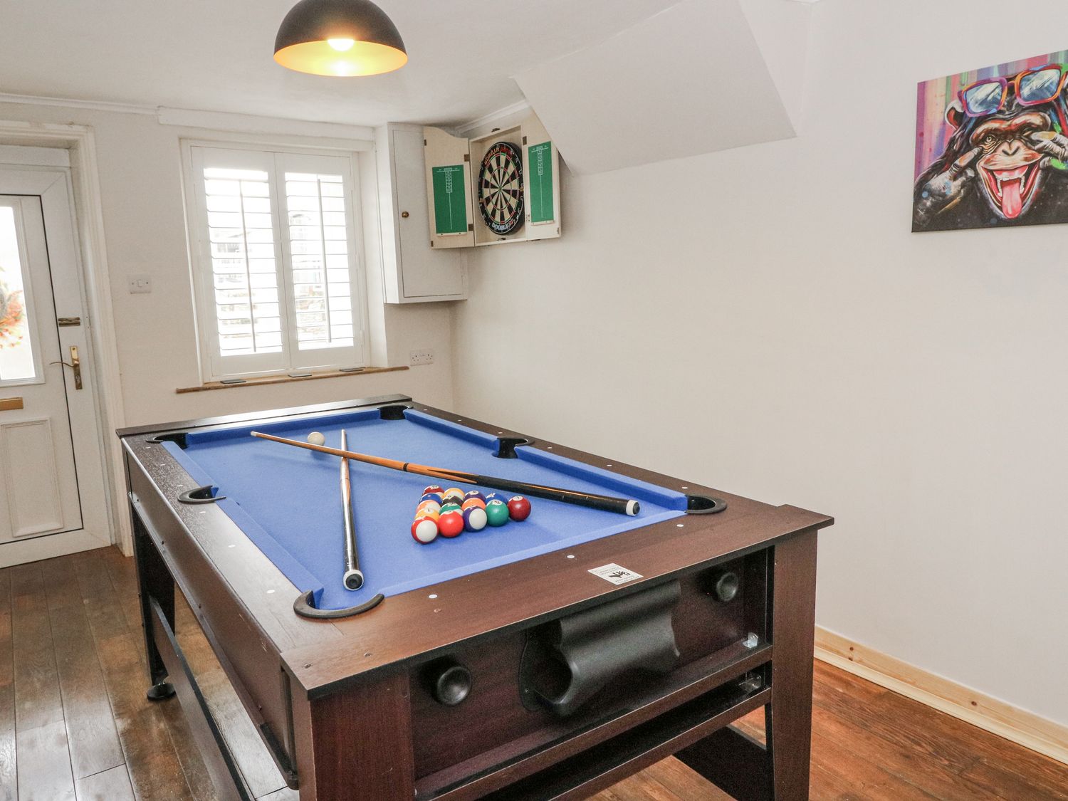 "Five bedrooms: 1 x super-king-size, 2 x king-size, 1 x double, 1 x twin. Ground-floor shower room with walk-in shower, basin and WC. Bathroom with bath, walk-in shower, basin and WC. Kitchen. Dining room. Living room with woodburning stove. Games room. First-floor snug"