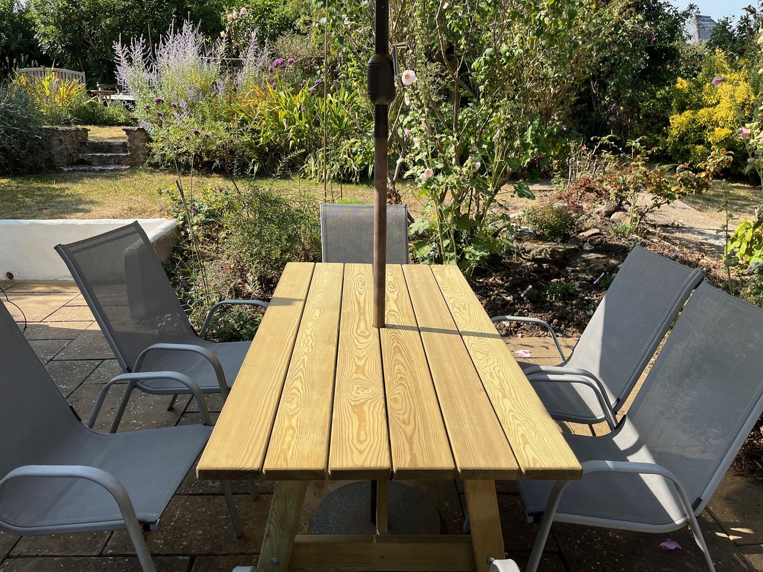 "All ground floor. Three bedrooms: 1x King-size room, 1x Double room with en-suite shower, basin and WC, 1 x twin room. Family bathroom with bath, shower over, basin and WC. Cloakroom with basin and WC. Large open-plan kitchen / dining room / sitting room. Second sitting room with TV."