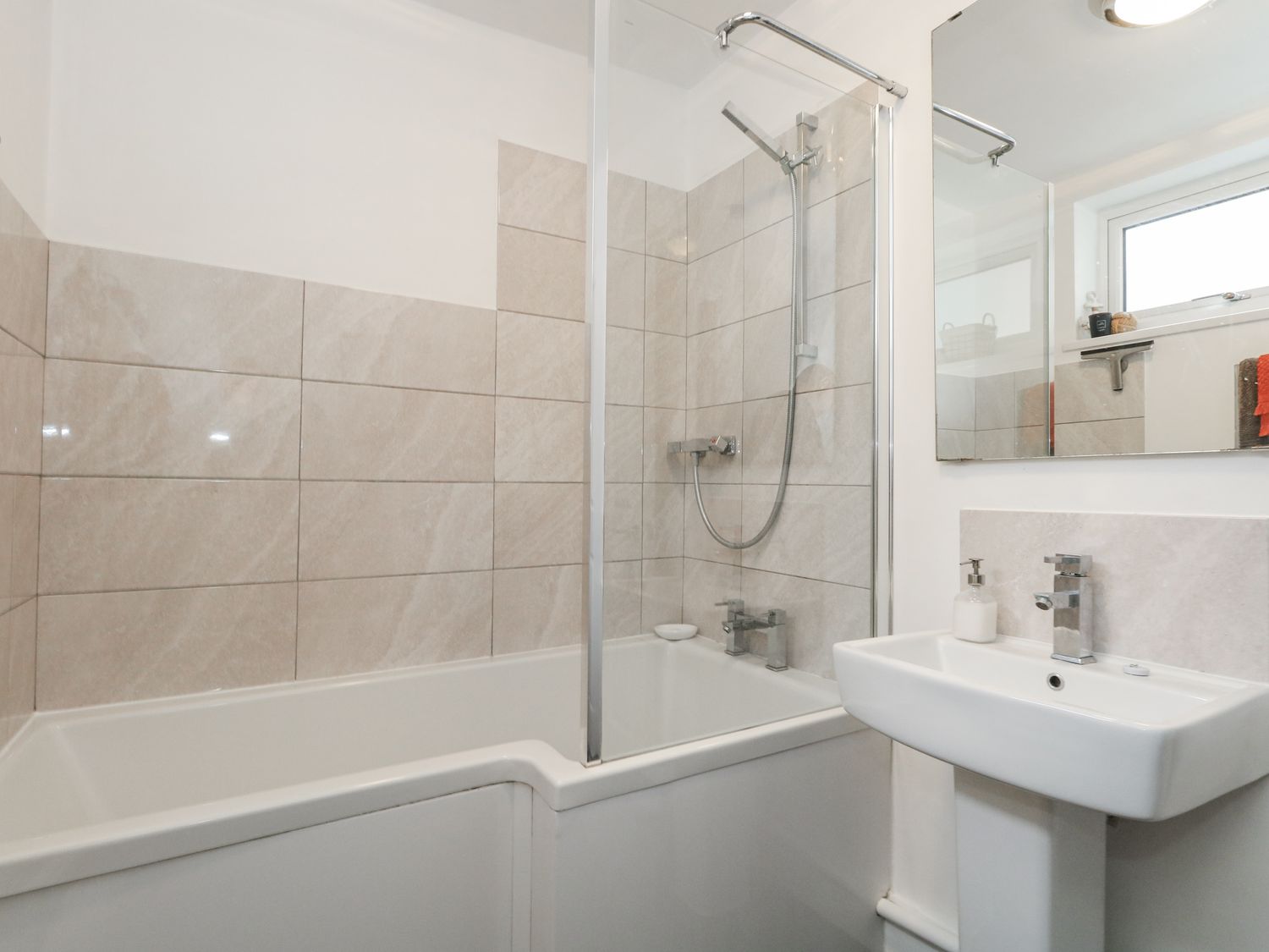 "Two double bedrooms. Ground-floor bathroom with bath and shower over, basin and WC. Open-plan living space with kitchen, dining area and sitting area"