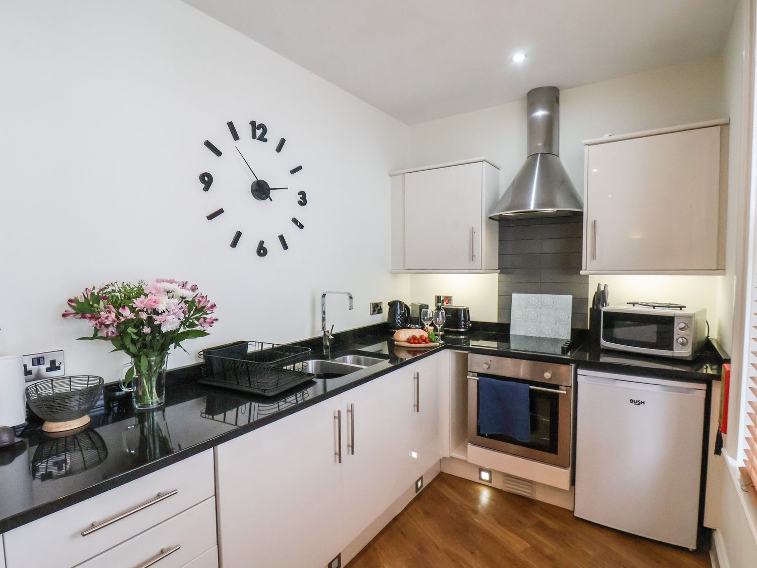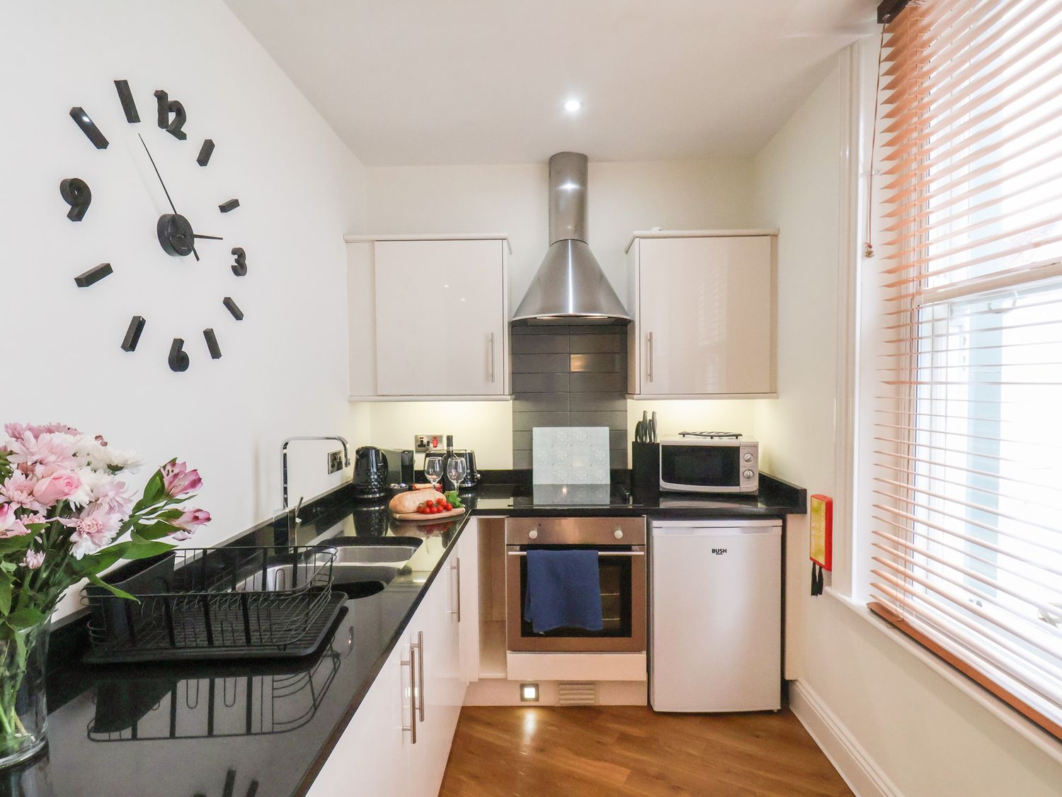 "Jolly Roger, a first-floor apartment, consists of an open-plan living space with oven, hob, microwave, fridge with icebox, washing machine, tumble dryer, kettle, toaster, dining seating, and TV. The bedroom is a double. There is a bathroom with bath, shower over, basin, and WC. You'll find a shop and pub in 0.1 miles, and a beach in 0.2 miles. WiFi, fuel, power, bed linen, and towels are included in the rent. This property has a good house keeping bond of -ú250. Sorry, no pets and no smoking. Your journey to North Yorkshire is guaranteed to be one to remember with a stay at Jolly Roger."