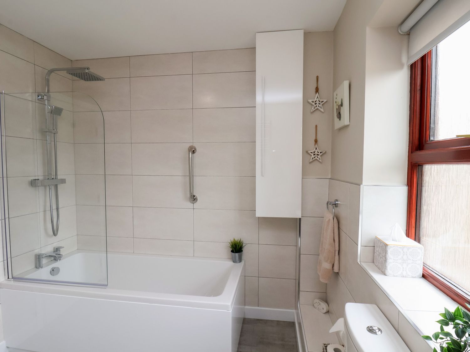 "Three well appointed bedrooms: 1 x king-size double. Balcony with furniture, 1 x twin, 1 x adult bunks. Recently refurbished modern family Bathroom with bath, shower over, basin and WC. Ground floor WC with hand basin. Newly fitted contemporary Kitchen with dining area. Sitting room."