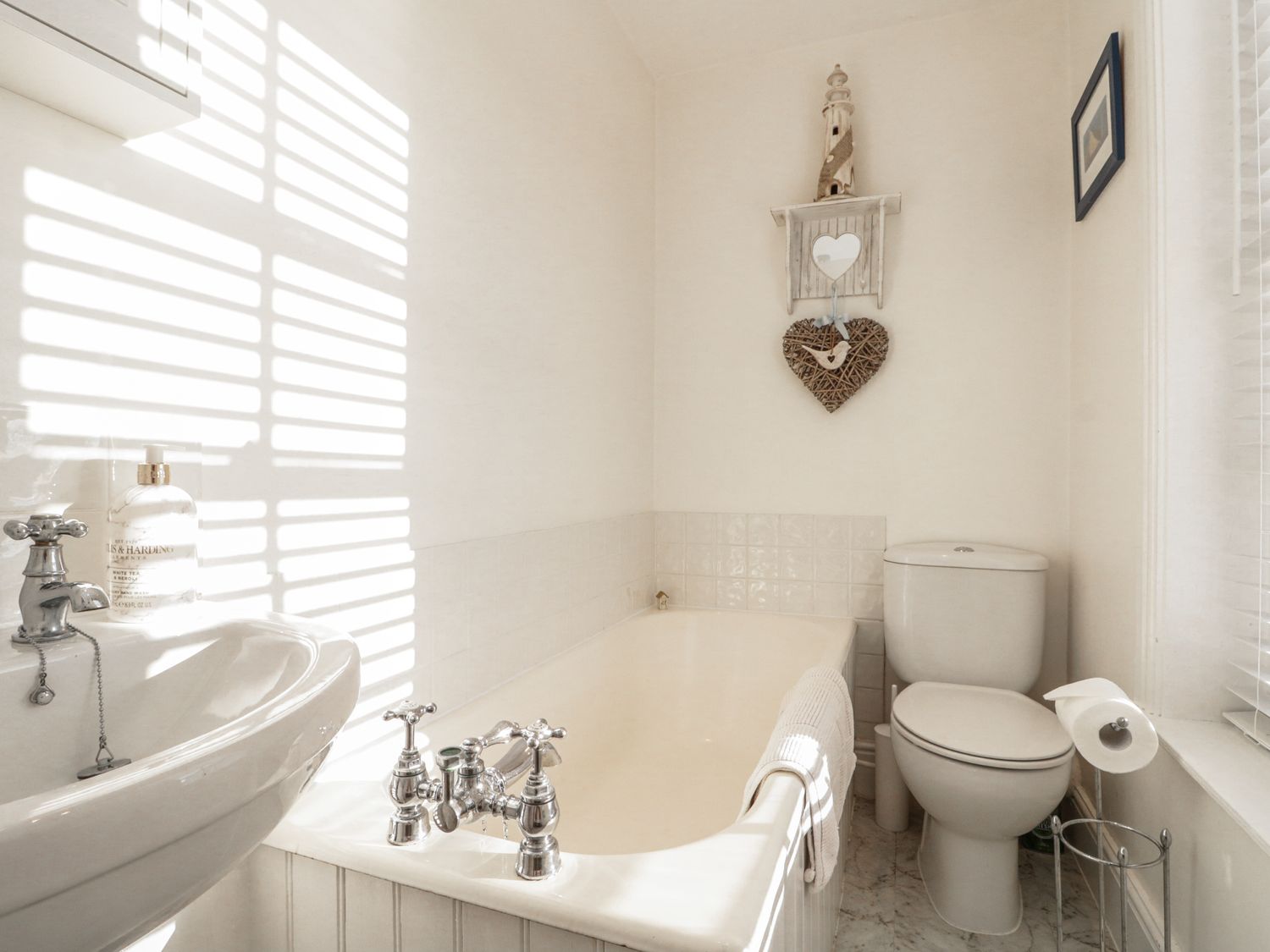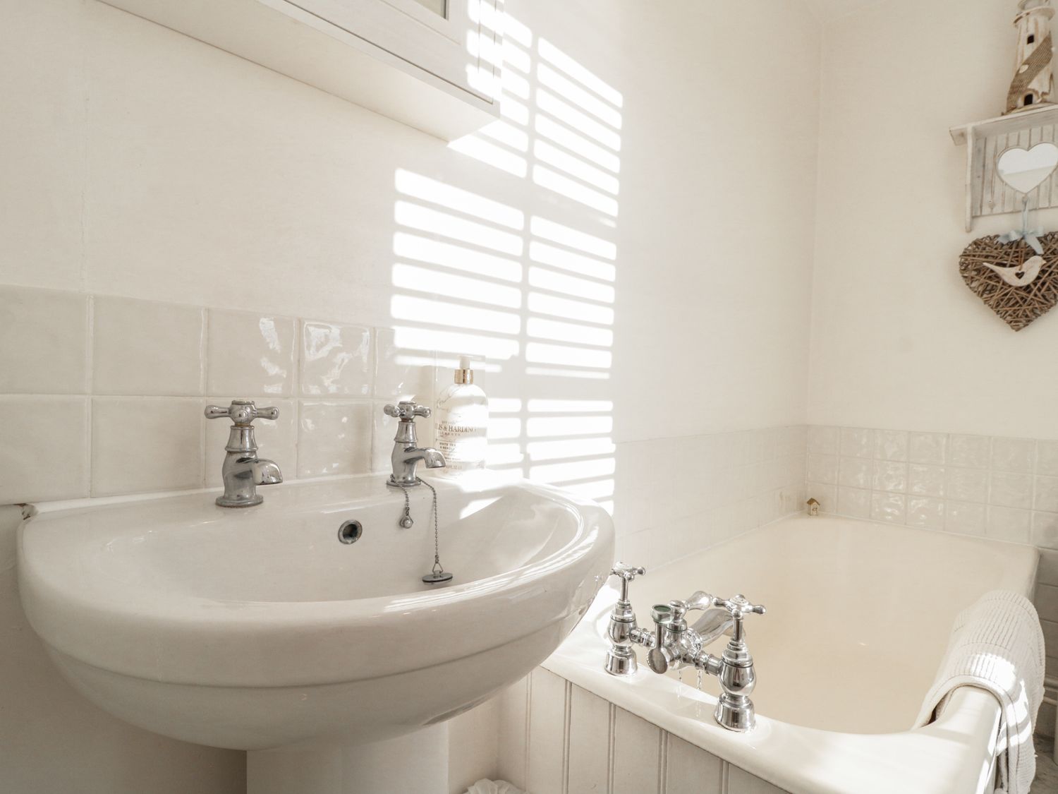 "Note: This property accepts max. 4 adults and 2 children. Three bedrooms: 1 x four poster double, 1 x ground floor double and 1 x twin. 1 x en-suite shower includes basin and WC, 1 x en-suite shower closet only. Main bathroom includes bath, basin and WC. Kitchen with conservatory-style dining area. Sitting room with wood burning stove."