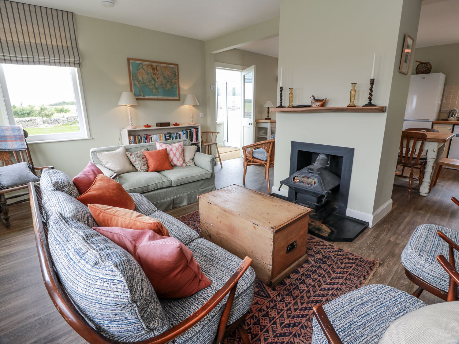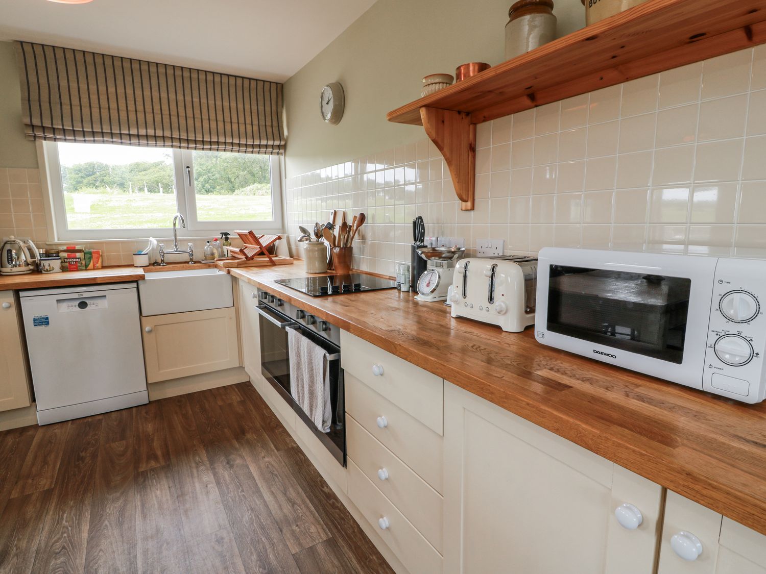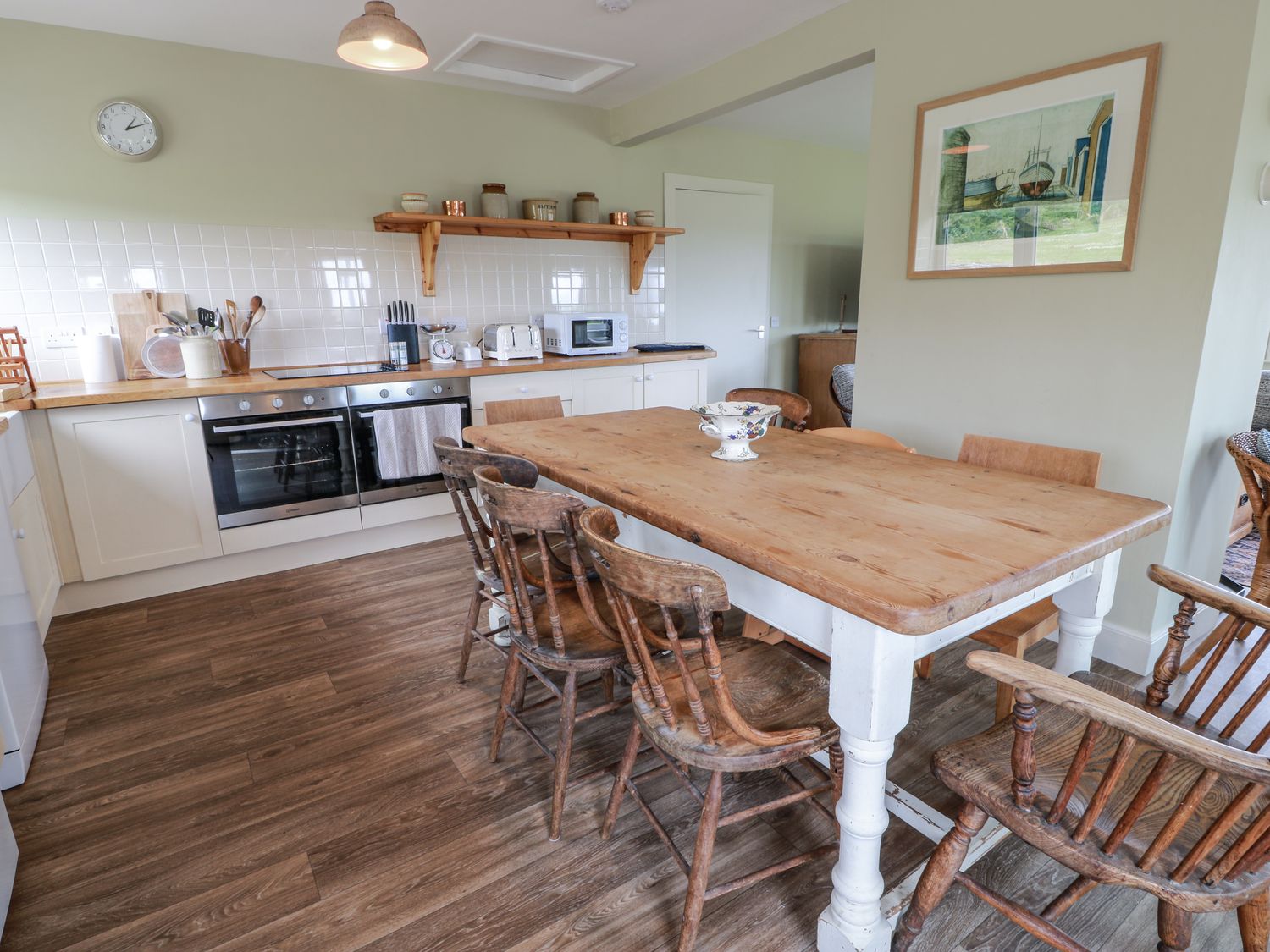 "The Dairy is a single-storey cottage, consisting of a kitchen with two electric ovens, electric hob, microwave, two fridge/freezers, washing machine, tumble dryer, toaster, kettle, a dining area and a sitting area with woodburning stove and TV. There are three bedrooms: two doubles and a twin, serviced by a bathroom with bath, handheld shower, basin, and WC, along with a separate shower room with walk-in shower, basin, heated towel rail, and WC. Outside, there is off-road parking for two cars and a non-enclosed garden with lawn, gravel area, and picnic bench. Fuel, power, bed linen, towels and WiFi included in rent. You'll find a shop within 2.3 miles, a pub within 2.5 miles, and a beach within 1.3 miles. Soak in the stunning countryside views at The Dairy. Good Housekeeping Bond 400GBP"