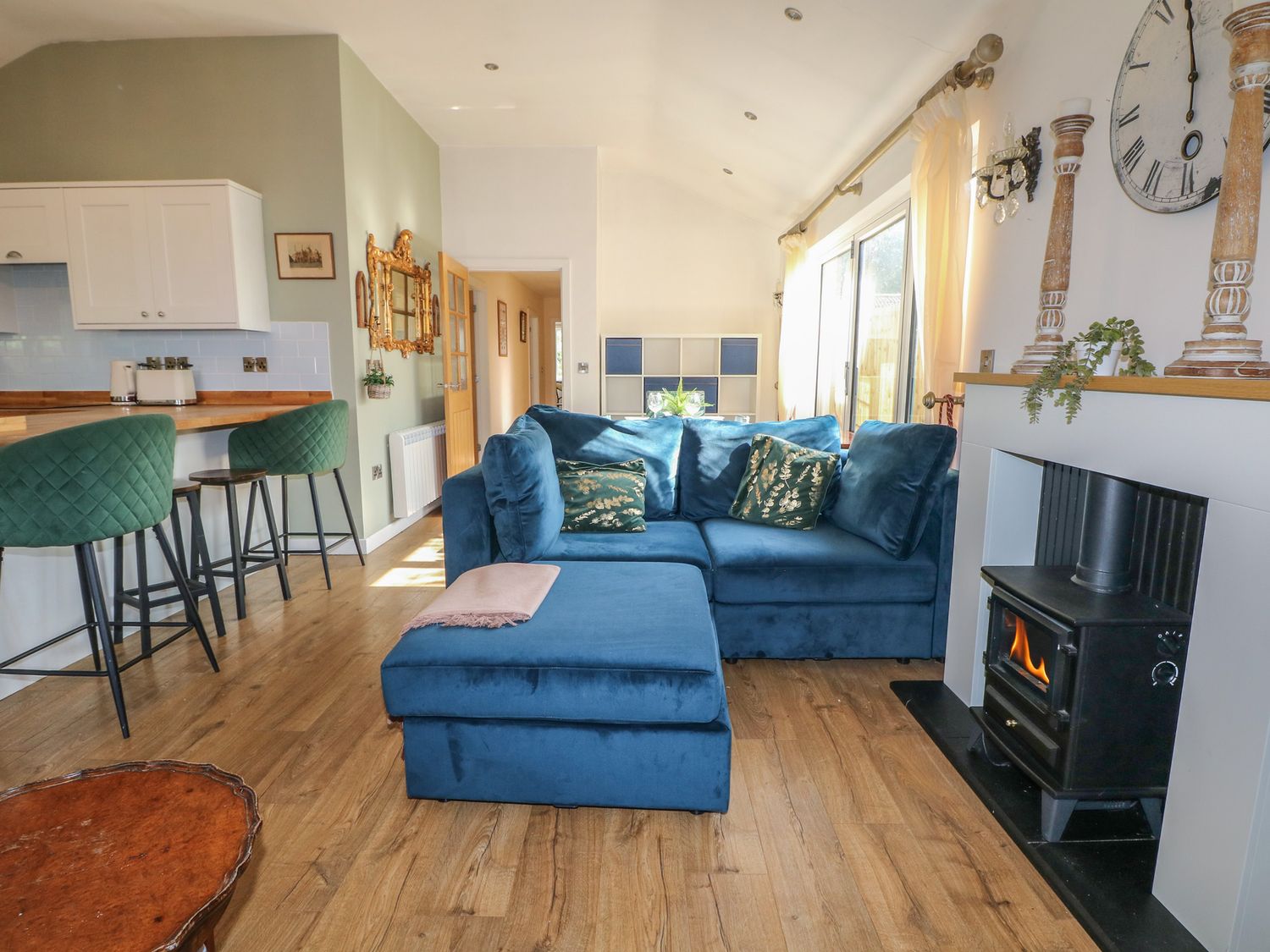 "Single-storey. Three bedrooms: 1 x king-size with TV, sofa and en-suite with walk-in shower, basin, and heated towel rail and WC, 1 x double, 1 x single. Bathroom with bath, walk-in shower, shower over, basin, heated towel rail, WC. Utility. Open-plan living space with kitchen/diner and sitting area with woodburning stove"