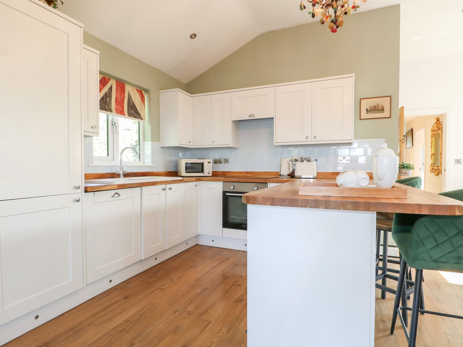 "El-Nido, a single-storey lodge, consists of a kitchen/diner with electric oven, electric hob, microwave, fridge/freezer, dishwasher, kettle, toaster, breakfast bar, and dining seating for six, a utility, and a sitting room with sofa, corner sofa, and woodburning stove, and a Smart TV. The bedrooms consist of a king-size with en-suite, double, and single. There is a bathroom with bath, shower over, walk-in shower, basin, and heated towel rail, and WC. WiFi, fuel, power, bed linen, and towels are included in the rent. Outside, there is an enclosed rear garden patio with furniture. One well-behaved pet welcome. Sorry, no smoking. All of this and so much more with a stay at the welcoming El-Nido. Note: This property has a Good Housekeeping Bond of 250GBP"