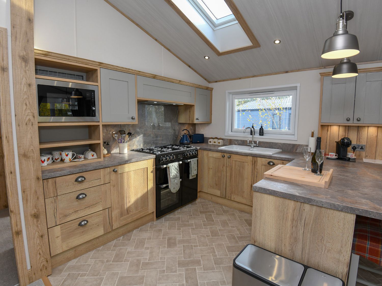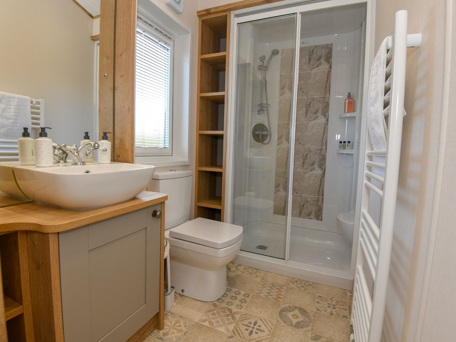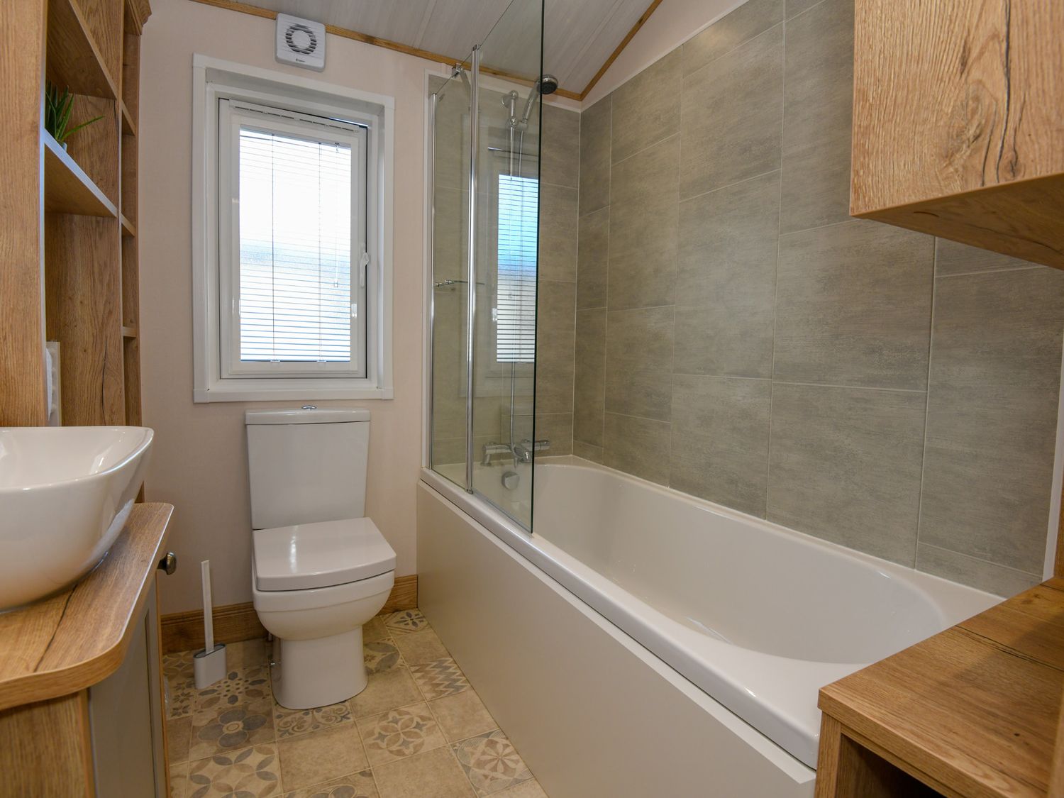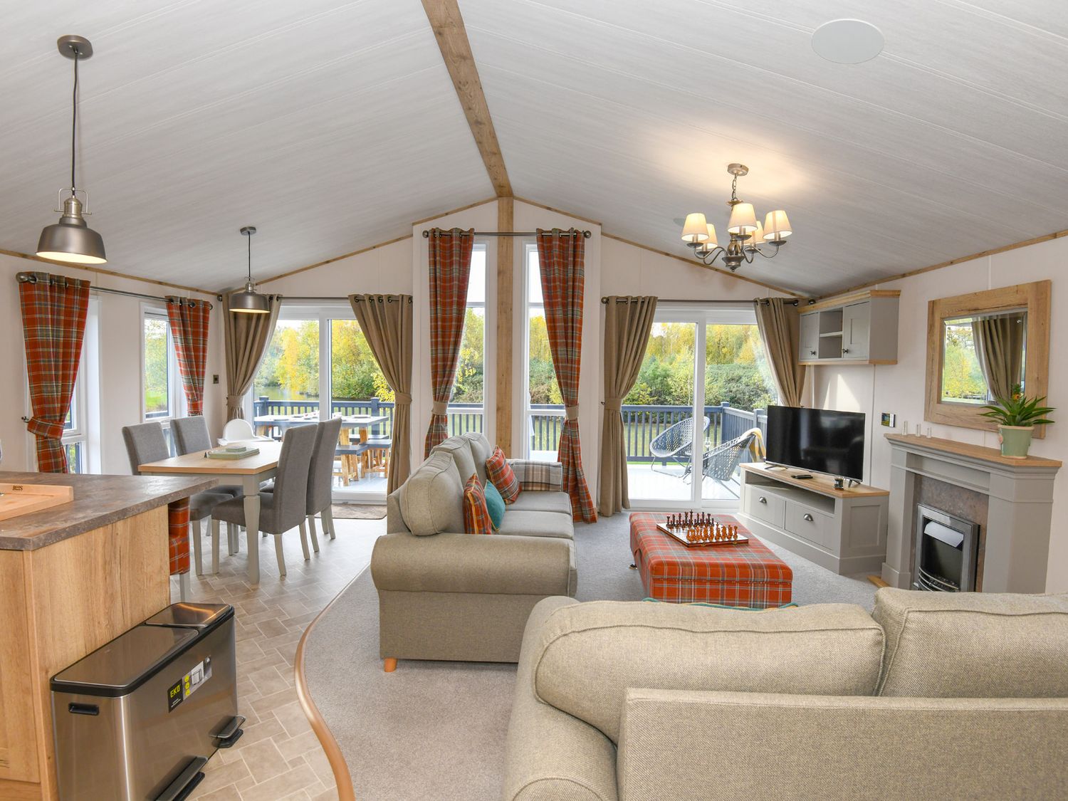 "Lakewood Retreat consists of an open-plan living space with kitchen, dining and sitting area, a bathroom with bath, shower over, basin and WC, a shower room with walk-in shower, basin, heated towel rail and WC, and two bedrooms: a double and a twin. Central heating. Oven, hob, microwave, fridge, kettle, toaster. Smart TV, WiFi. Fuel, power, bed linen and towels are all included in the price. Highchair available. Off-road parking. Enclosed decking with furniture and hot tub. Pet-friendly. Sorry, no smoking. Shop and pub 0.7 miles. Enjoy a lovely stay at Lakewood Retreat."