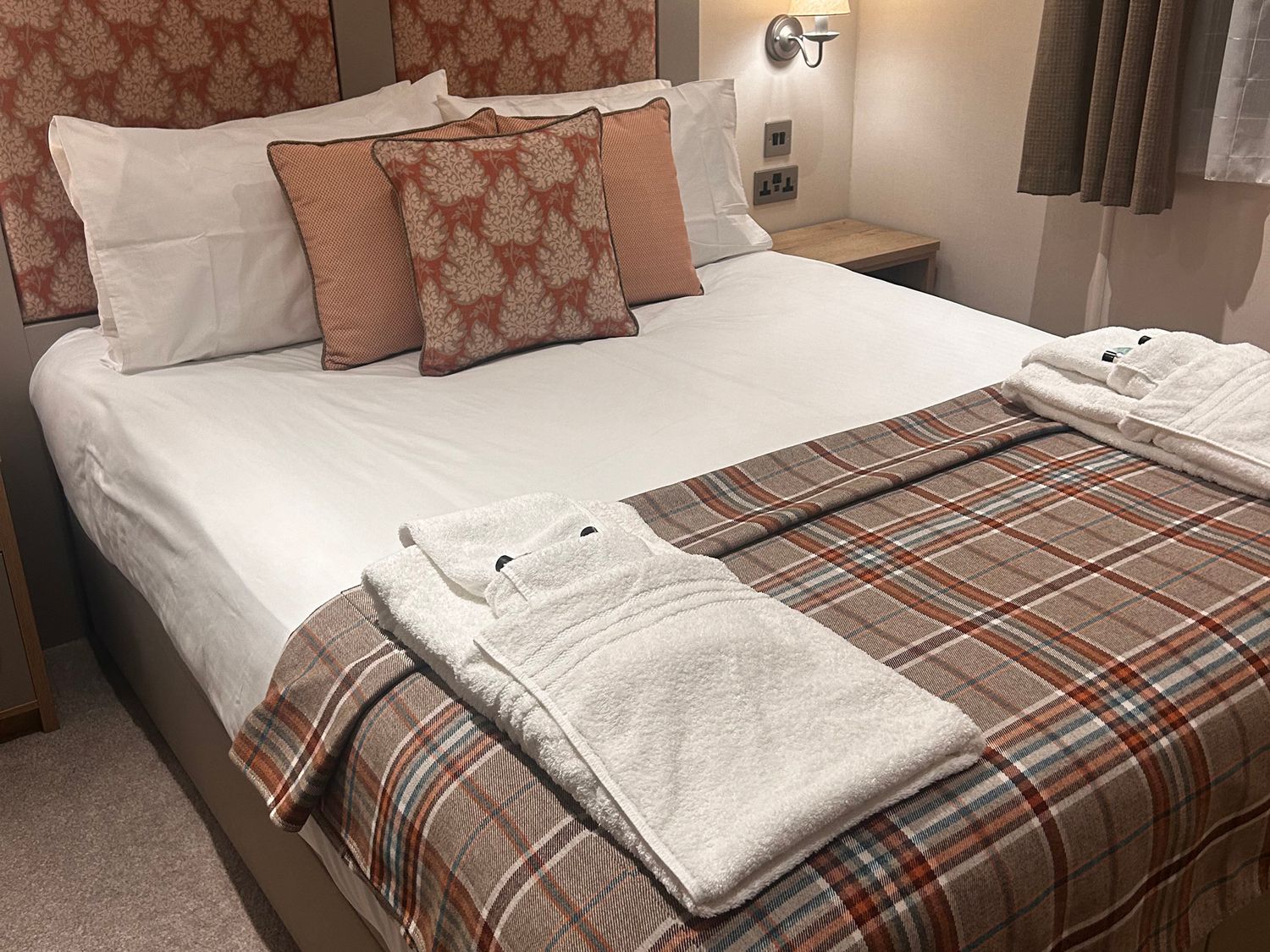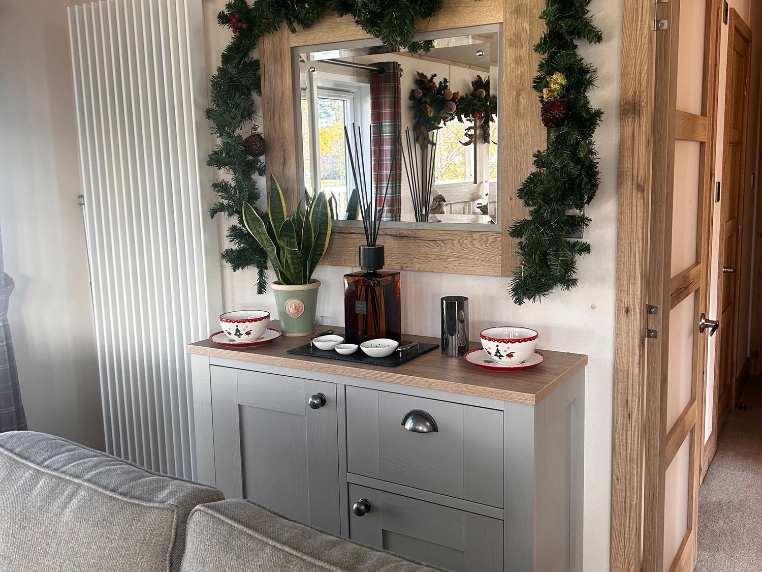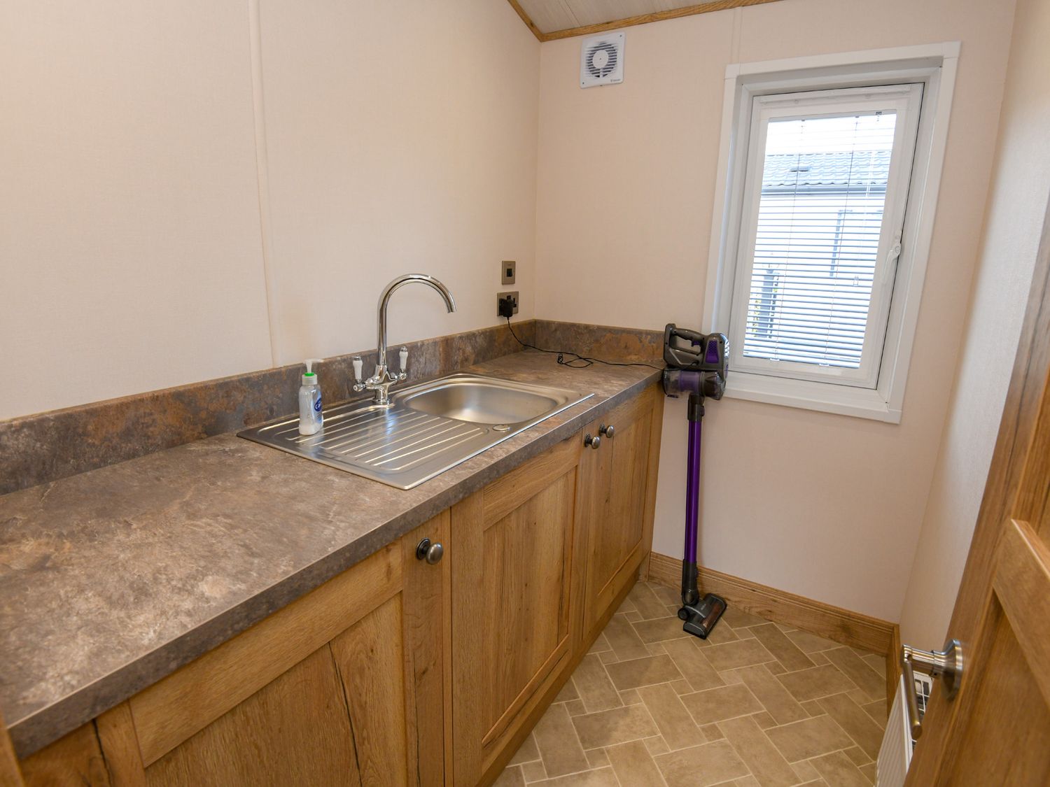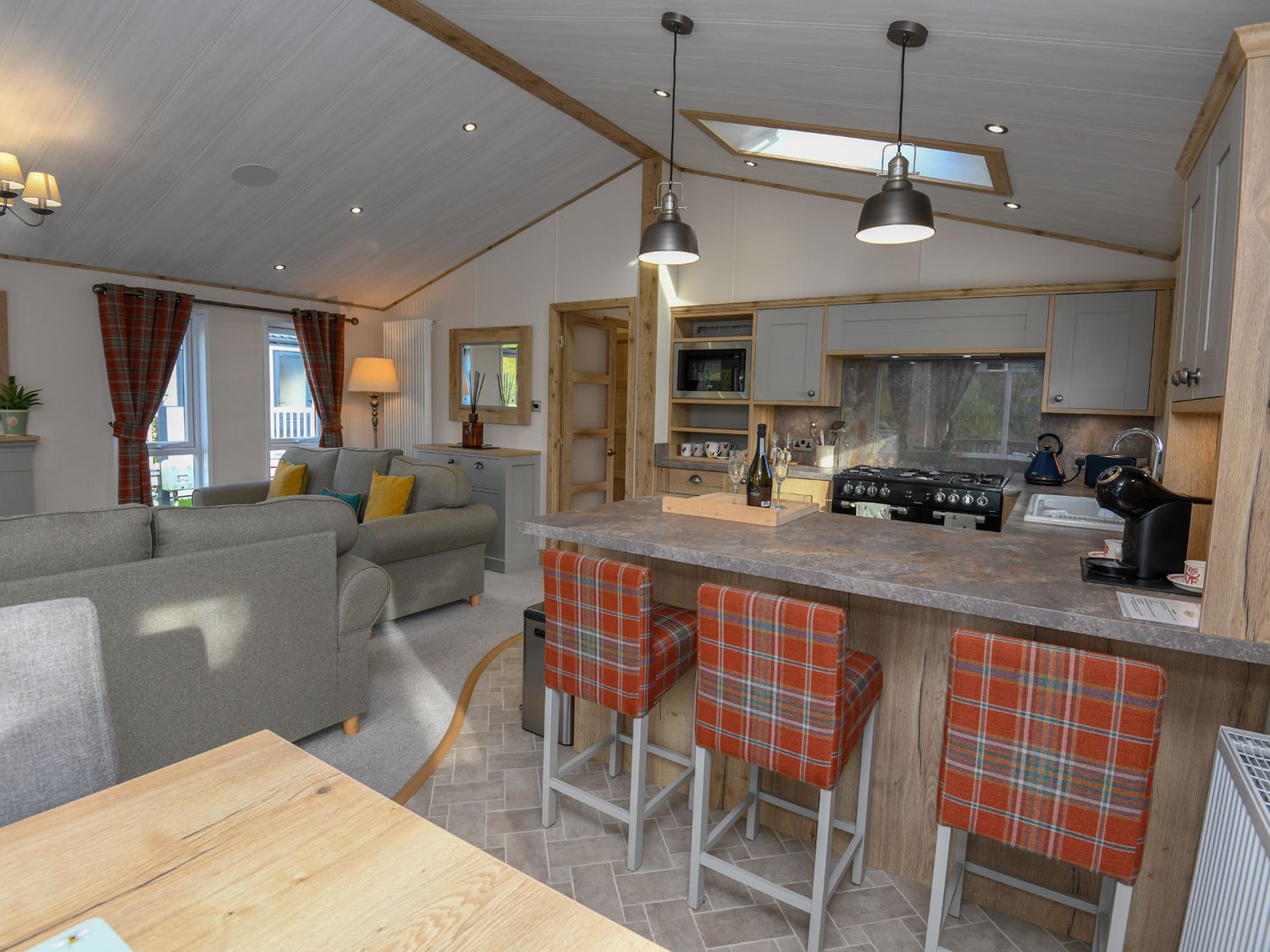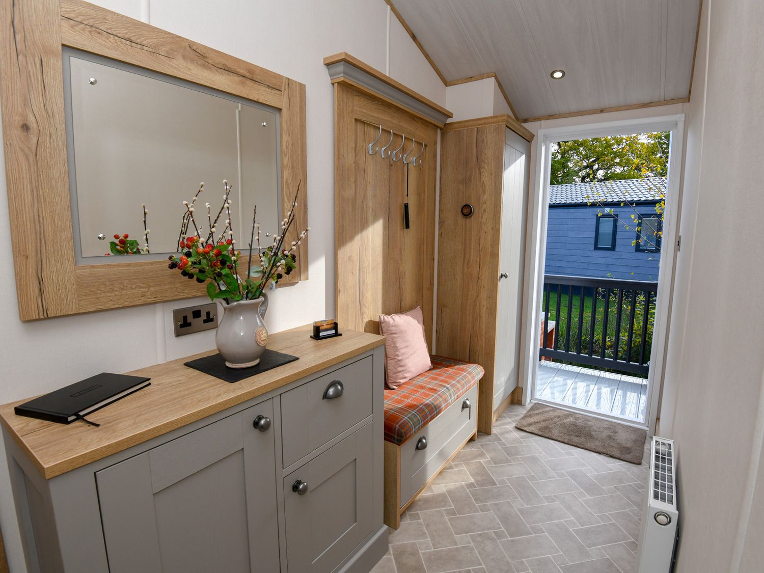 "Lakewood Retreat consists of an open-plan living space with kitchen, dining and sitting area, a bathroom with bath, shower over, basin and WC, a shower room with walk-in shower, basin, heated towel rail and WC, and two bedrooms: a double and a twin. Central heating. Oven, hob, microwave, fridge, kettle, toaster. Smart TV, WiFi. Fuel, power, bed linen and towels are all included in the price. Highchair available. Off-road parking. Enclosed decking with furniture and hot tub. Pet-friendly. Sorry, no smoking. Shop and pub 0.7 miles. Enjoy a lovely stay at Lakewood Retreat."