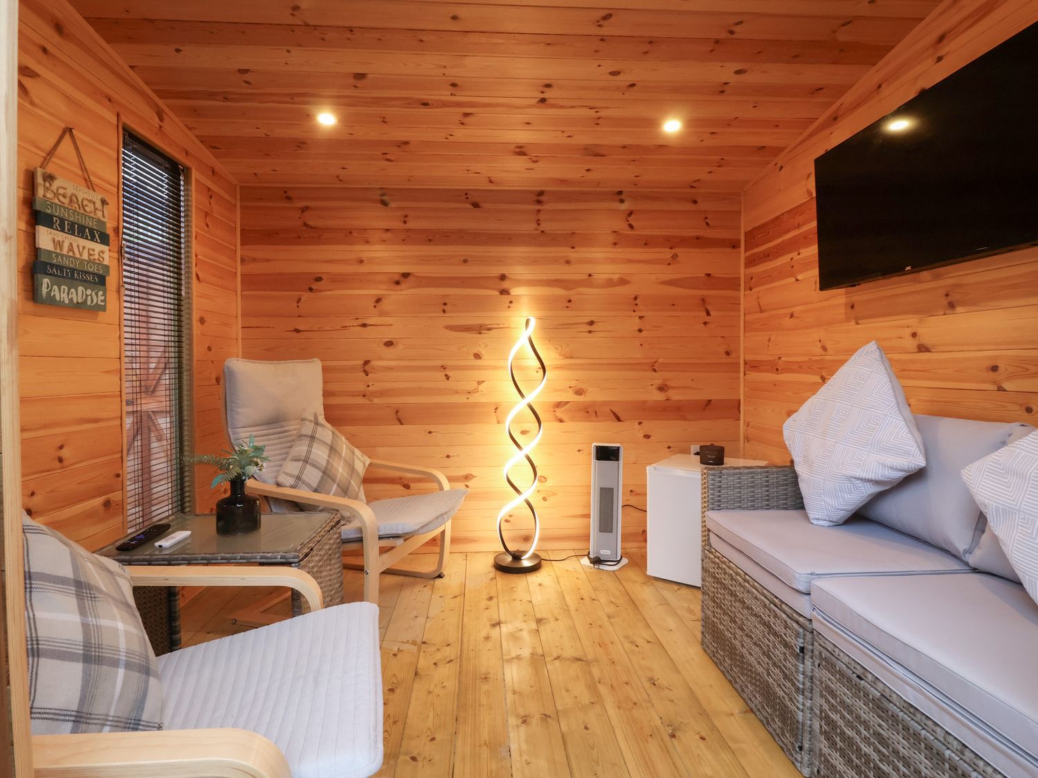 "One double bedroom with Smart TV. Bathroom with bath, shower over, basin and WC. Kitchen/diner. Sitting room with electric fire